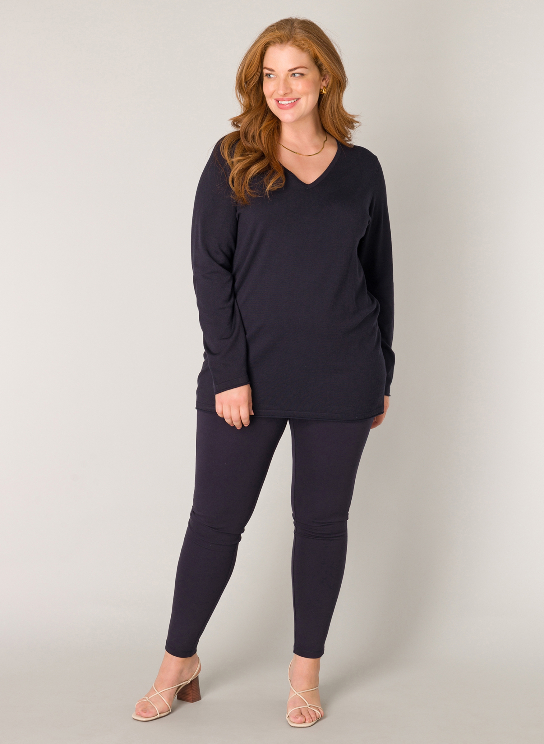 Trui Anine van Base Level Curvy by Yesta Basic is een fijngebreide trui gemaakt in een zachte viscosemix. De trui heeft lange mouwen en een v-hals. De trui is 76 cm lang bij maat 50. Bekijk ons hele aanbod van Base Level Curvy by Yesta Basic.
