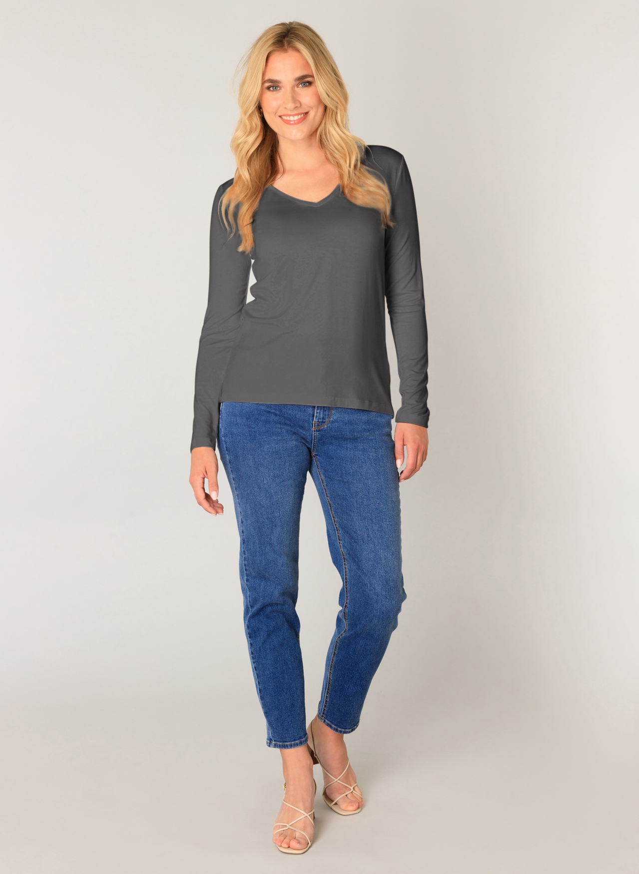 Shirt Yare van Base Level by Yest Basic is een lange mouwen t-shirt, gemaakt in een zachte viscose tricot. Het t-shirt heeft een v-hals en is super makkelijk om te combineren. Het shirt is 64cm lang bij maat 38. Bekijk ons hele aanbod Base Level by Yest Basic.