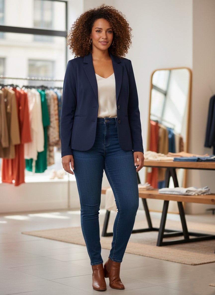 Shop deze travelstof blazer (A005704) vandaag nog bij Bagoes Mode – voor stijlvolle power met comfort, in grote maten!