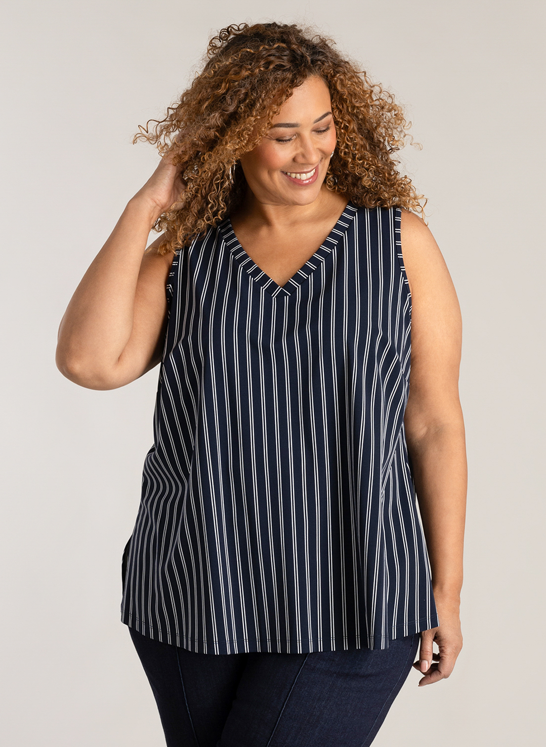 Deze tuniek met streepjesprint is gemaakt van comfortabele travelstof die soepel valt, vormvast is en nauwelijks kreukt. Tuniek Nena is een prettig item dat je makkelijk combineert met een broek of blazer. Lengte 74 cm.