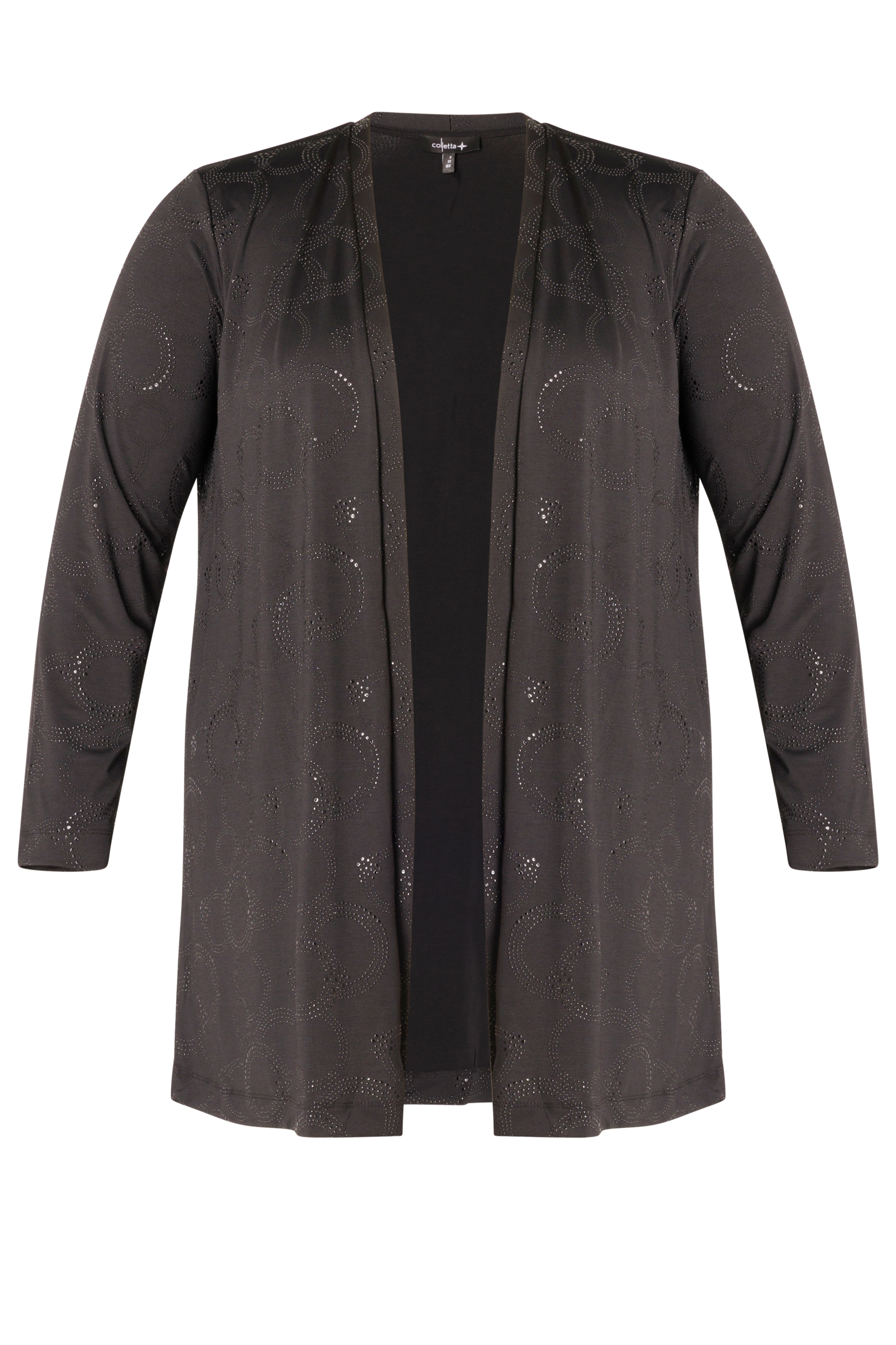 Colletta vest is een mooi vest door de aparte stof. Je ziet het zo 123 niet, maar hij heeft een patroon van een soort glans drupjes. Het is een losvallend model zonder zakken en met lange mouwen. Er is ook nog een tuniek in dit materiaal, 9000274.