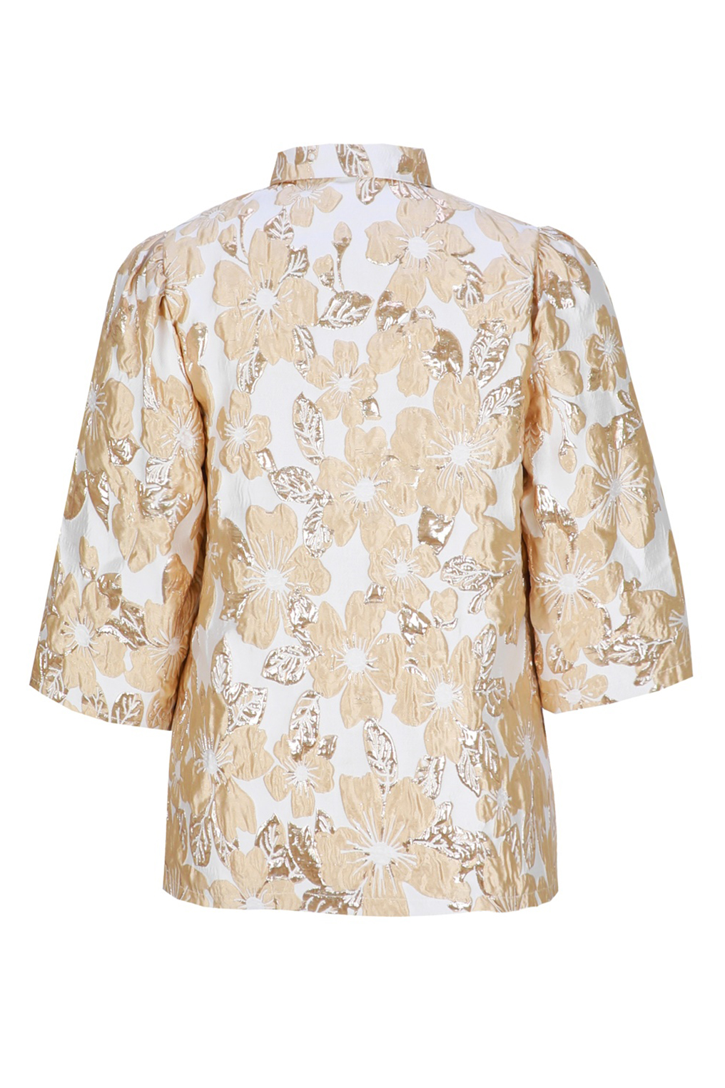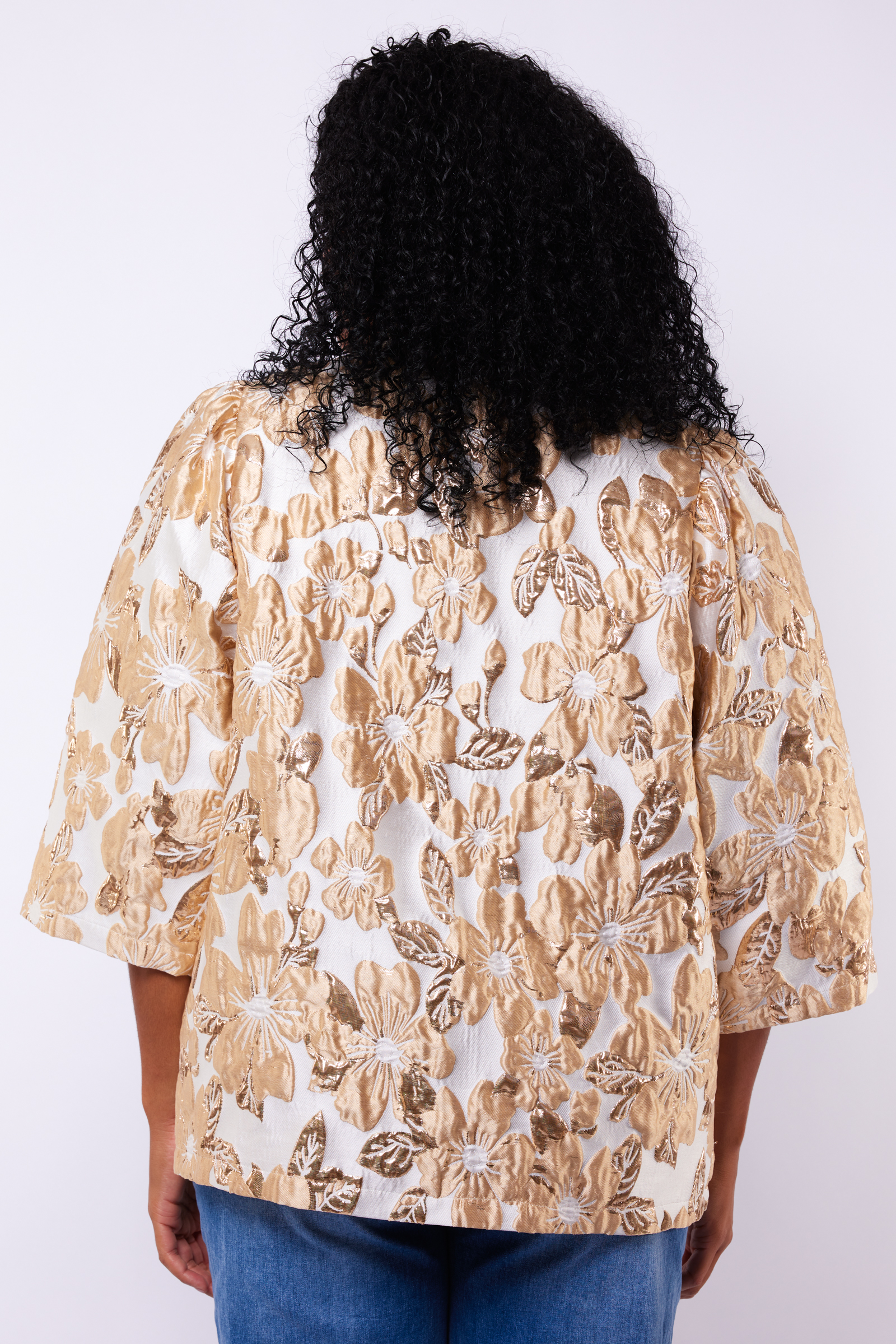De Kiranne jacket is gemaakt van een luxe jacquardstof met een subtiel glanzend bloemmotief. De rechte snit geeft het jasje een tijdloze uitstraling, terwijl de driekwartmouwen zorgen voor een moderne en elegante twist. Draag ’m chic over een jurk of combineer met een broek voor een stijlvolle everyday look met net dat beetje extra.
