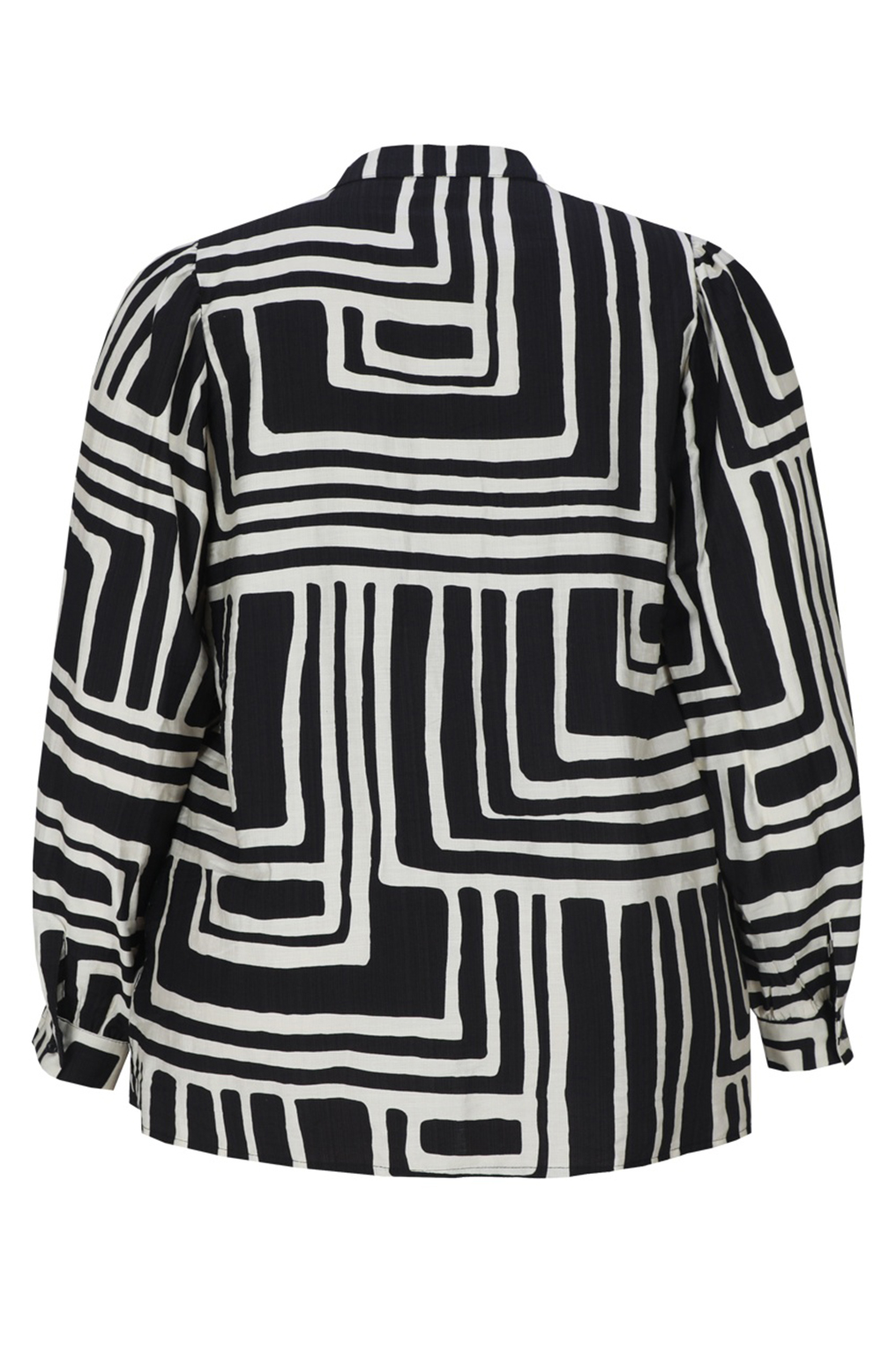De Lumina top van Exxcelent heeft een opvallende zwart-witte grafische print en een subtiel strikdetail bij de hals. Dankzij de luchtige stof en lange mouwen combineert deze top moeiteloos comfort met een elegante uitstraling. De top heeft een normale pasvorm en een lengte van 66 cm, waardoor hij mooi valt bij maatje meer.