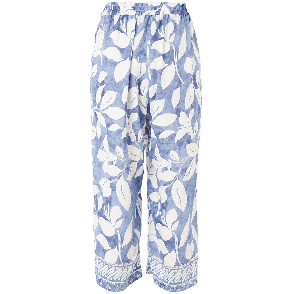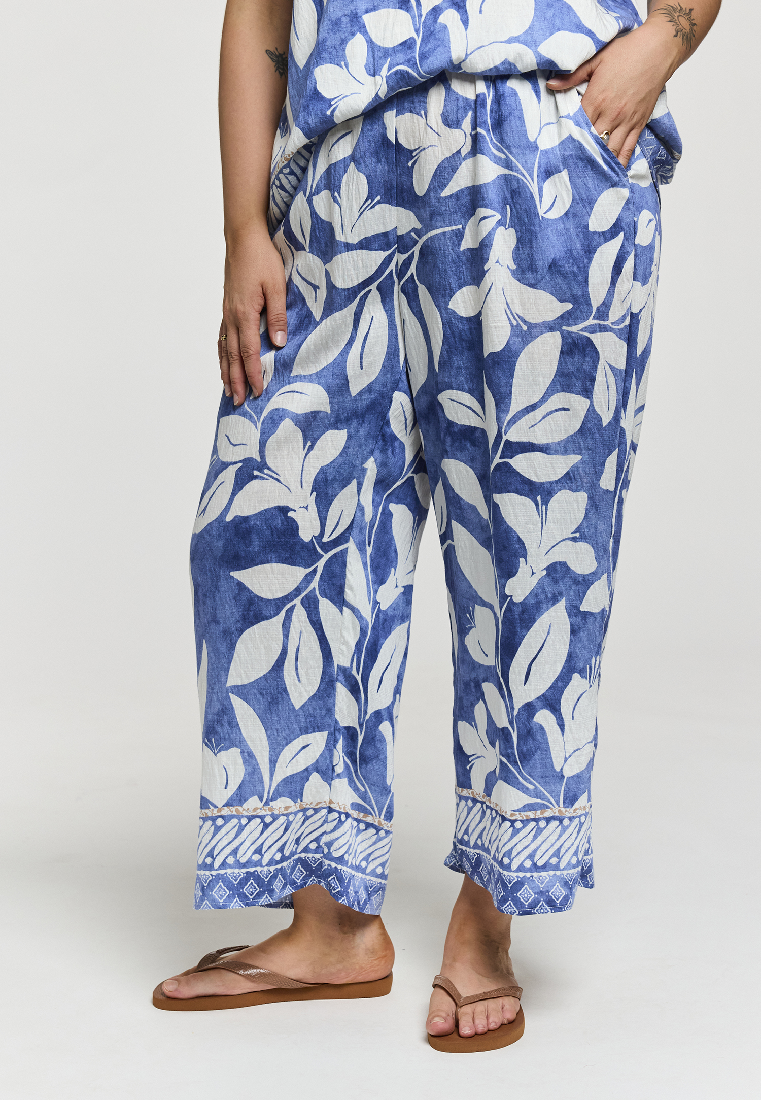 De Gozzip Augusta broek van het merk Gozzip is een comfortabele en stijlvolle broek met een blauw/witte allover print. De broek valt tot op de enkel en heeft een losvallende pasvorm, wat zorgt voor een fijne en luchtige fit.