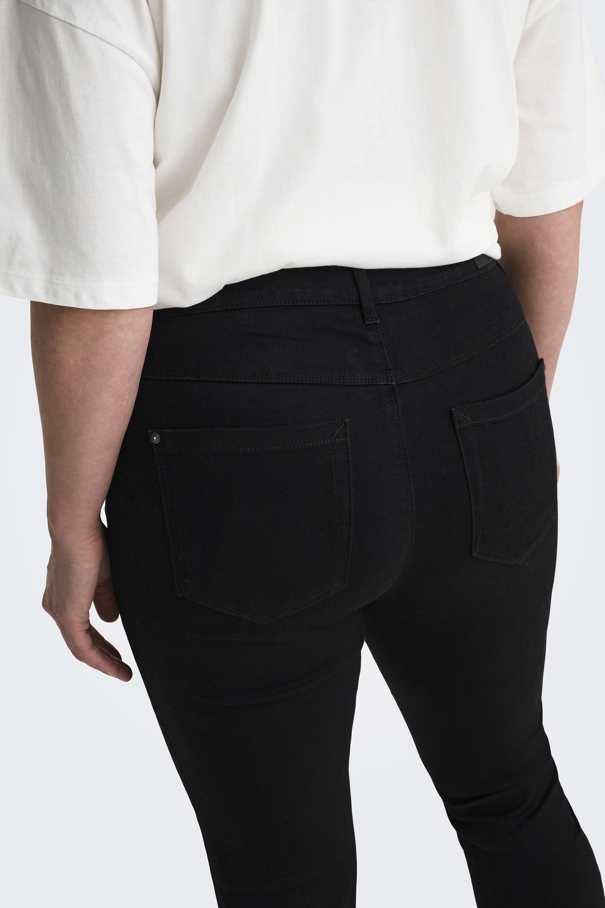 Zwarte jeans van ONLY Carmakoma is een goede zwarte. Was hem binnenste buiten dan blijft hij ook mooier. Het is een half skinny model en 5 pocket met ritssluiting.