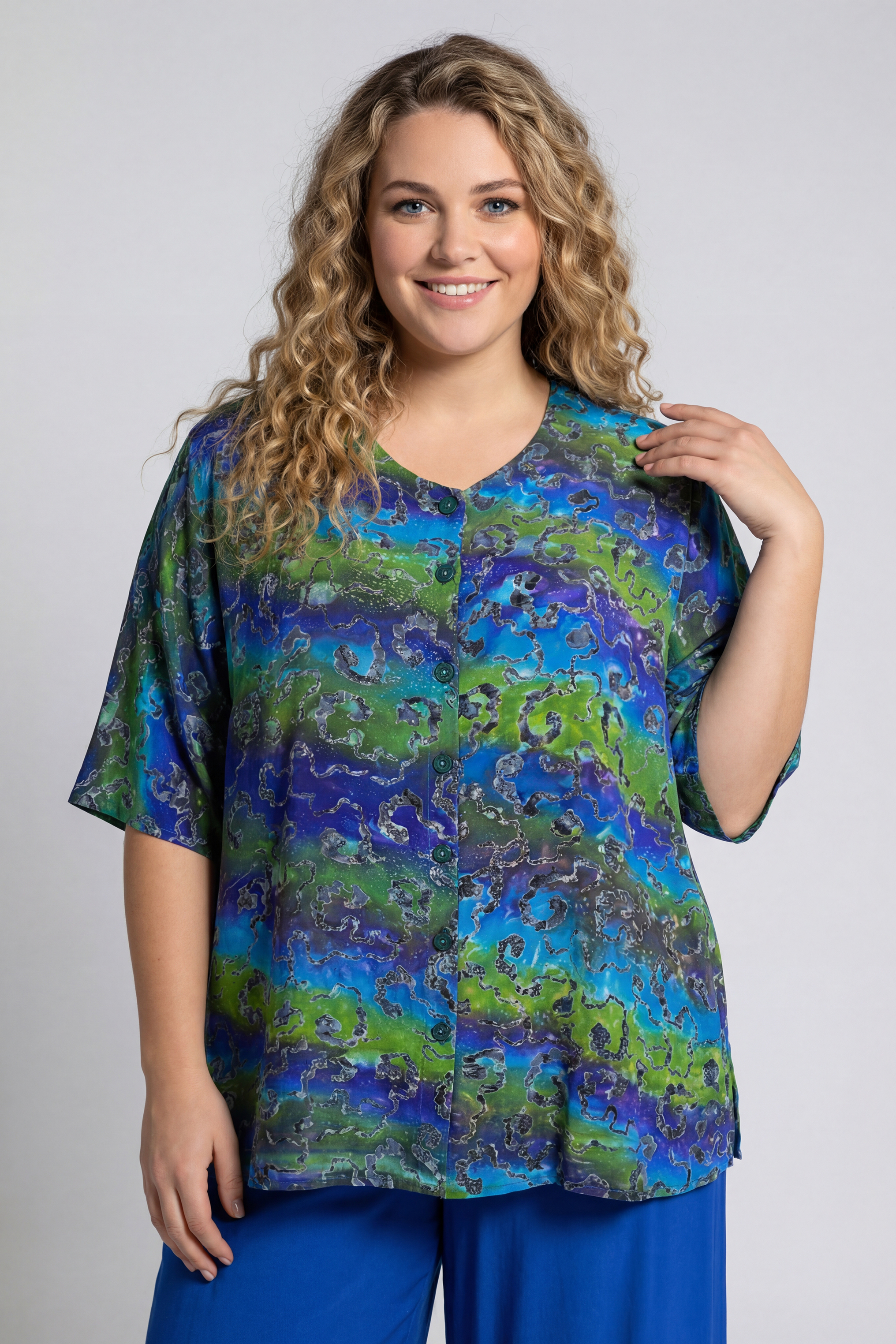 Luna blouse Dallas 15 | dallas5413blue/gree42-52 one