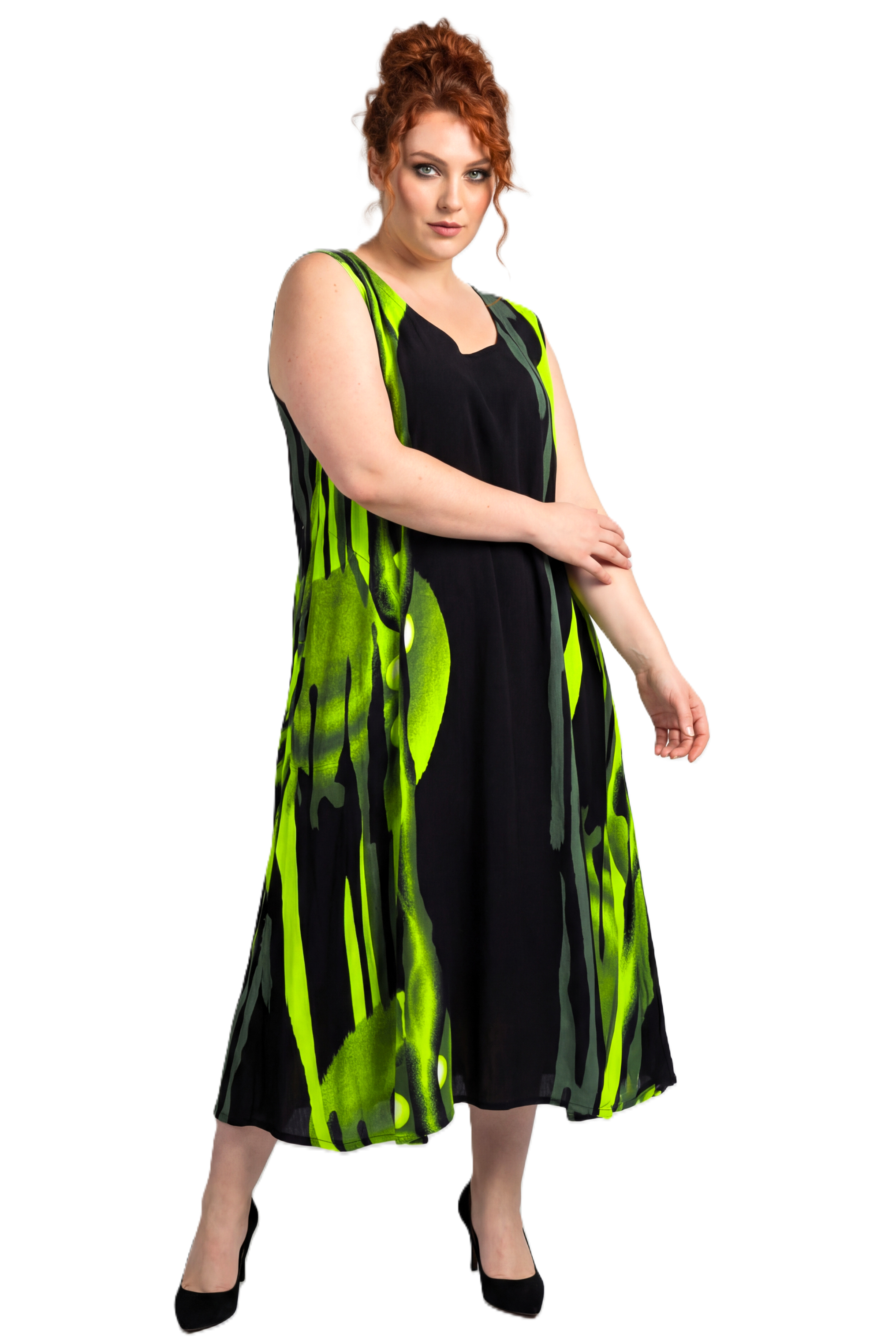 Luna jurk lois ronde hals | lois10blac/lime44-52