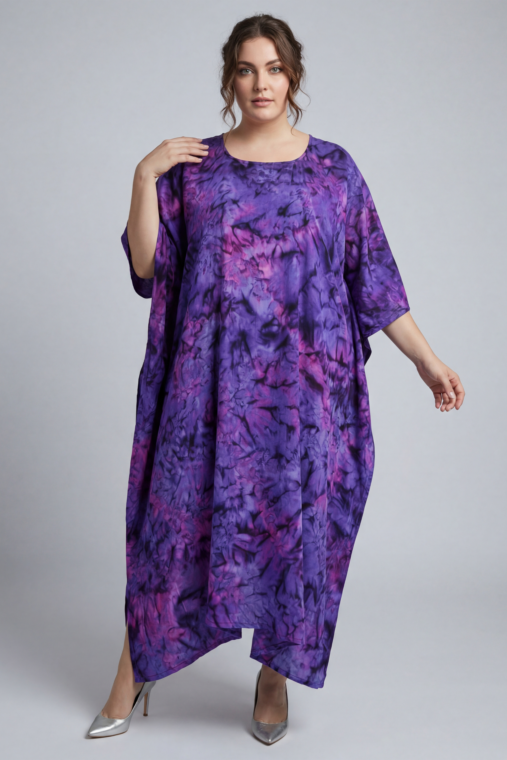 De Luna kaftan Classic jurk van Luna heeft een opvallende diverse printen. Door het wijde model valt de jurk luchtig om het lichaam. Dit maakt deze kaftan jurk een fijne keuze voor vrouwen die houden van comfortabele plus size kleding met een modieuze uitstraling. De ruime mouwen vallen los langs de armen en geven de jurk een speelse en luchtige look.
