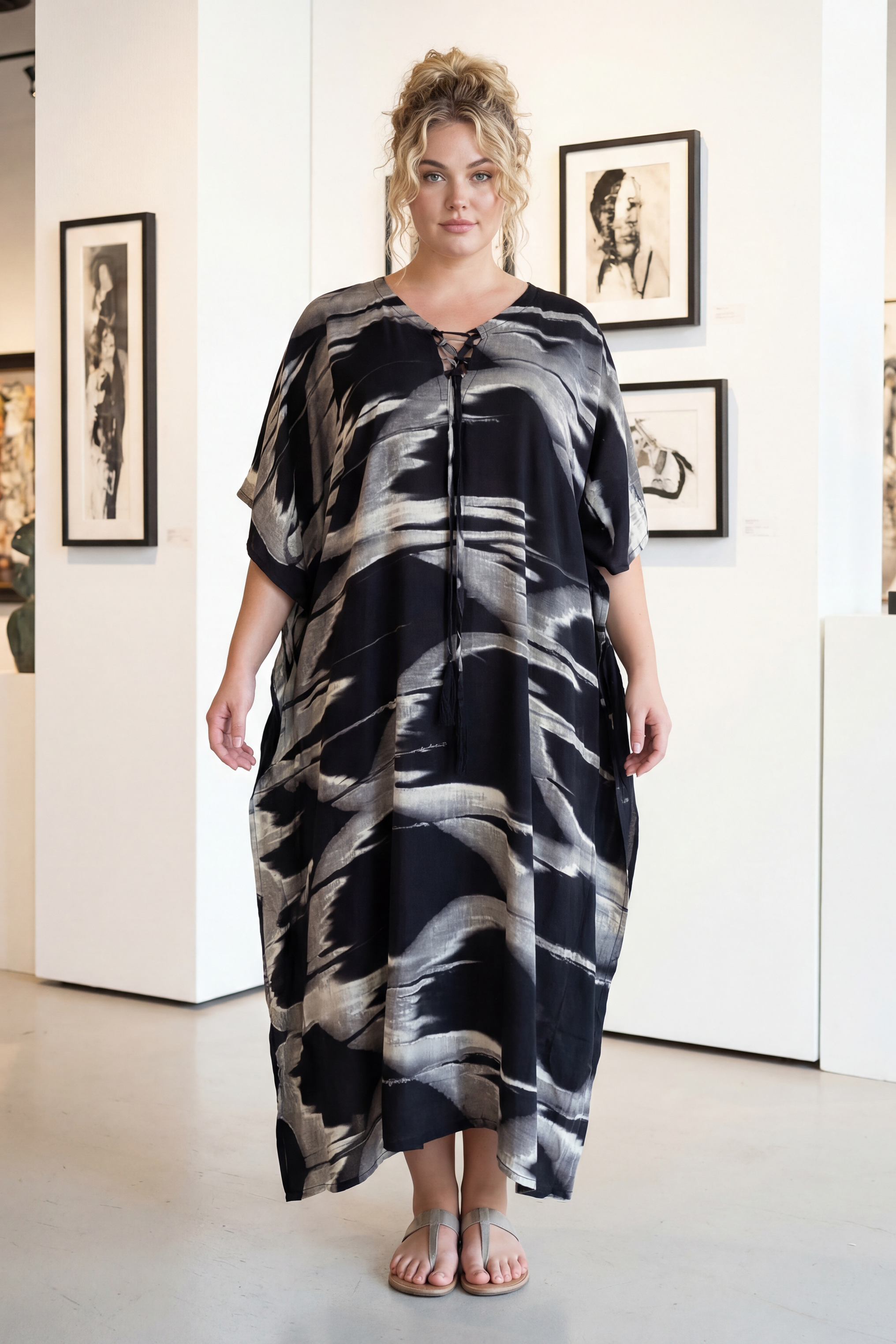 Titel: Luna kaftan jurk Nola – ruime kaftan jurk met print voor dames met een maatje meer