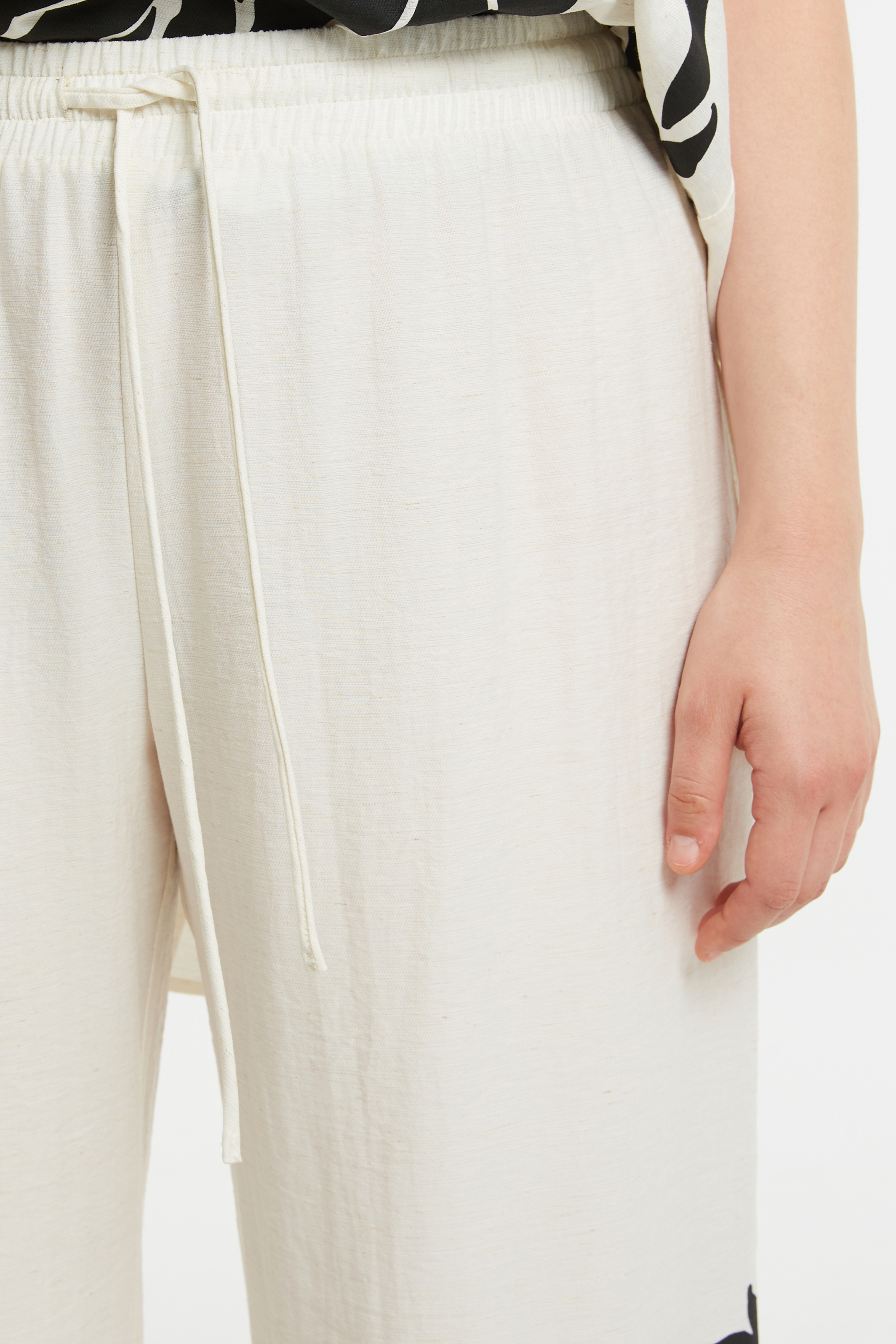 Ontdek deze prachtige broek van Mat Fashion. Een must‑have item voor je garderobe dat comfort, stijl en een flatterende pasvorm combineert. De broek heeft een elastische taille met koordje en een prachtige zwarte print onderaan de broekspijpen