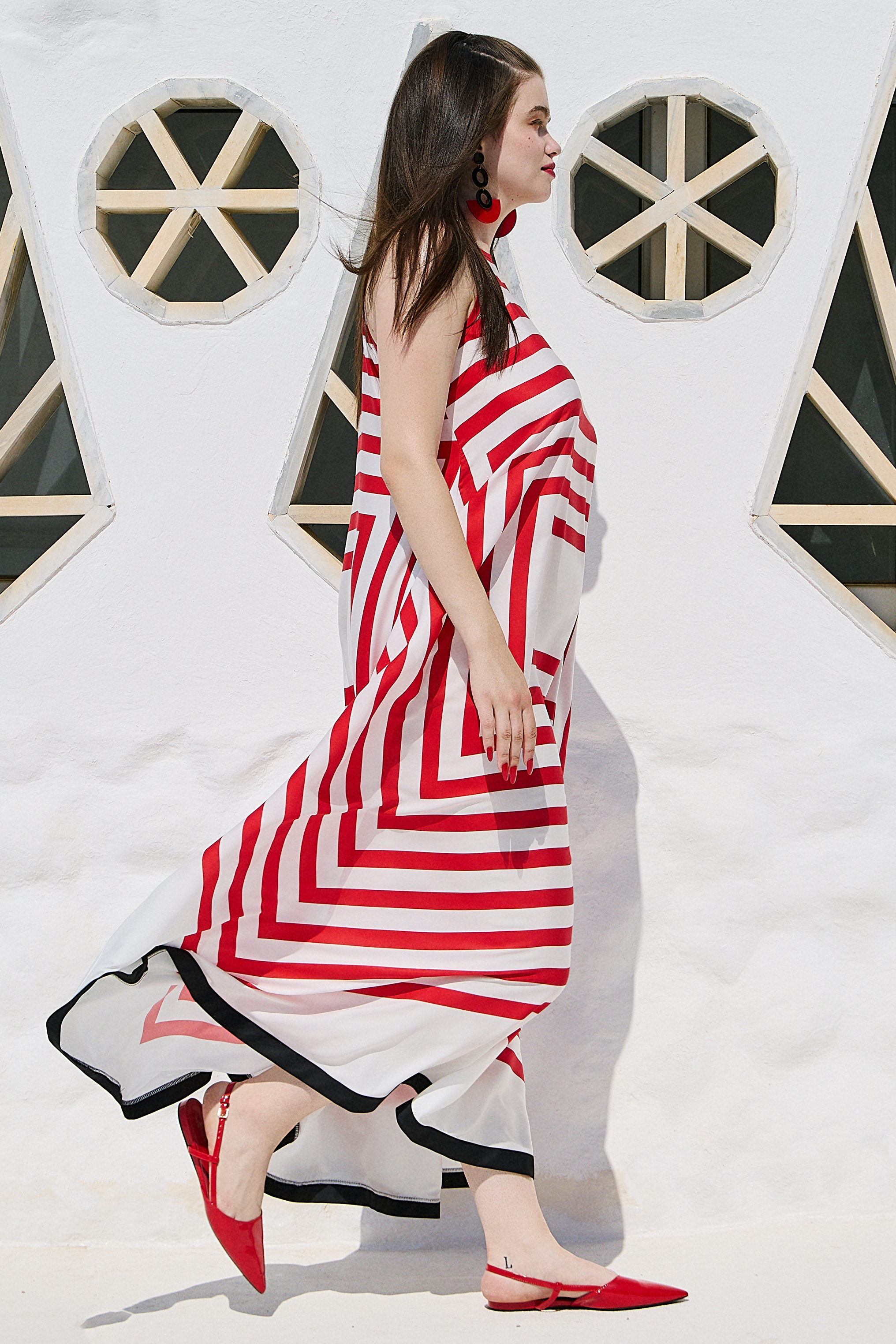 Het grafische streeppatroon geeft de jurk net dat beetje extra, zonder druk te ogen. Ideaal voor vakantie, een dagje strand of een zomerse wandeling door de stad. Combineer met sandalen of slippers voor een casual look, of met een hakje voor een iets gekledere uitstraling.