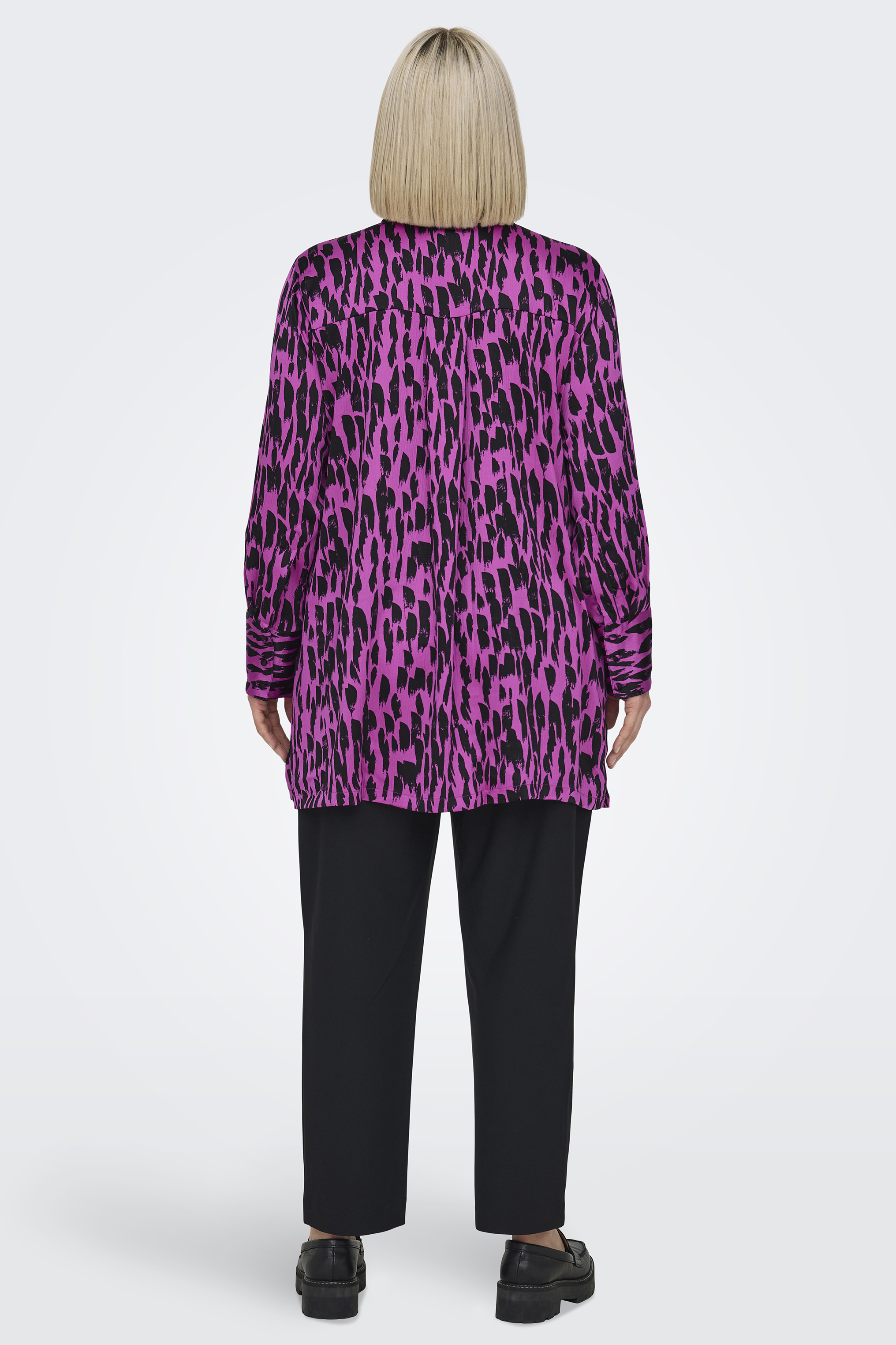 ONLY Carmakoma blouse PRIMROSE is gemaakt in een satijn stof in een felle kleur met een zwarte print. Het is een licht oversized model, waarbij de naad van het achterpand iets naar voren valt. Aan de onderkant heeft hij korte splitten. De blouse heeft een blinde knoopsluiting. De lange mouwen hebben een langere manchet. Natuurlijk helemaal te gek met een leatherlook broek of legging.