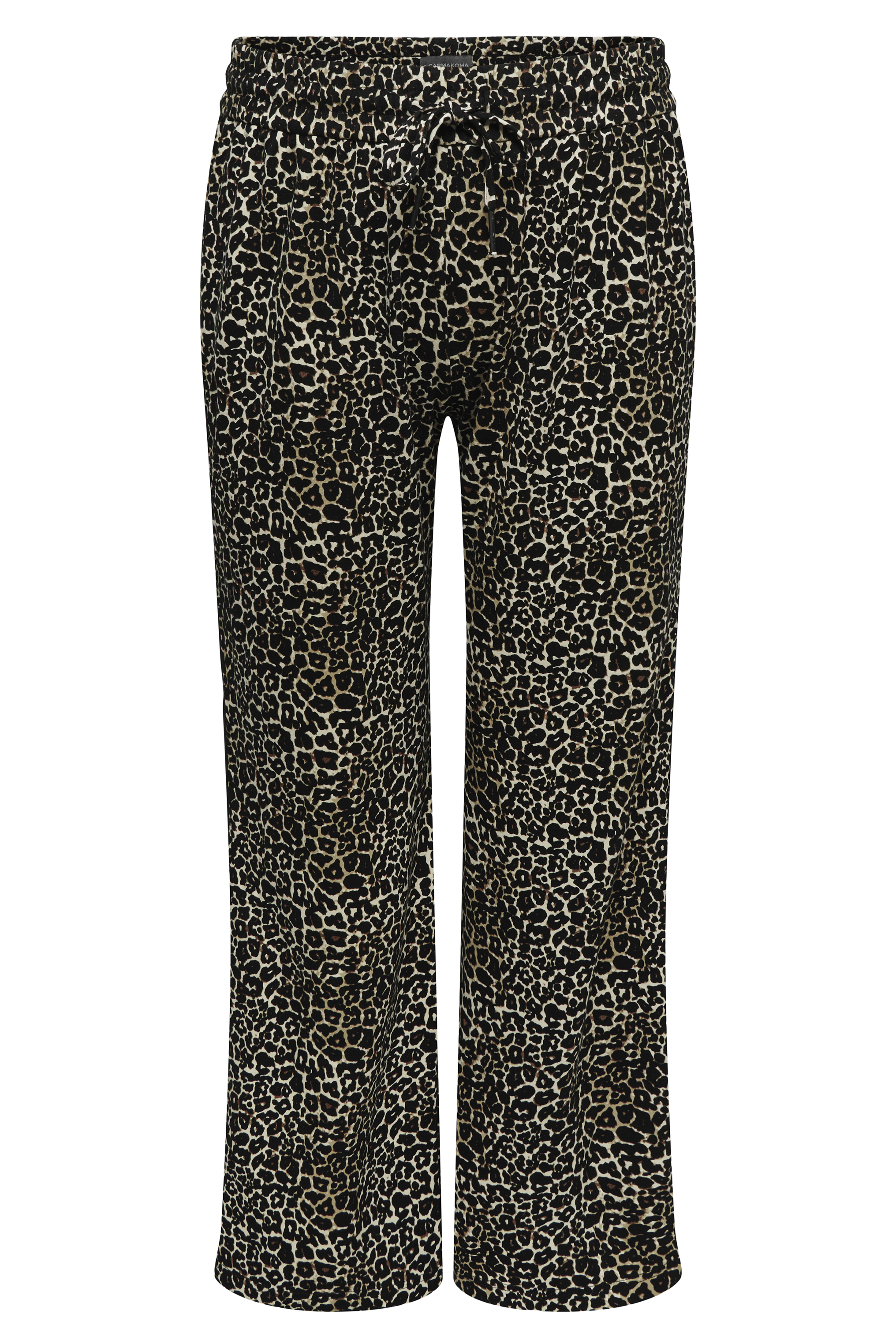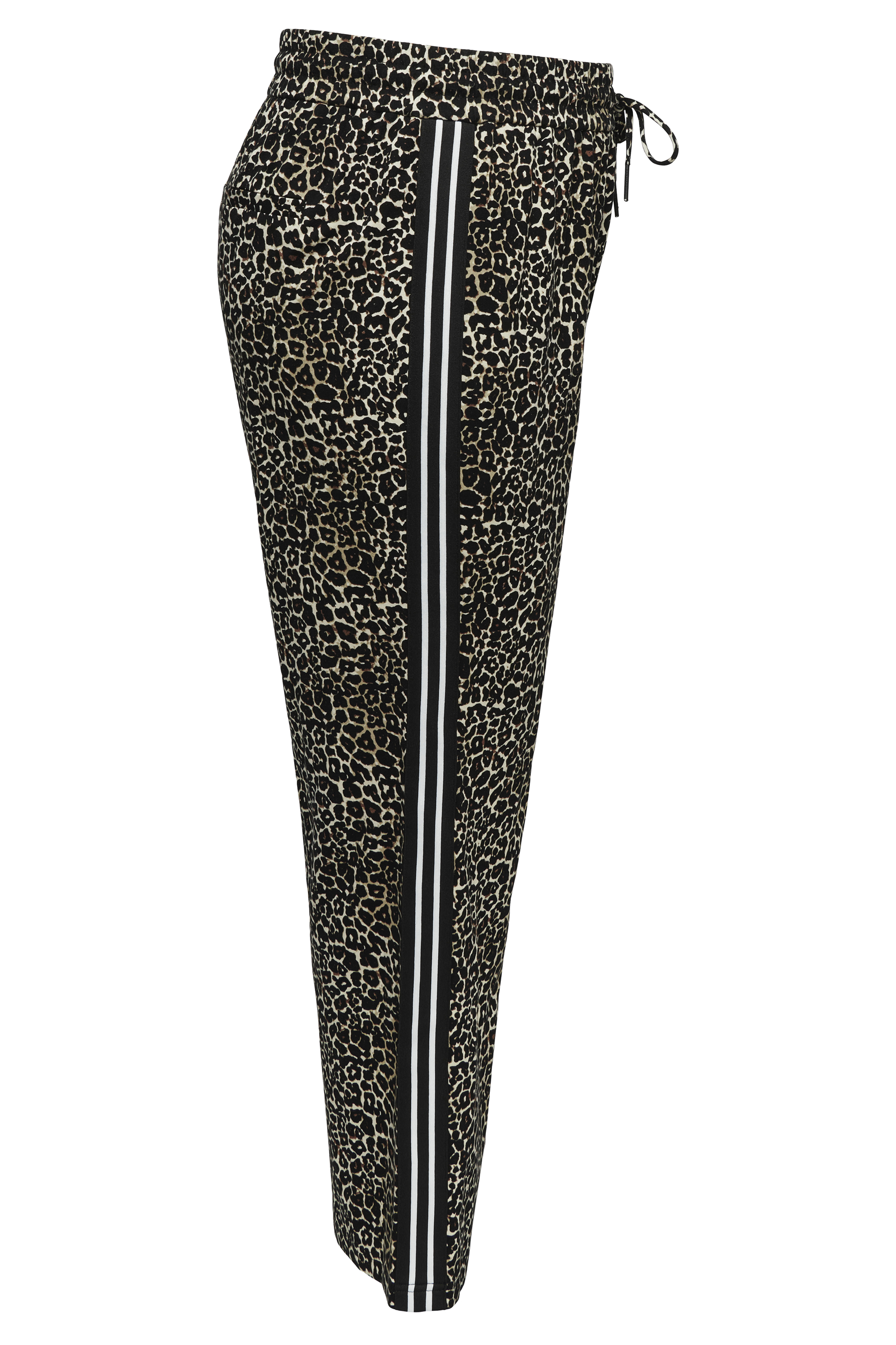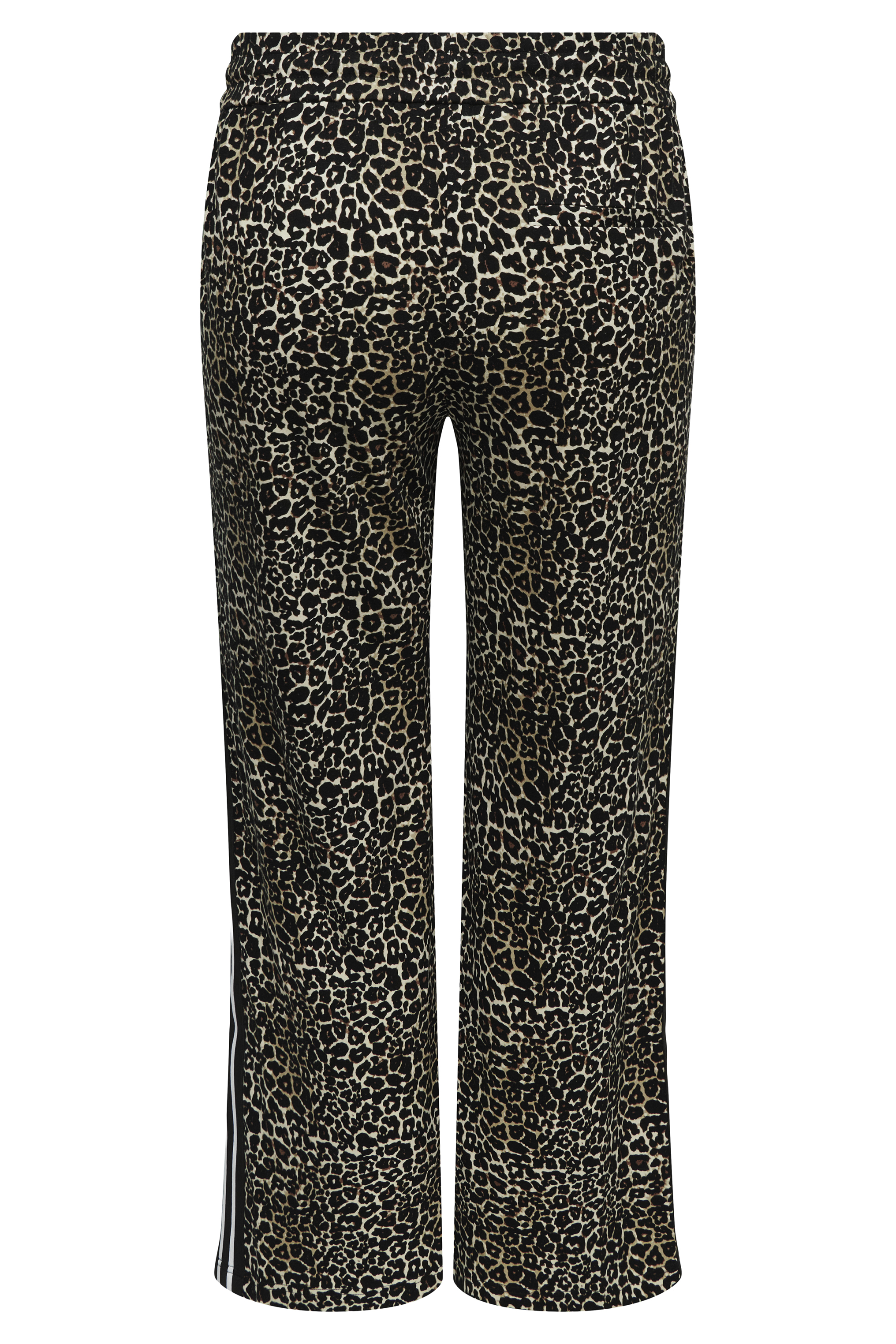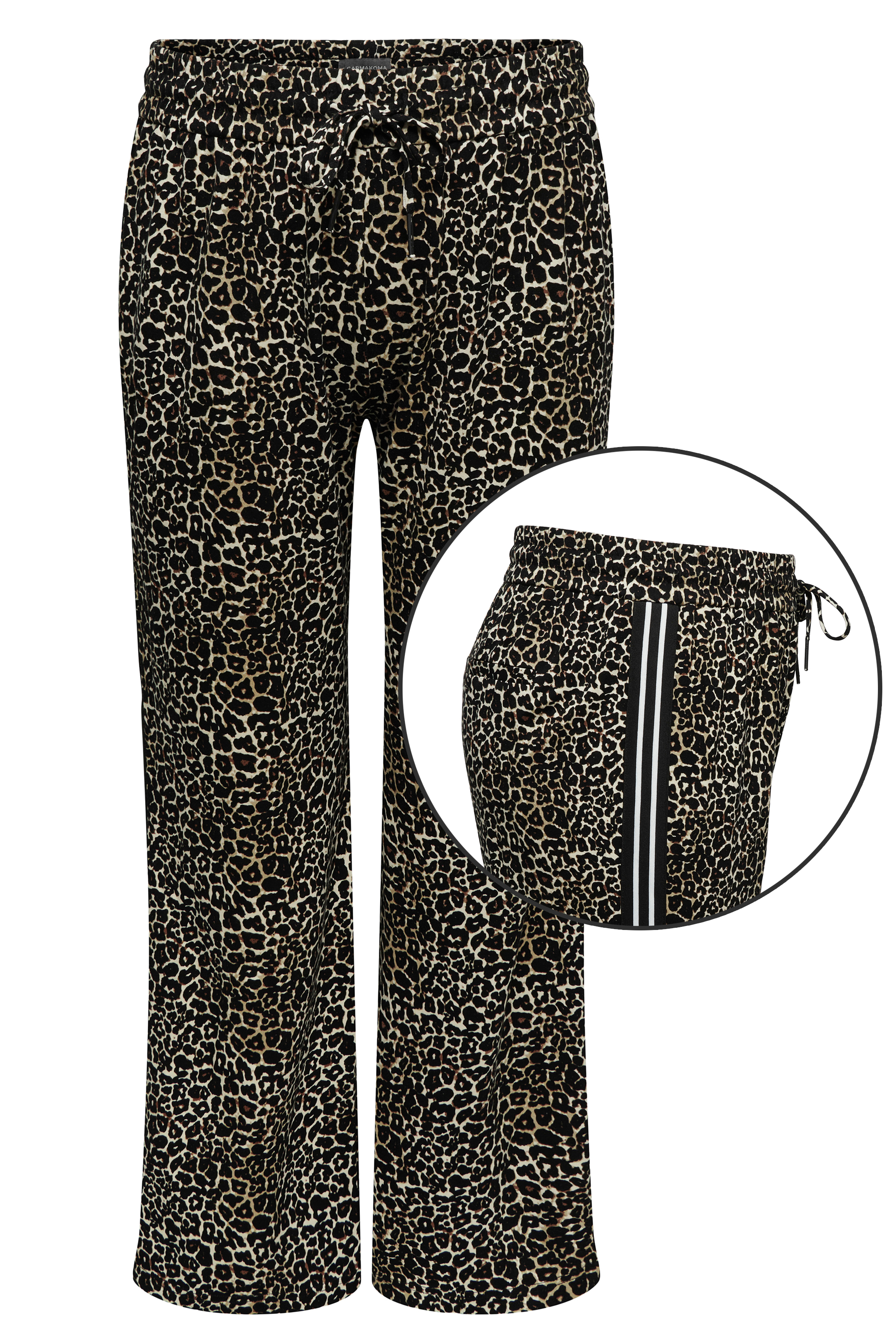 ONLY Carmakoma broek CARPOPTRASH TADIA heeft een camel zwarte animal print. Het is een rondom elastiek model met aantrekkoord. Aan de zijkant zit een sportbies in zwart wit. Hij valt wat ruimer en heeft halfwijde broekspijpen die gewoon lang vallen. De broek is gemaakt in een heavy jersey die fijn draagt.