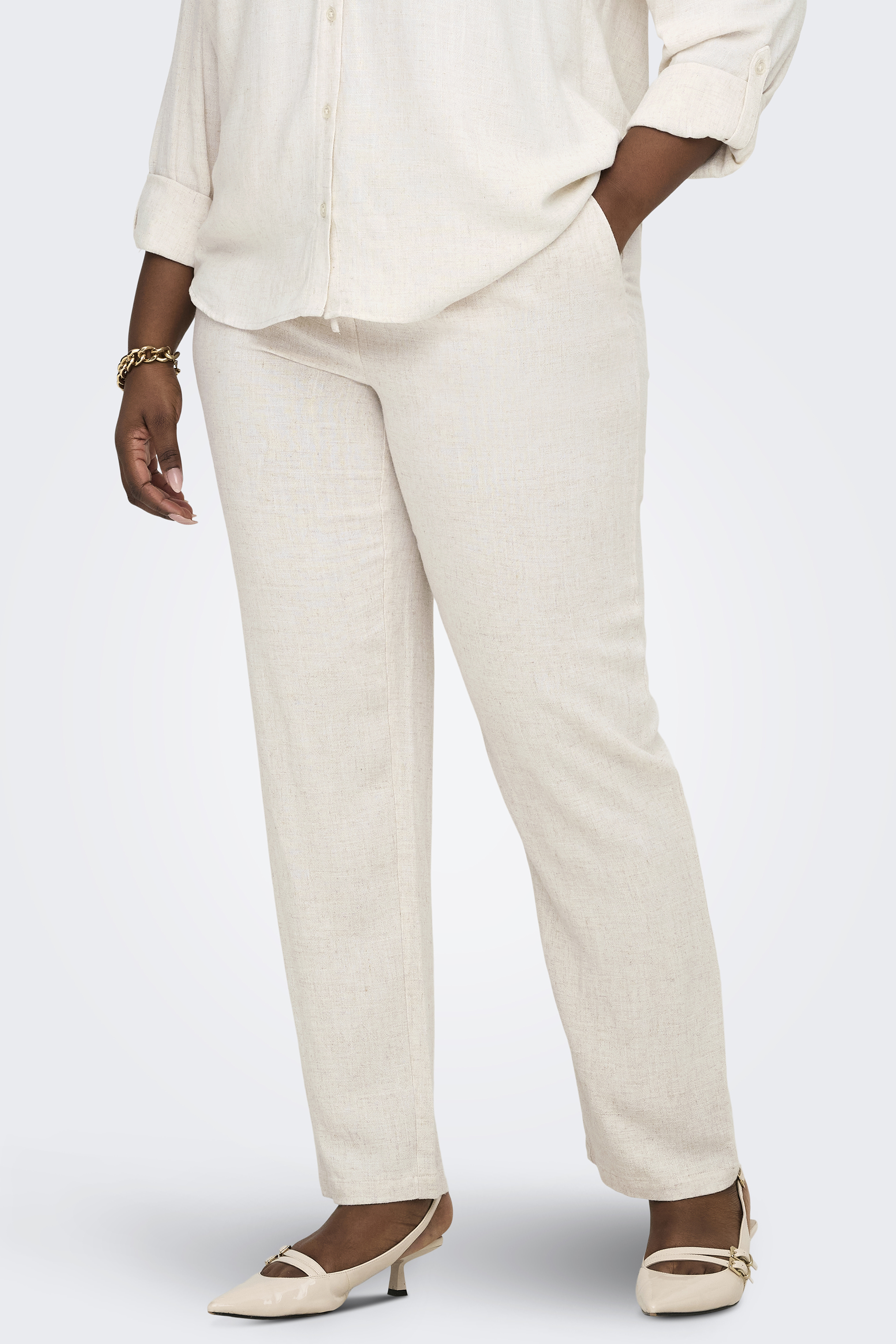 De ONLY broek CAR SIESTA in linnen is dé perfecte keuze voor warme dagen. Deze luchtige broek combineert een ontspannen uitstraling met een vrouwelijke pasvorm en is ideaal voor een zomerse look met comfort.