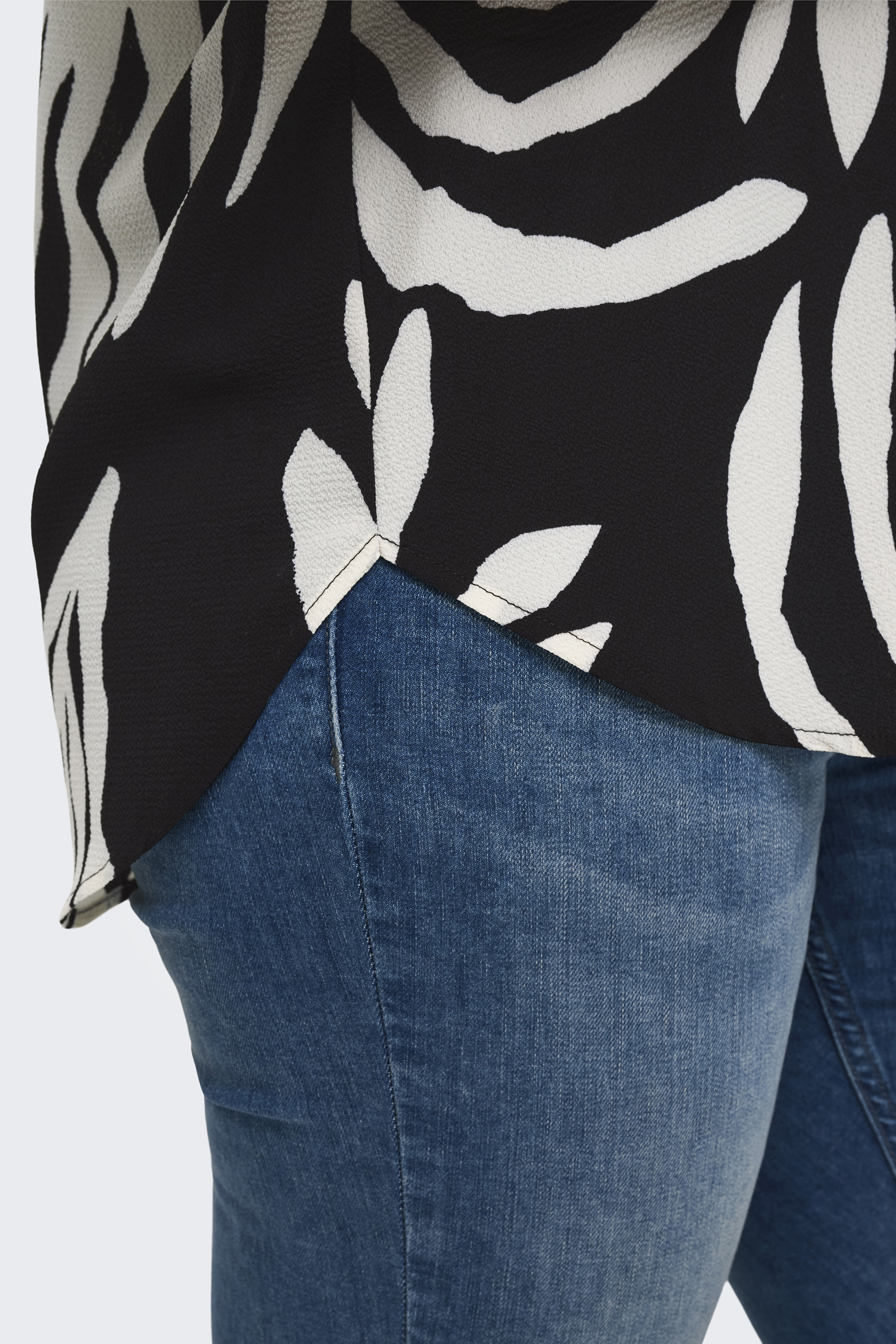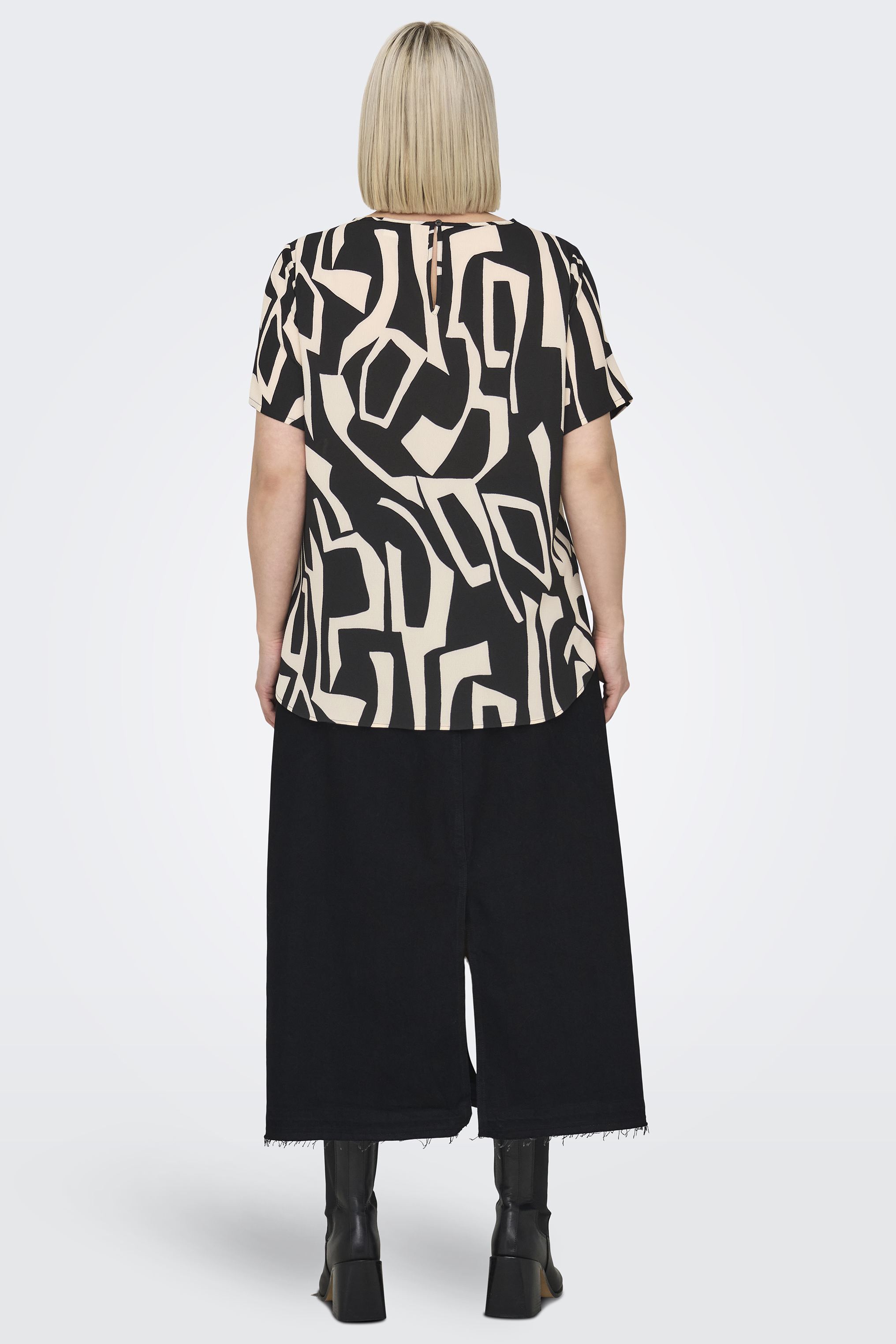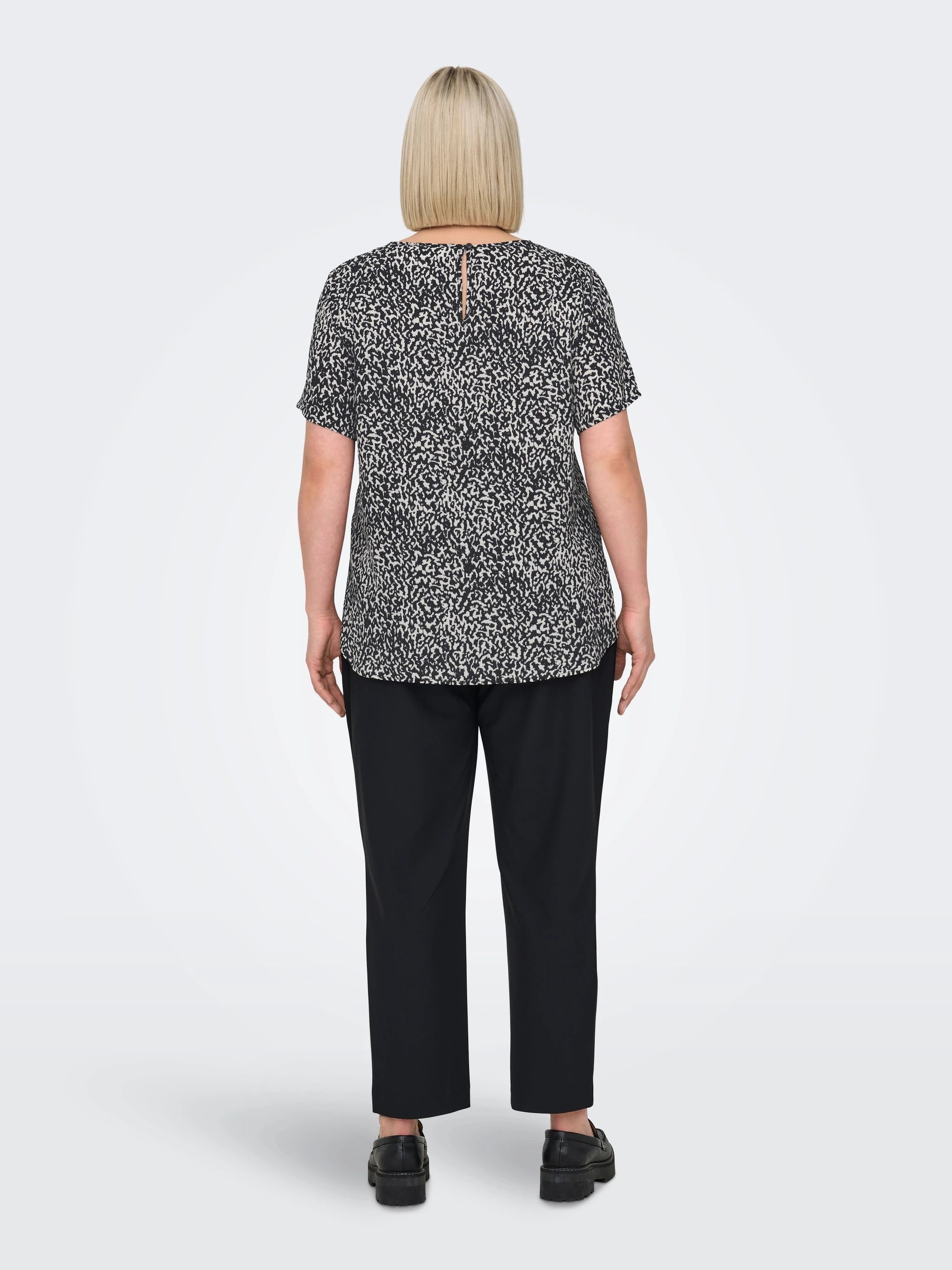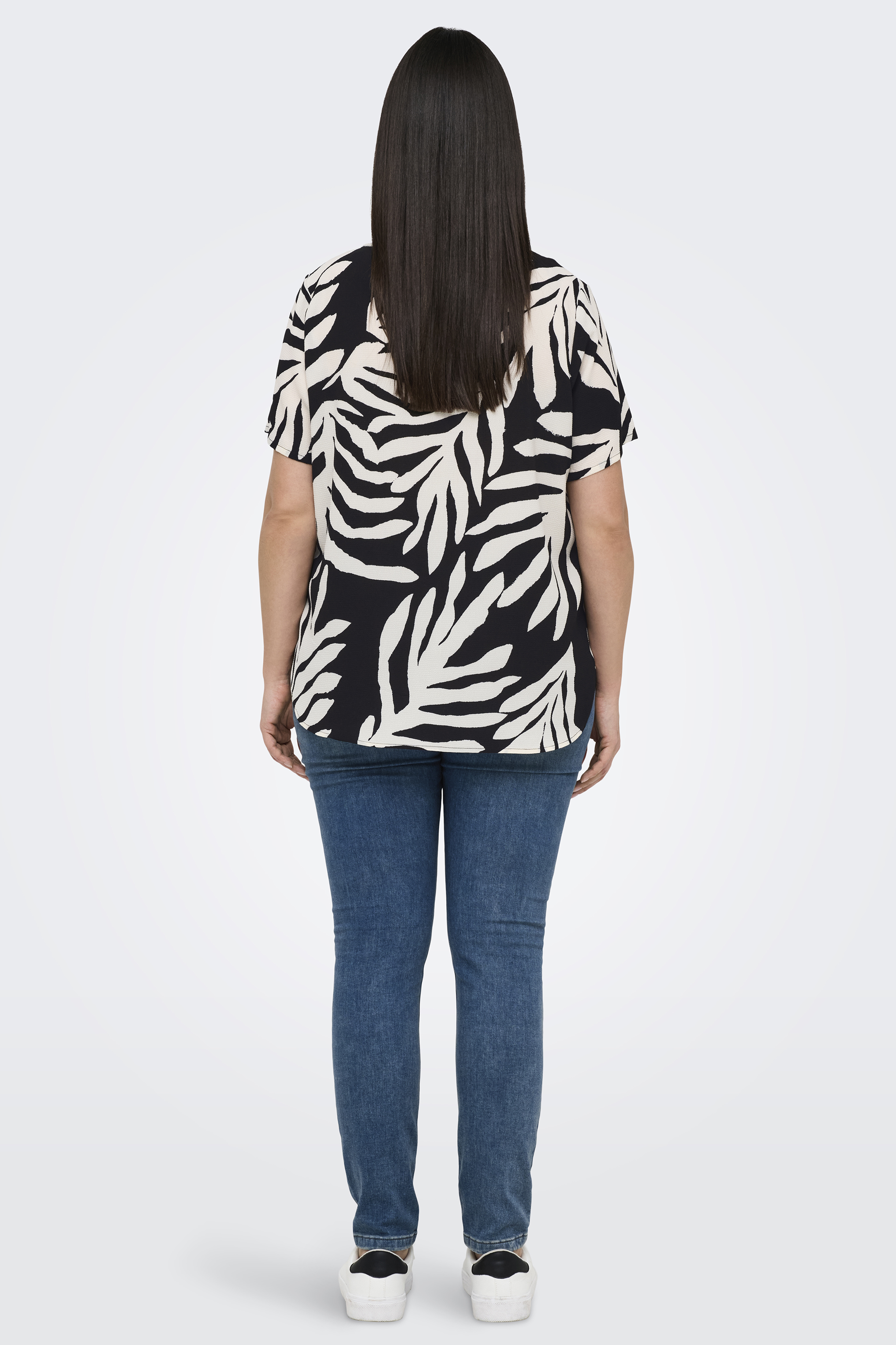 Vlot blousje van ONLY Carmakoma in een shirt model met een ronde hals met in de achternek een split met knoopje en lusje. Het heeft korte mouwen en afgeronde panden, waarbij het voorpand iets korter is dan het achterpand. Hij is gemaakt in de bekende LUX stof, een lichte crepe. De mooiste blouses vindt je in de categorie grote maten blouses.