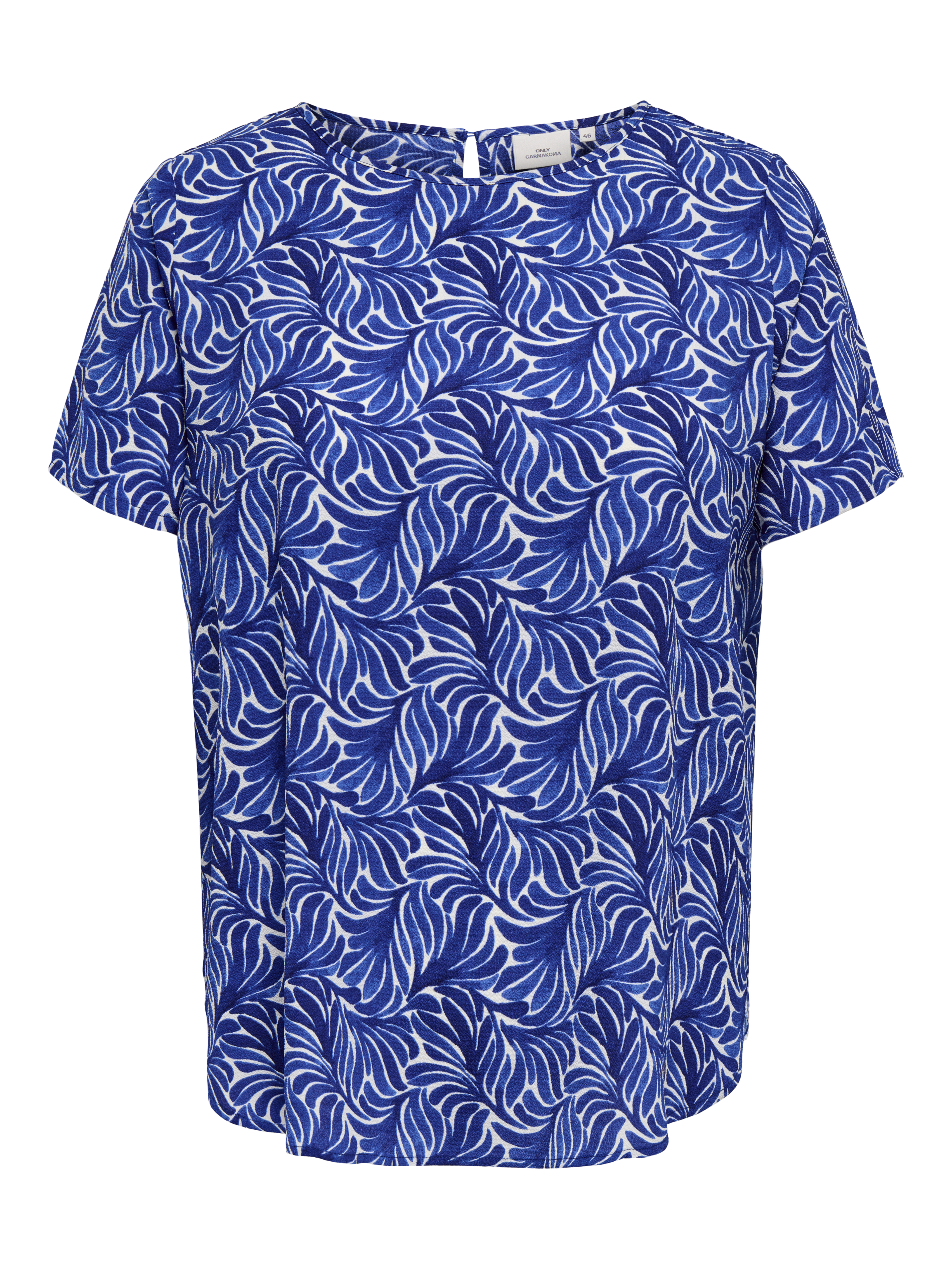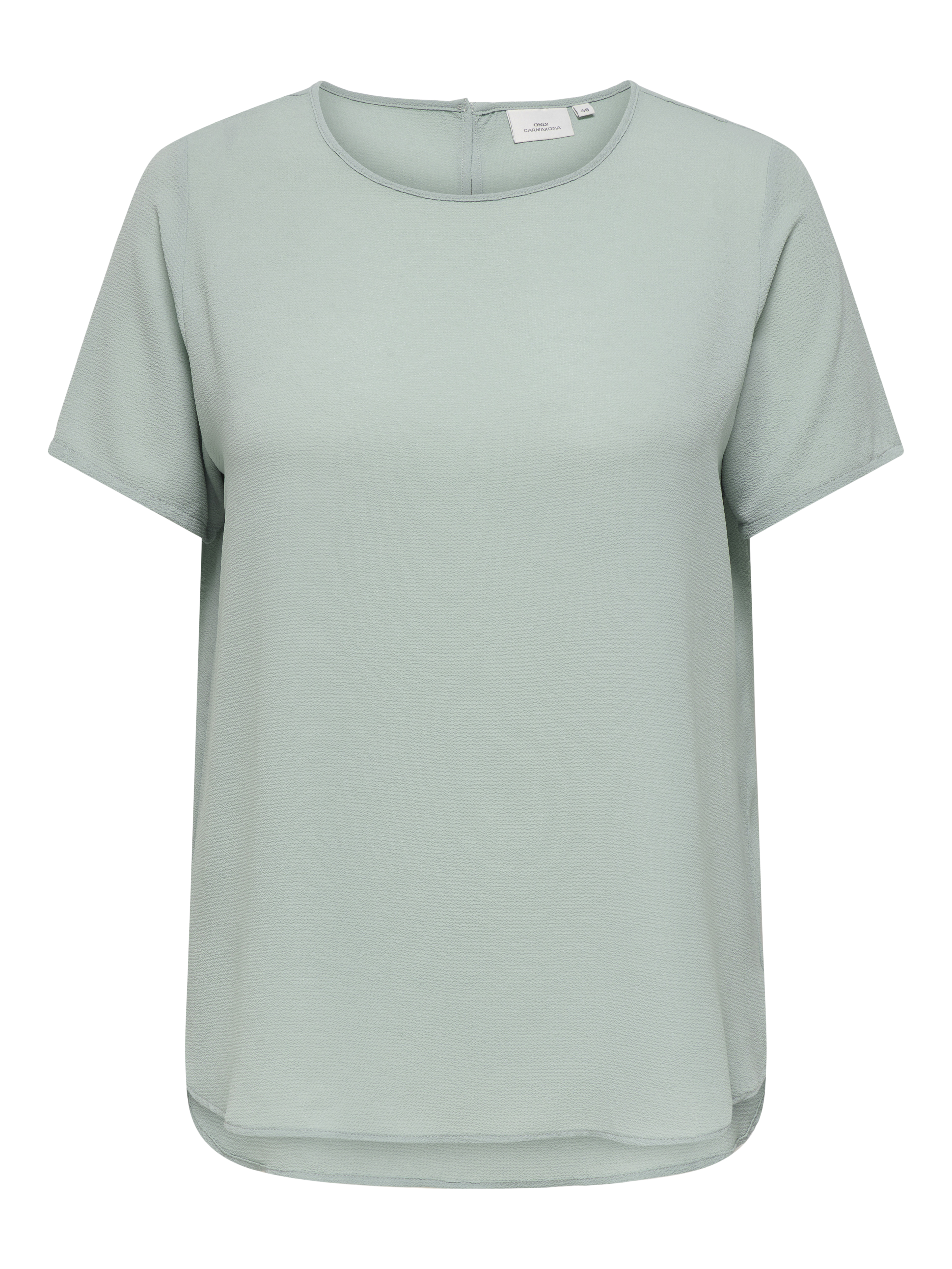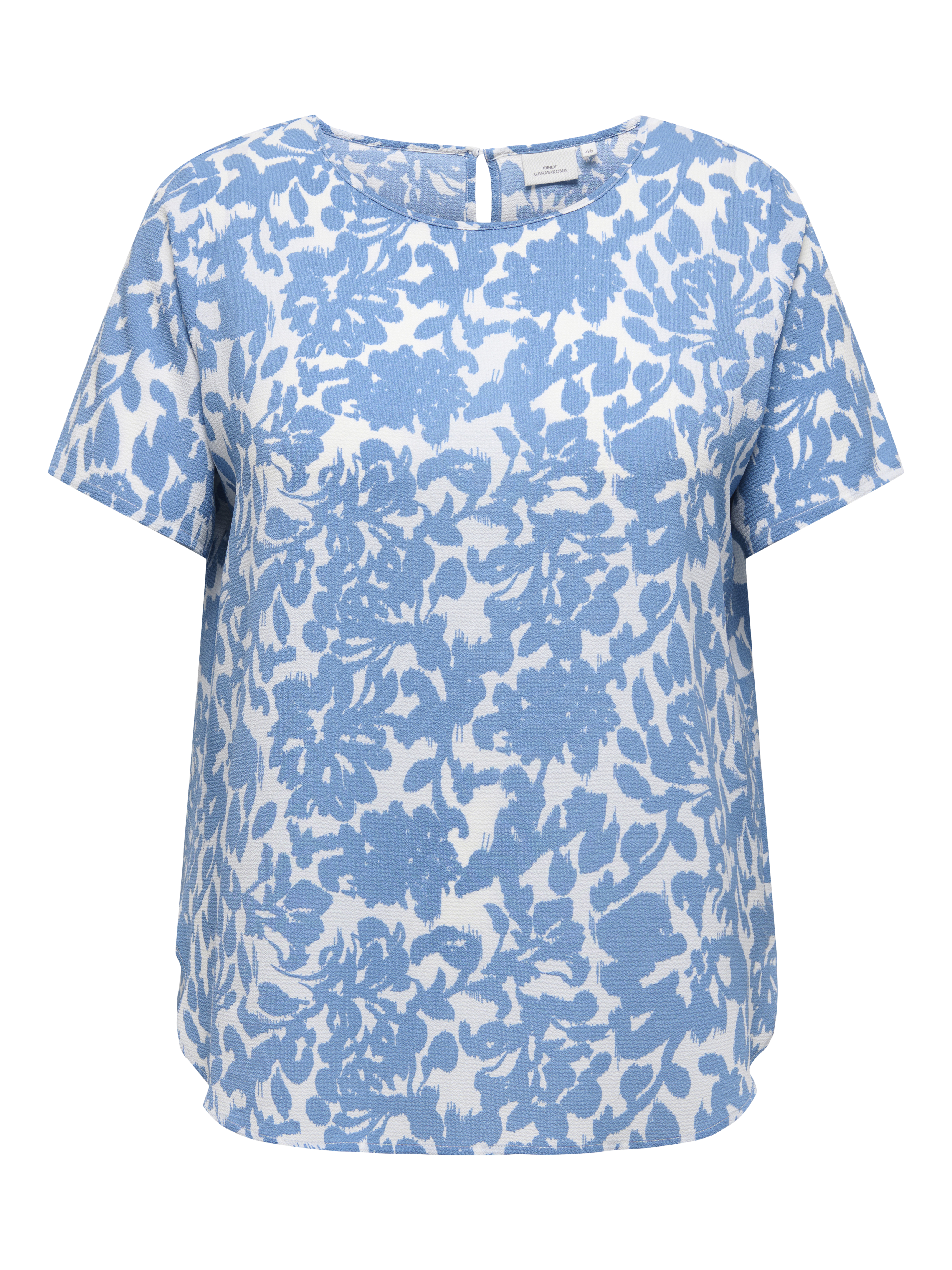 Vlot blousje van ONLY Carmakoma in een shirt model met een ronde hals met in de achternek een split met knoopje en lusje. Het heeft korte mouwen en afgeronde panden, waarbij het voorpand iets korter is dan het achterpand. Hij is gemaakt in de bekende LUX stof, een lichte crepe. De mooiste blouses vindt je in de categorie grote maten blouses.