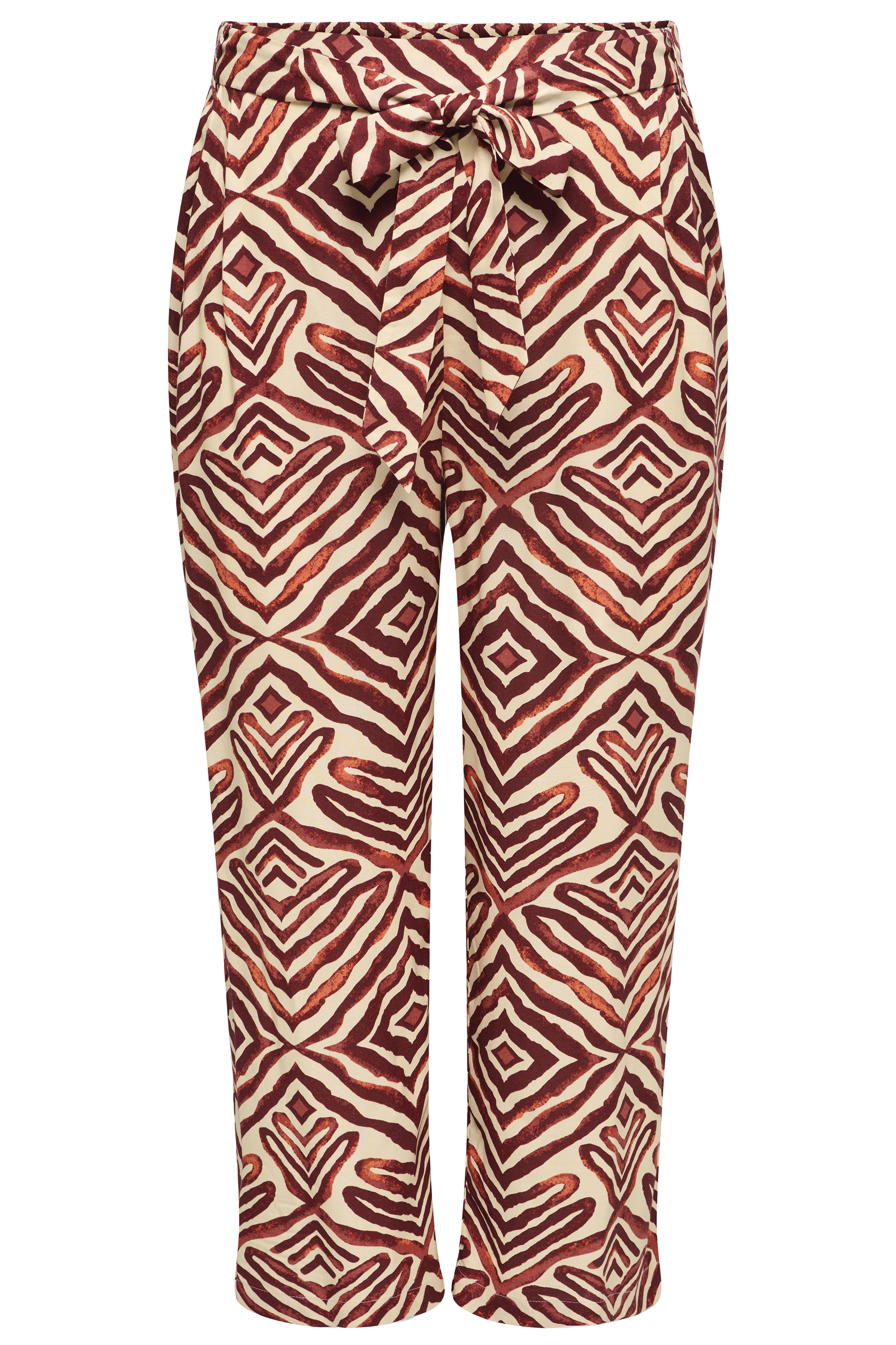 ONLY Carmakoma ECO broek CARSHILLA is gemaakt in een mooie viscose stof met een mooie print. De voortaille is glad en de achtertaille heeft elastiek. In de taille zit een strikceintuur. In de zijnaad zitten zakken. Het is een enkelvrij model broek. De bijpassende blouse is model 15357791.