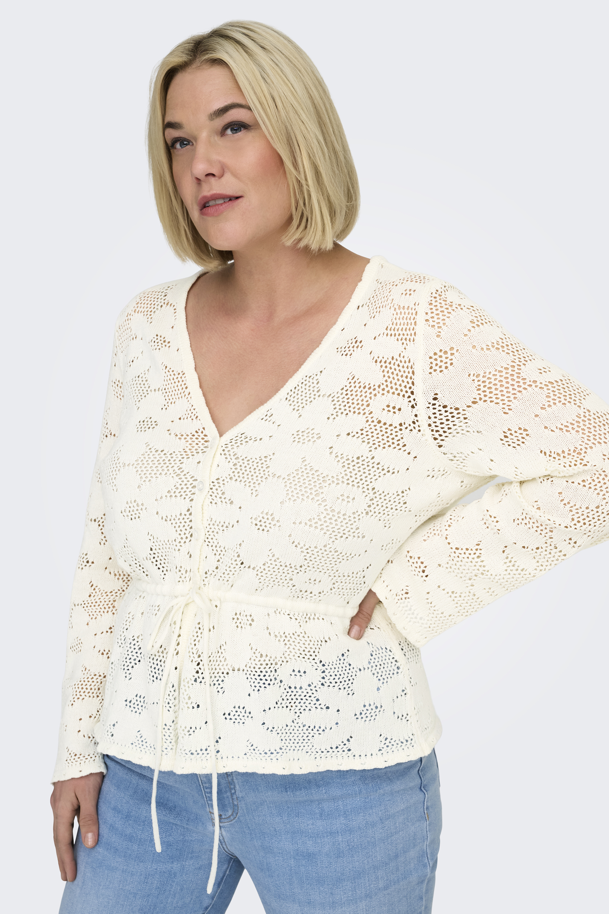 Het vest met kant is uitgevoerd in een zachte, fijngebreide kwaliteit die prettig aanvoelt op de huid. Door het aantrekkoord creëer je eenvoudig een subtiel getailleerd effect, wat zorgt voor een flatterend silhouet. Het vest is daardoor zowel losvallend als meer aangesloten te dragen. De nette afwerking en tijdloze look maken dit item geschikt voor verschillende gelegenheden.