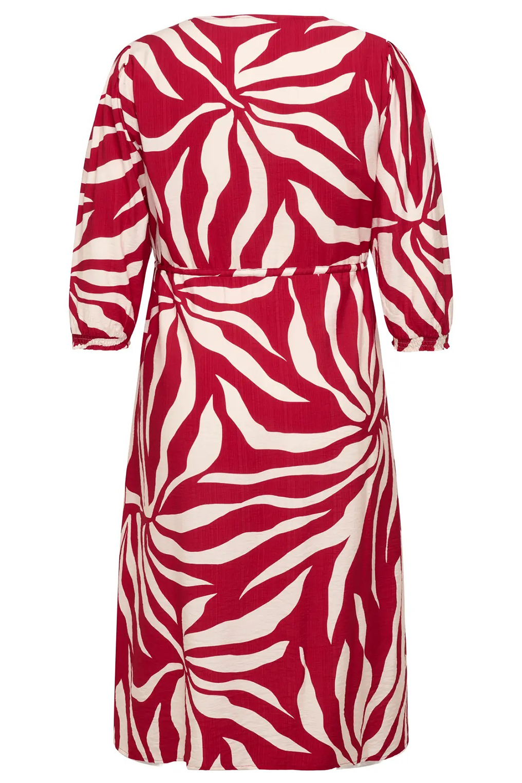 De Only Carmakoma jurk met zebraprint rood/crème van ONLY CARMAKOMA is een echte blikvanger binnen de collectie grote maten kleding. Deze plus size jurk heeft een v-hals, 3/4 mouwen met elastische boorden en een strikceintuur in de taille. De geplooide details en de soepele pasvorm zorgen voor een vrouwelijk silhouet. De lengte valt tot over de knie, wat deze jurk geschikt maakt voor werk, een dagje uit of een etentje.