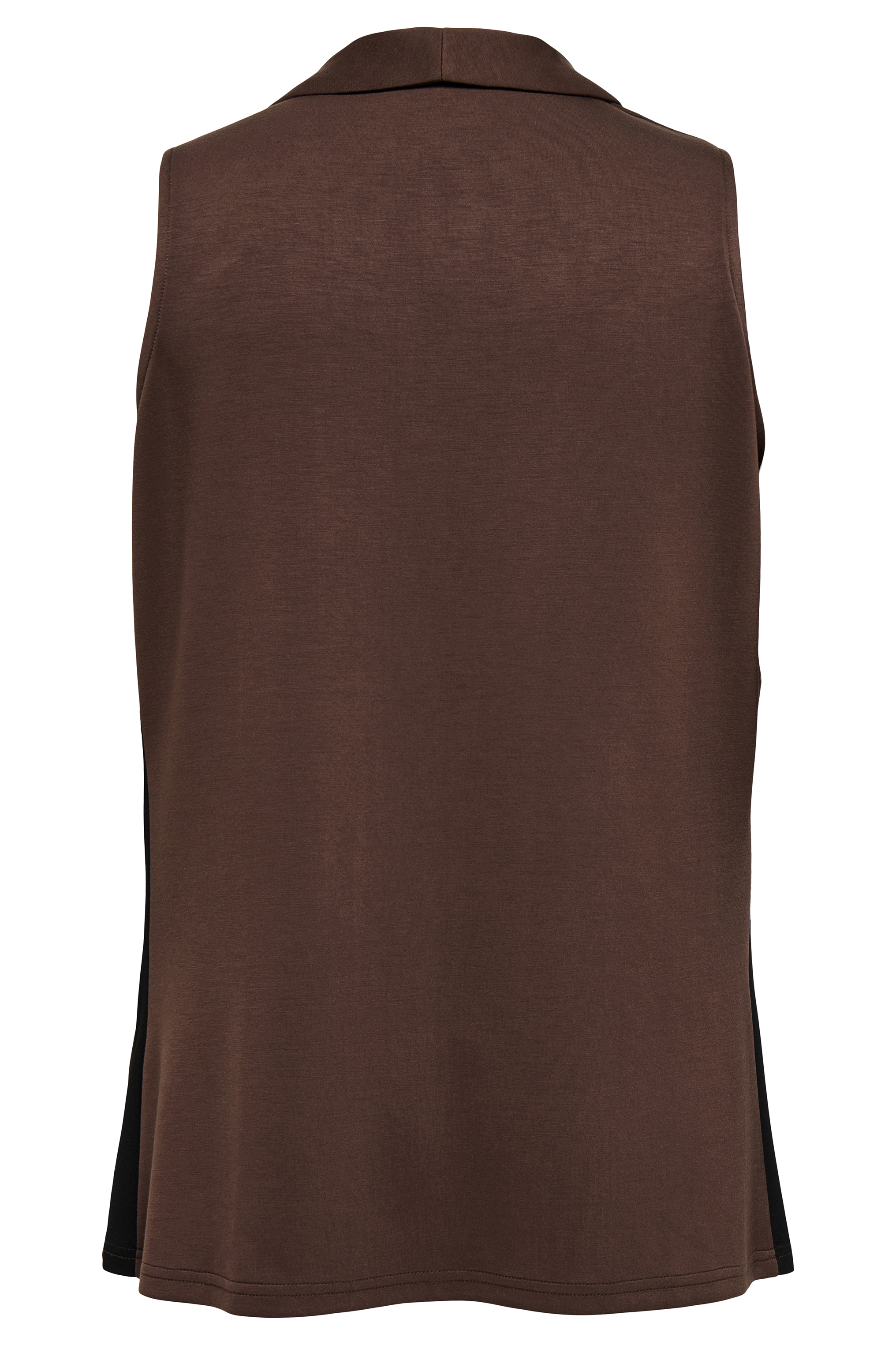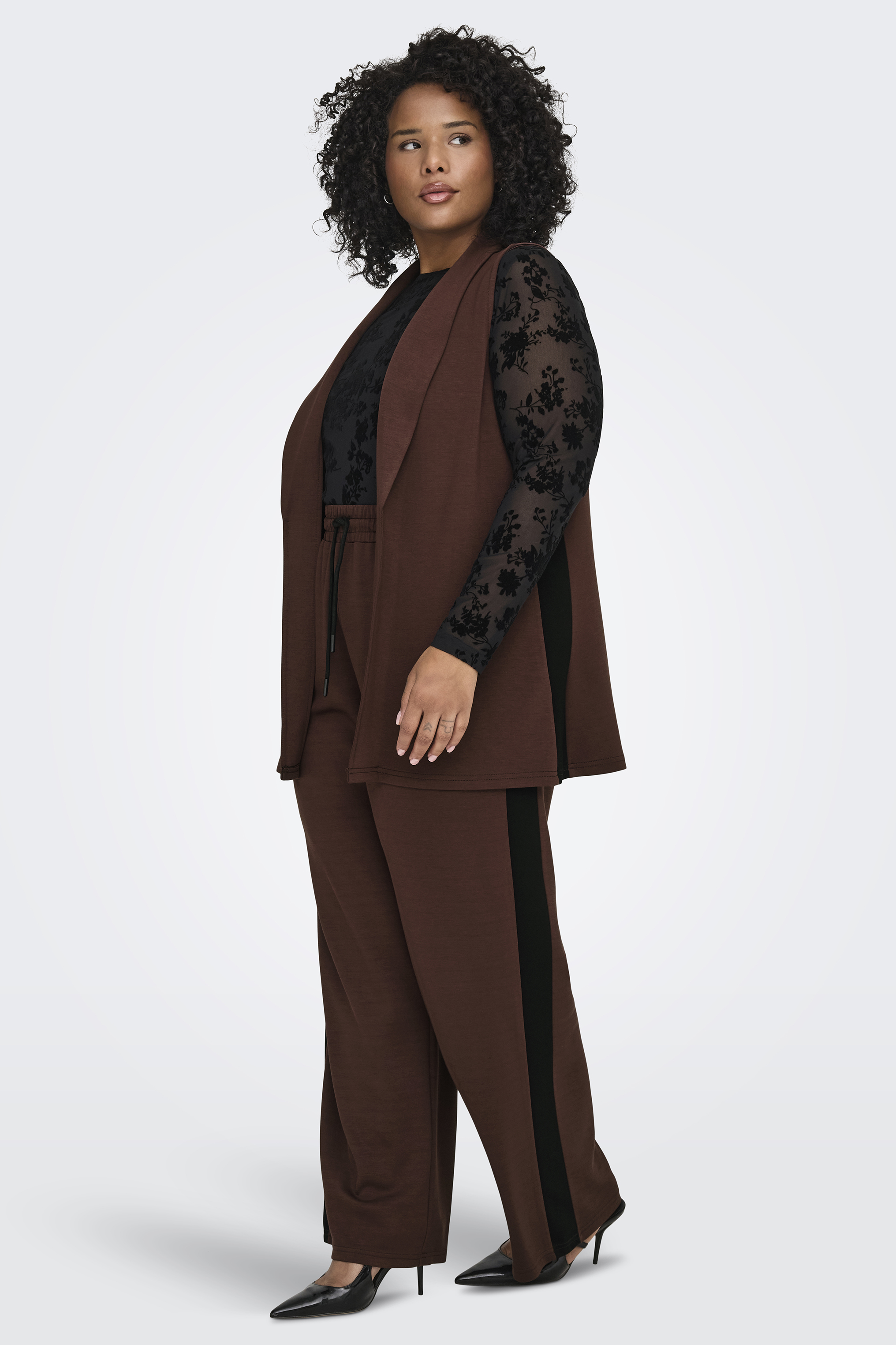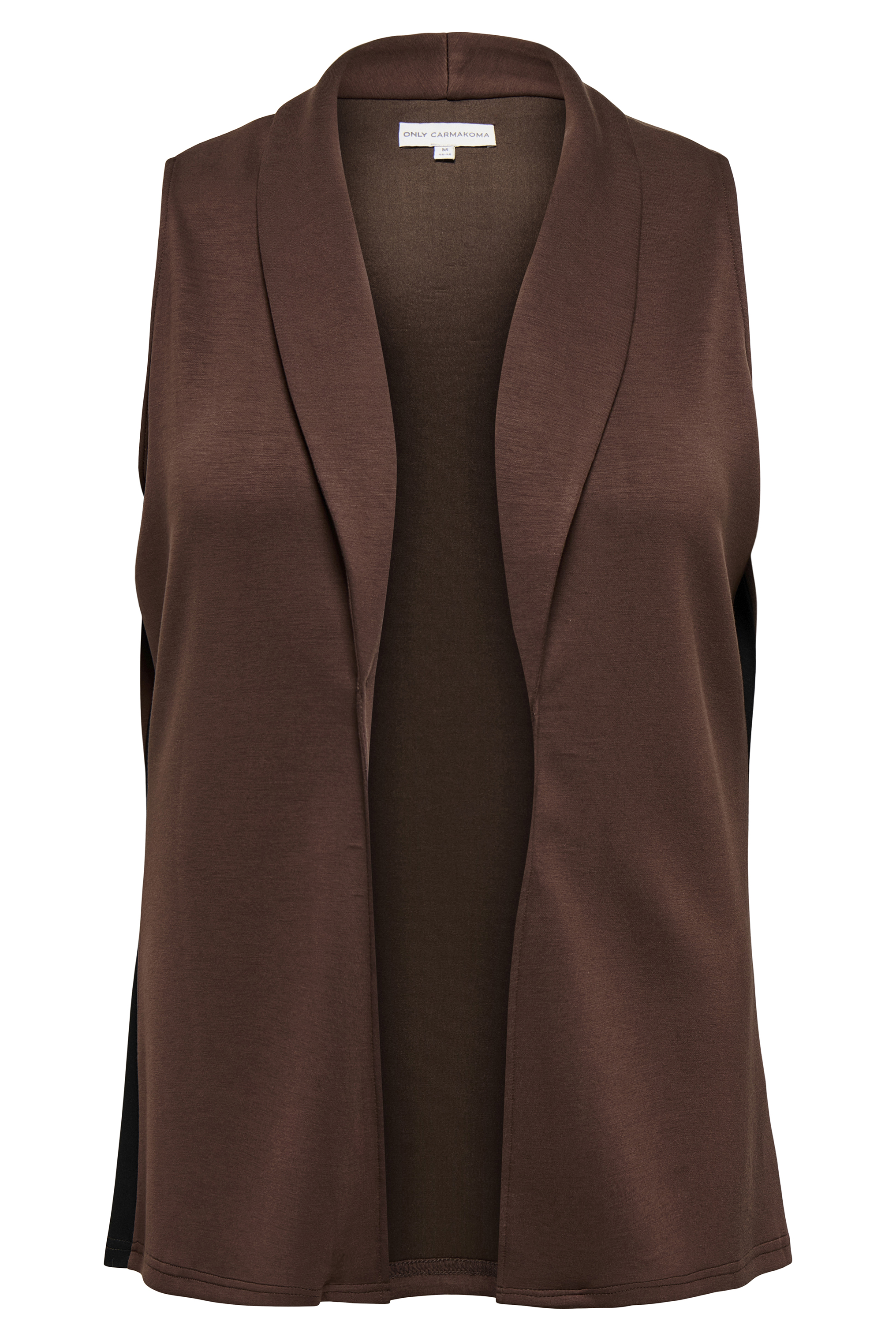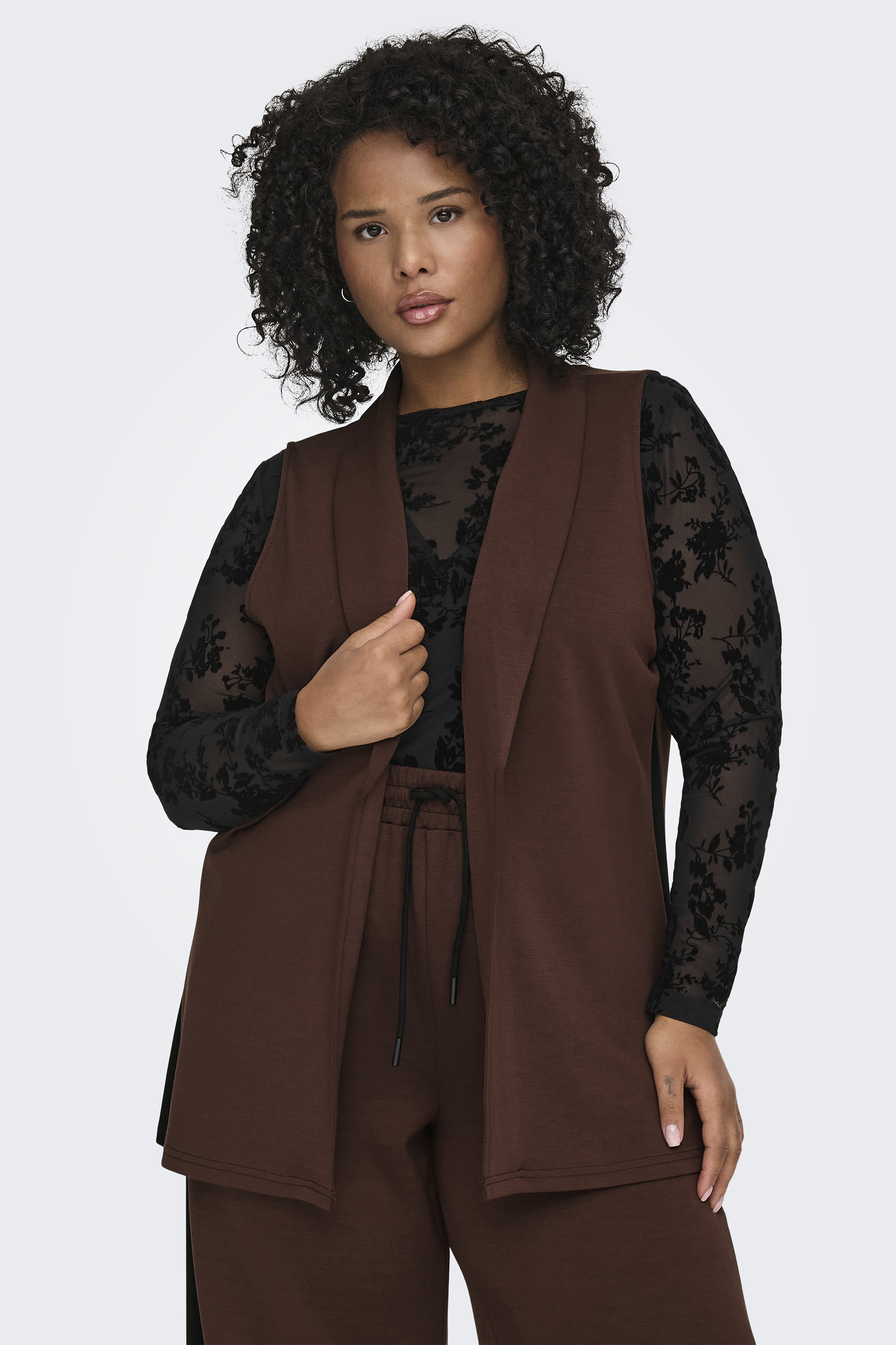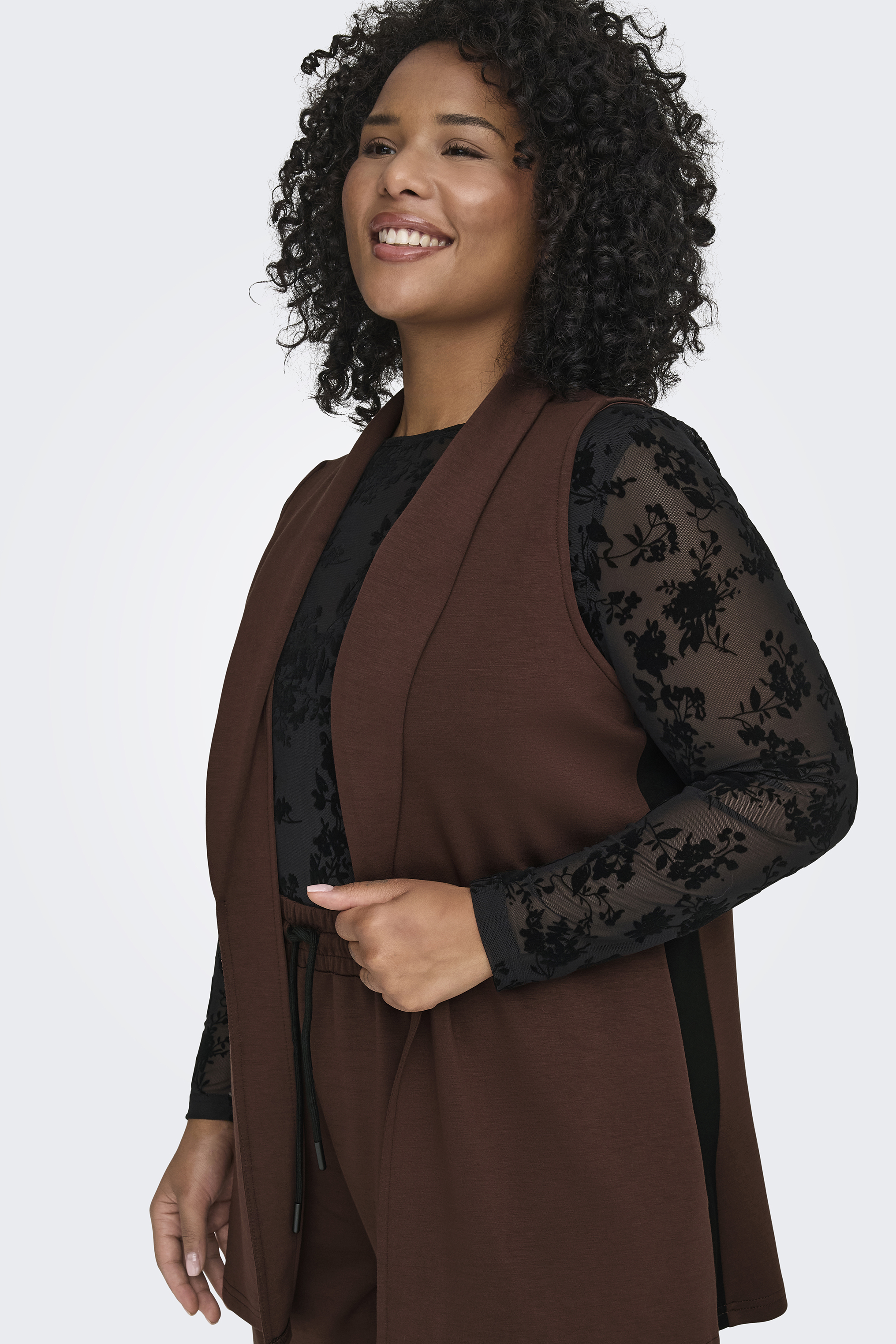 De Carleah van ONLY Carmakoma is een stijlvol, lang gilet in een warme bruine tint. De zwarte inzetten aan de zijkanten creëren een mooi, verlengd silhouet en geven het geheel een moderne uitstraling. Dankzij het tijdloze design combineer je dit gilet moeiteloos met de bijpassende broek of een strakke jeans voor een trendy, gelaagde look die perfect is voor elk seizoen.