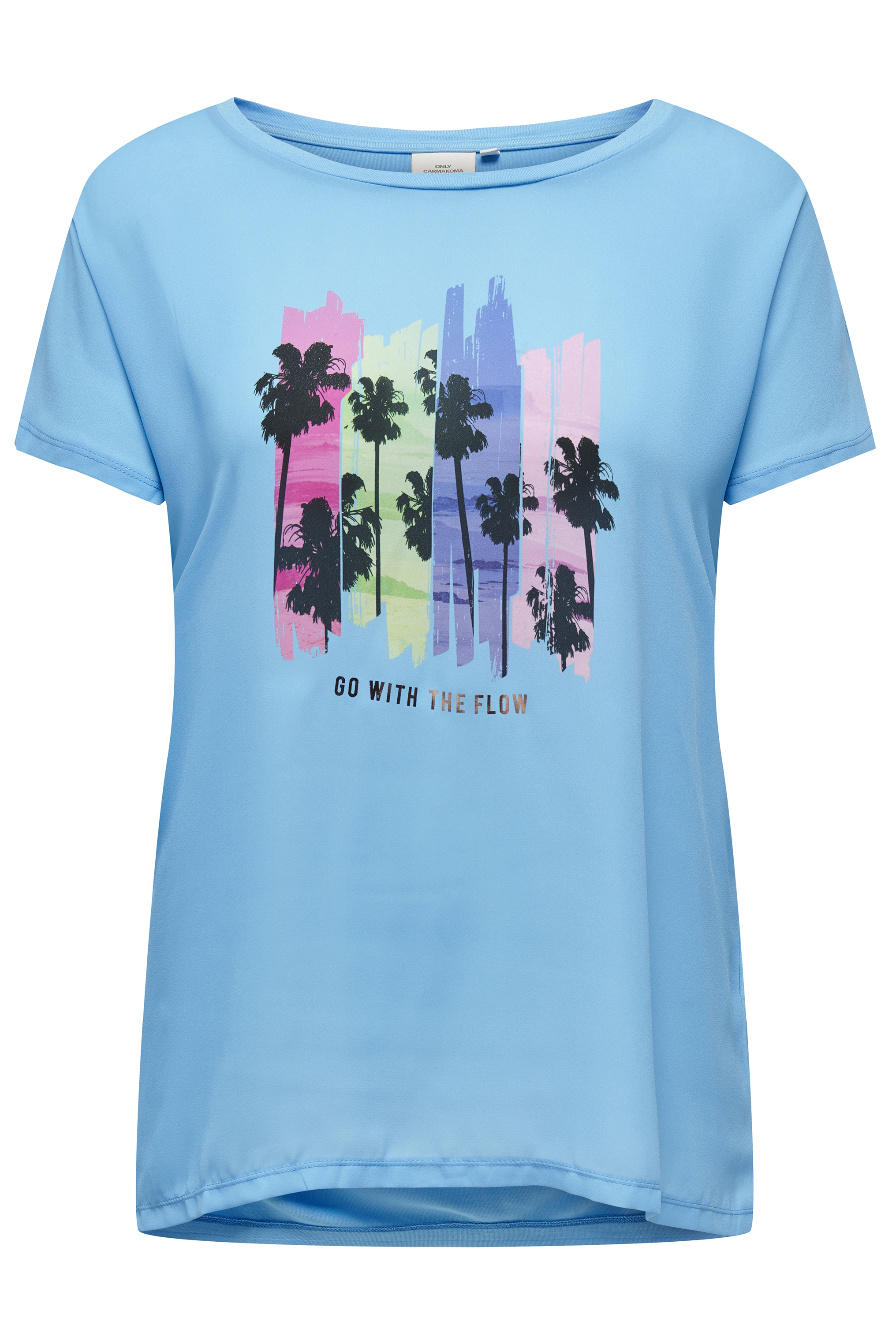 ONLY Carmakoma shirt CARKETTY heeft aan de voorkant een blouse stof en aan de achterkant heeft hij een wat dunnere tricot. Op de voorkant staat een leuke zomerse opdruk met koperkleurige glans tekst. Hij heeft een ronde hals en aangeknipte korte mouwe en een normale pasvorm. Lekker sportief op een jeans.
