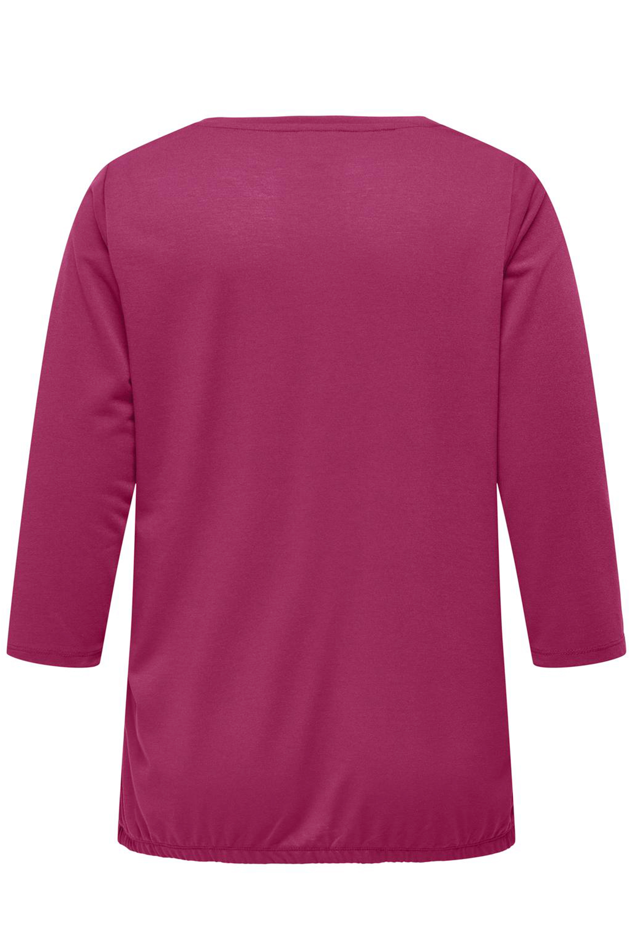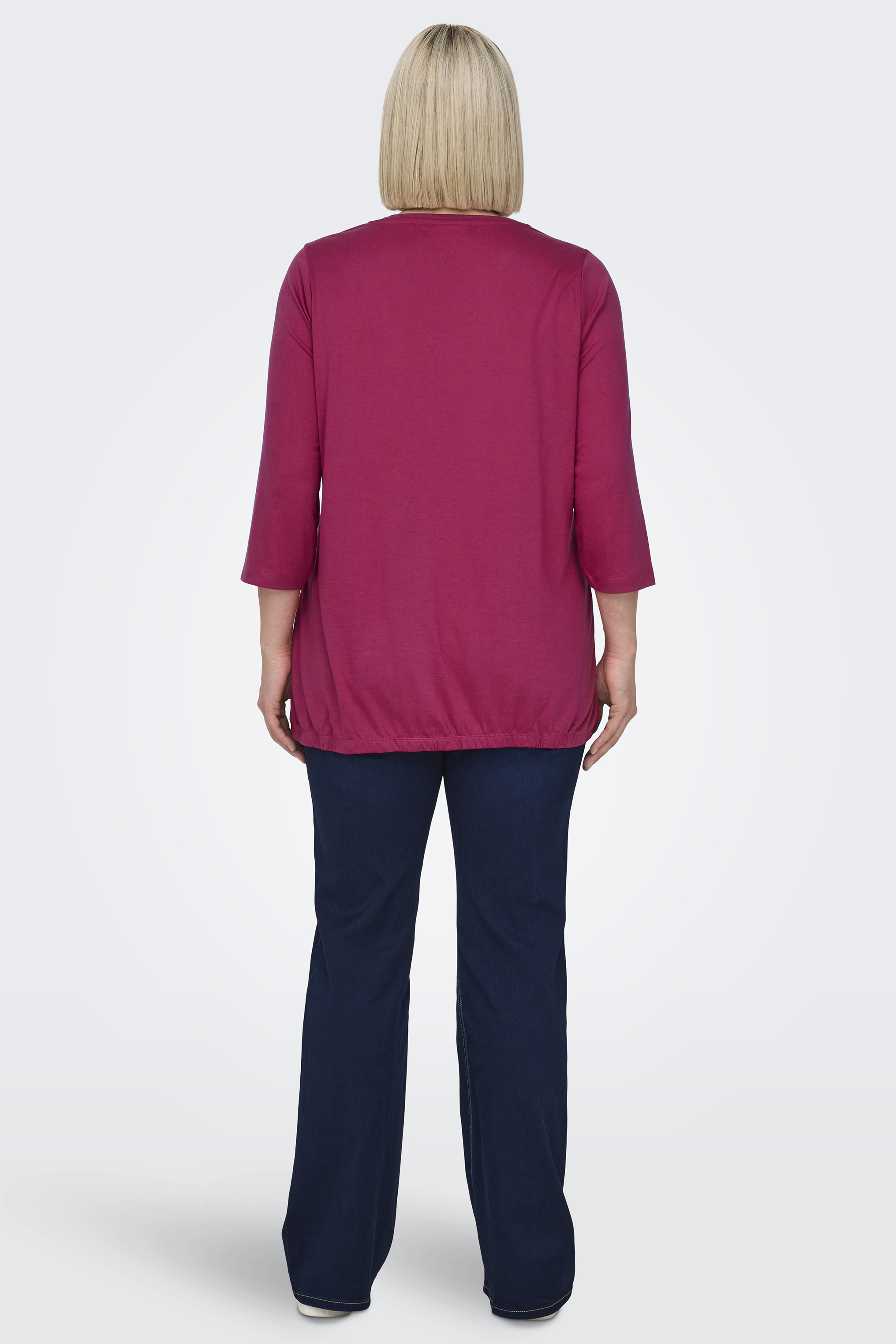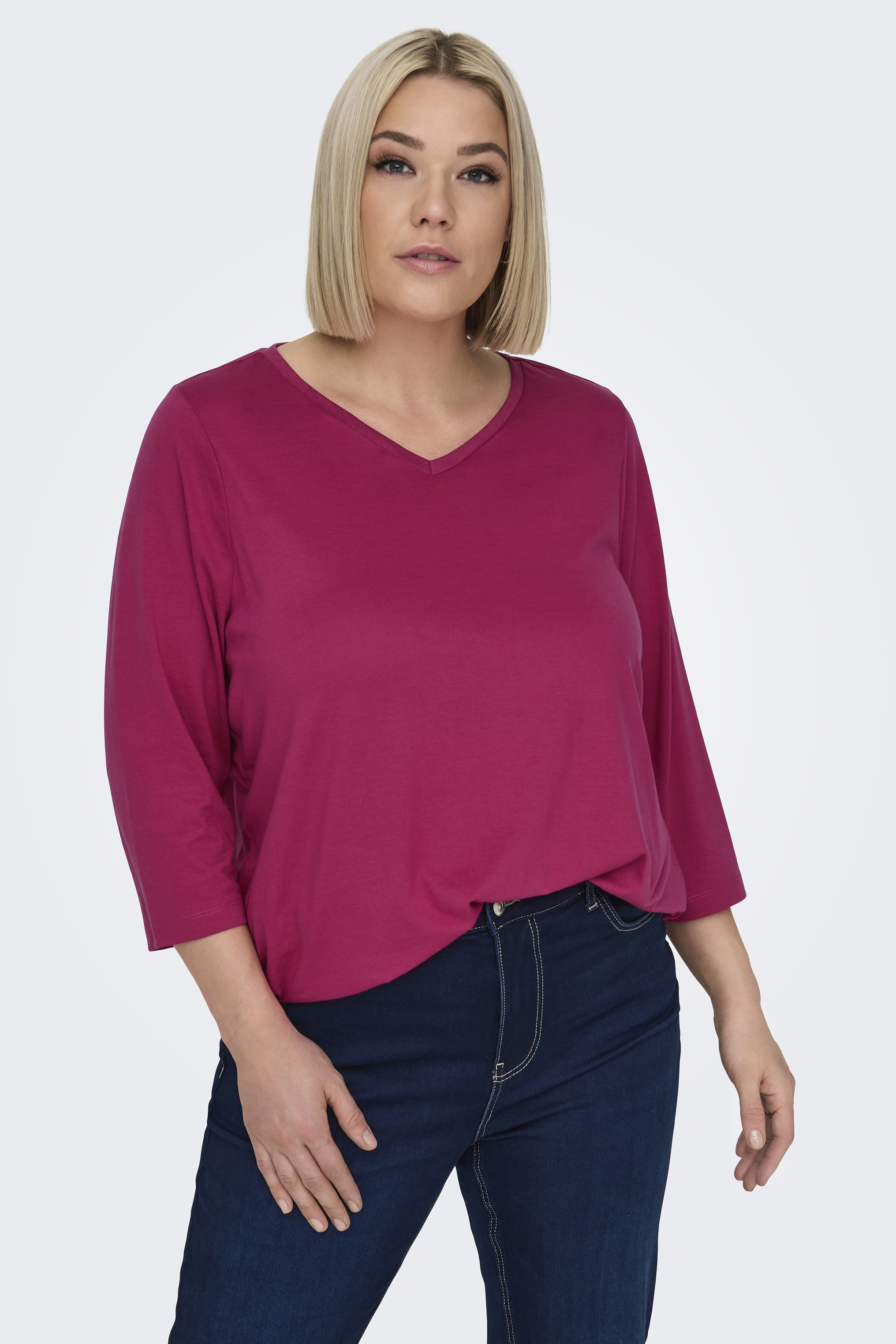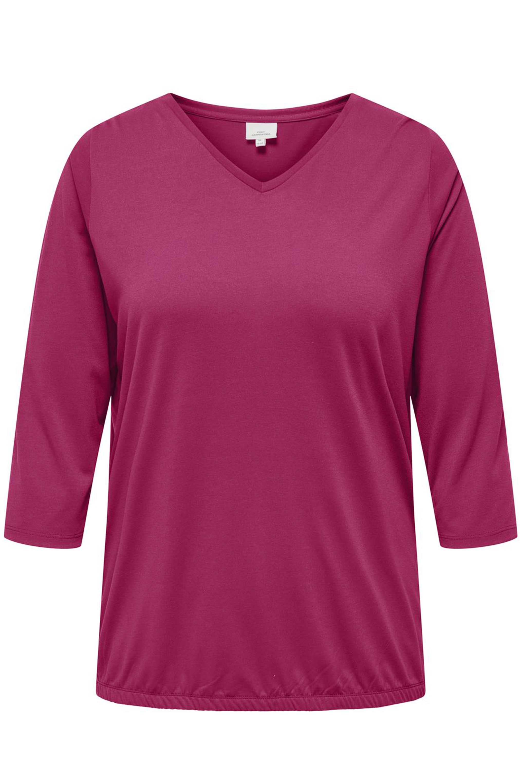 ONLY Carmakoma shirt LINNE  heeft een V hals en elastiek in de zoom. Hij is gemaakt in een mooie tricot kwaliteit die fijn draagt. Bij het opmeten ontdekte we dat dit model ruim valt. Natuurlijk om wat losser te dragen of als je daar niet van houdt, neem dan een maat kleiner. Super op een jeans en met een lang vest.