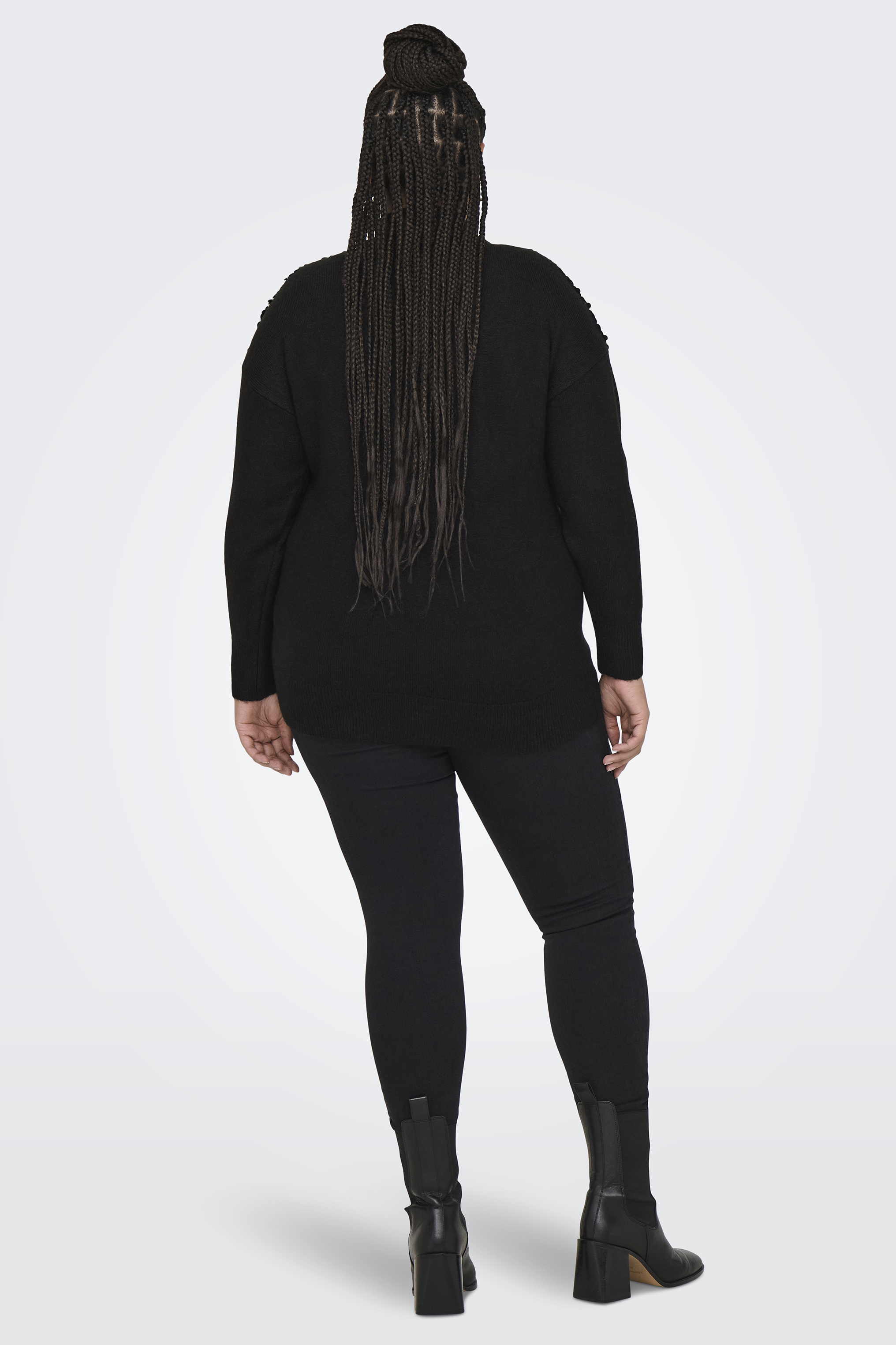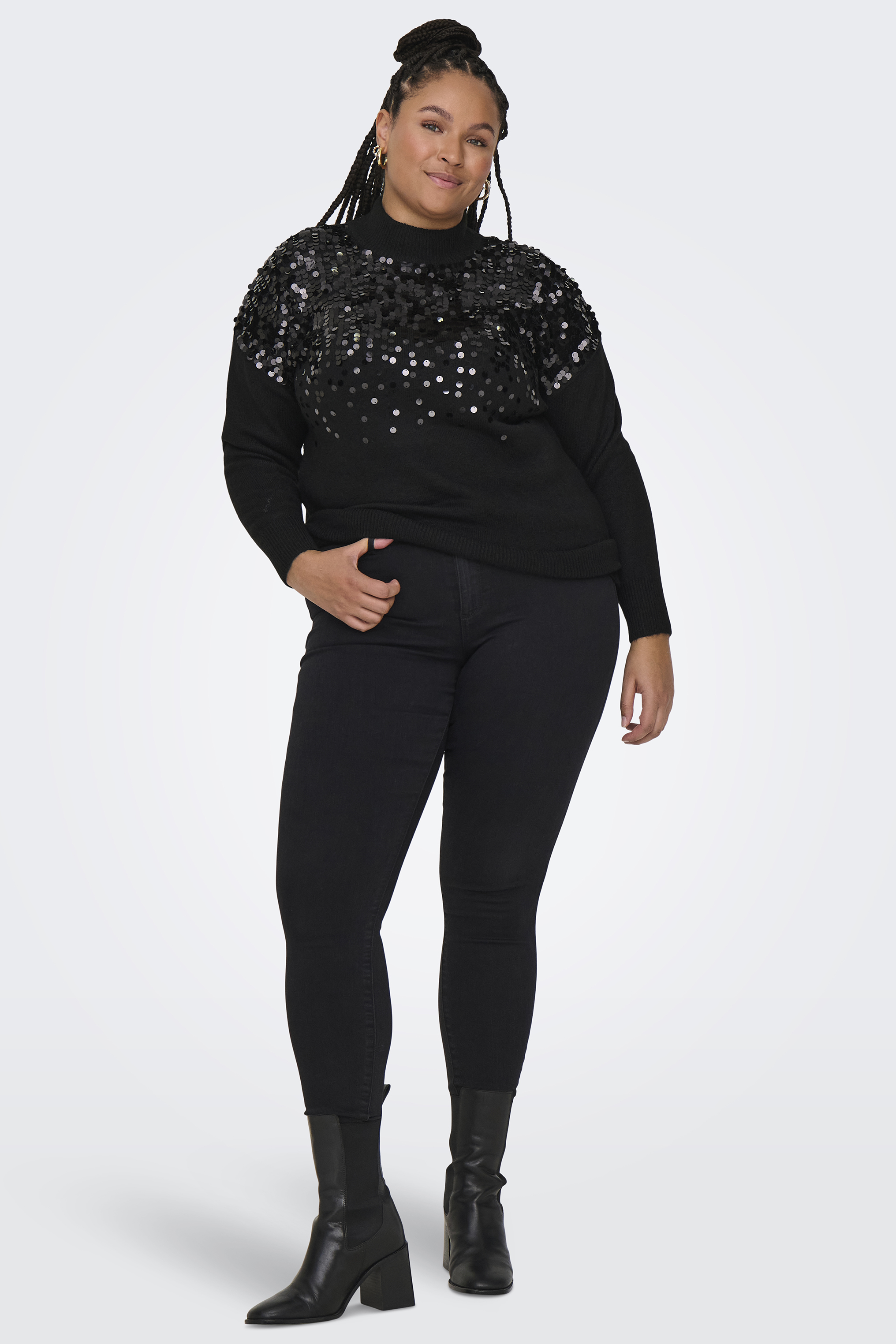 ONLY Carmakoma trui ALBA heeft aan de bovenkant wat grotere pailletten gestikt. De trui heeft een turtle hals en lange mouwen. Het is een wat kortere trui en daarom super om te combineren met een wat wijder vallende broek of rok. Wij vinden hem ook super leuk met de satijnen print broek 15348855. Wil je nog meer leuke feestelijke items zien, klik dan op de link Feest.
