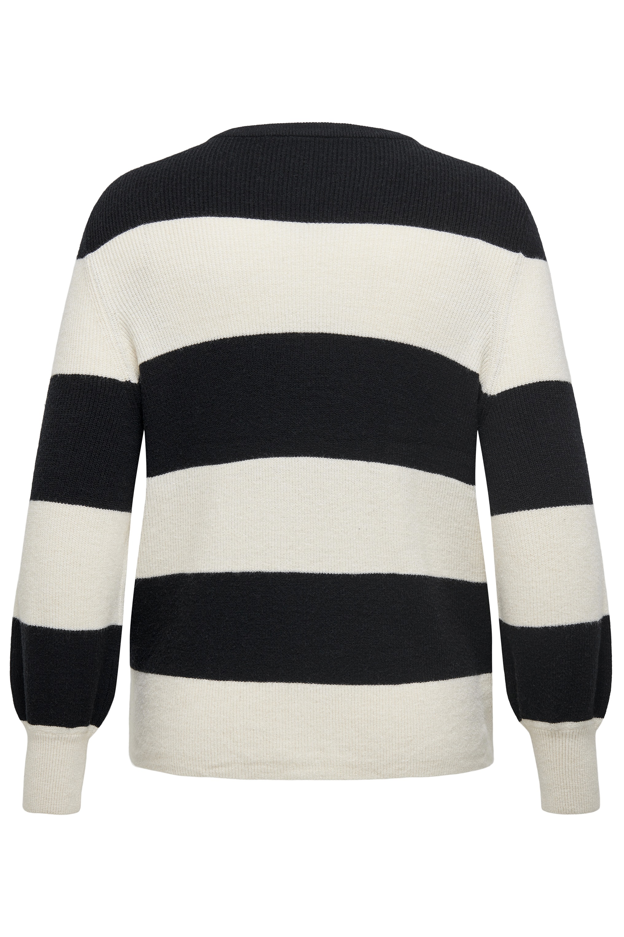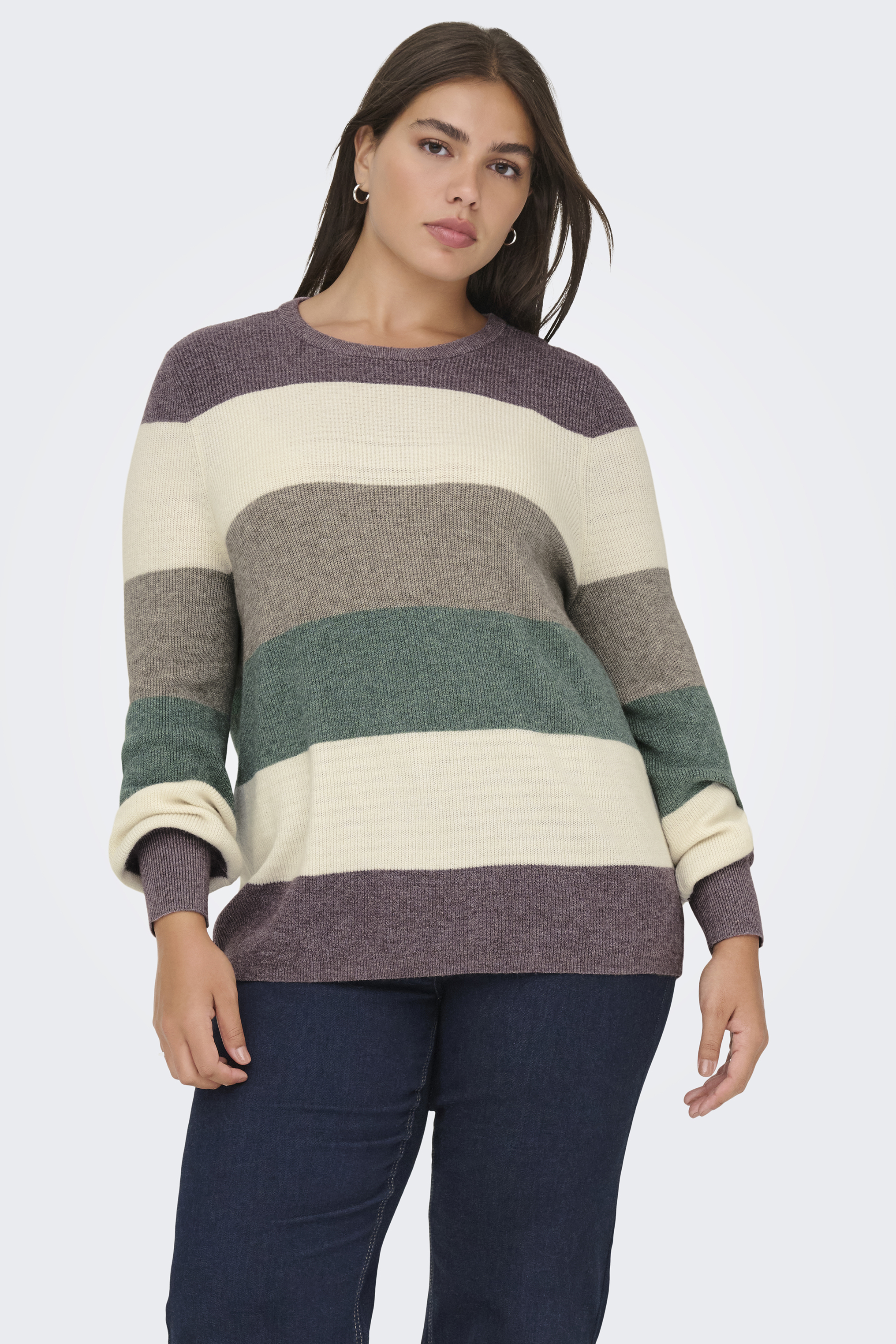 Deze trui van ONLY Carmakoma is een stijlvolle en comfortabele keuze, ontworpen met een strak, modern kleurblokpatroon. Het ontwerp bestaat uit brede horizontale strepen. Naast de huidige stijl, zijn er ook twee andere kleurencombinaties beschikbaar. De trui heeft een ronde halslijn en lange mouwen met elastische boorden die de casual, sportieve uitstraling benadrukken. De gebreide stof heeft een zachte textuur die zorgt voor een aangename draagervaring, terwijl de losse pasvorm een comfortabele fit biedt.