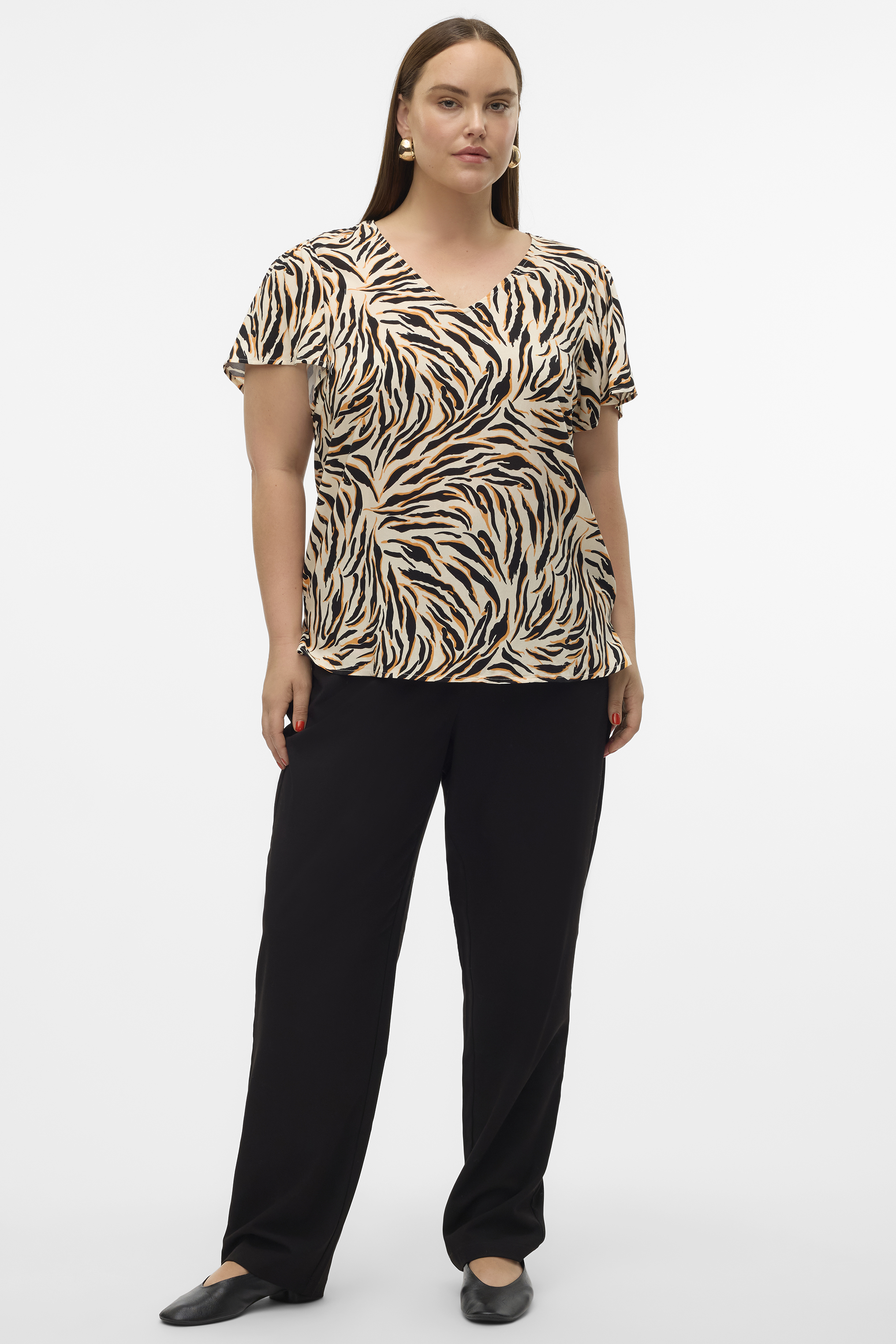 VERO MODA curve ECO blouse EASY is een super fijn en makkelijk te combineren model. Het is een rechtvallend model met korte kapmouw en V hals. Hij heeft een losse pasvorm. Super fijn op een jeans of zomerse broek. Hij is er in een aantal verschillende prints en hij is gemaakt in een mooie ECO viscose stof die super fijn draagt.