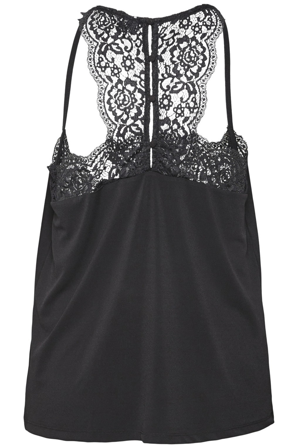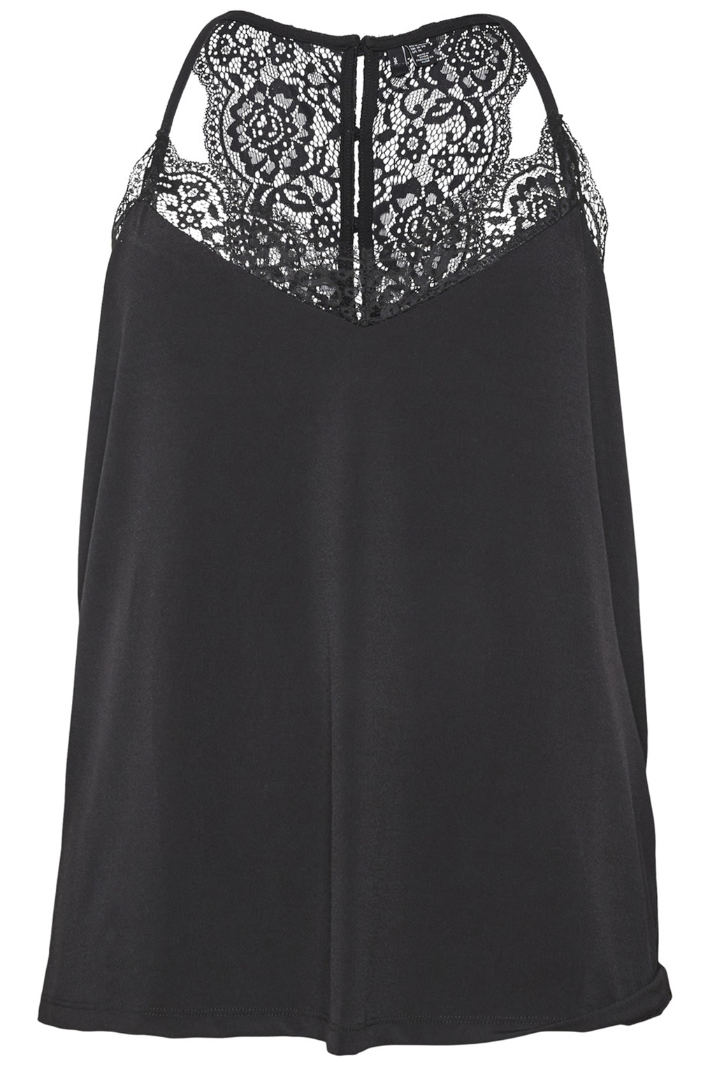 VERO MODA curve singlet VMANA is echt een plaatje. Hij heeft zowel aan de voor als achterkant een prachtig kant detail. Middenachter zit er een knooppad met stof knoopjes. Het singlet valt wat korter en heeft een lichte A lijn pasvorm. De lengte is bij maat S 69 cm. Hij is gemaakt in een ECO vriendelijk tricot. Je vindt al onze singlets in de categorie grote maten singlets.