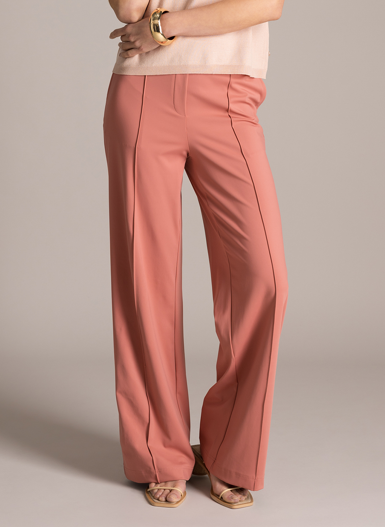 Deze Yest pantalon heeft een moderne "wide fit", waardoor de pijpen soepel en ruim om de benen vallen zonder zwaar aan te voelen. De elastische tailleband zorgt voor een perfecte aansluiting en optimaal draaggemak. Voor een elegante uitstraling is de broek voorzien van stijlvolle persnaden aan de voorzijde. Met een binnenbeenlengte van 32 inch valt de broek prachtig lang. Of u nu kiest voor de frisse pastelgroene tint of de warme kleur Dark Terra, deze pantalon is een onmisbare basic voor uw plus size garderobe.