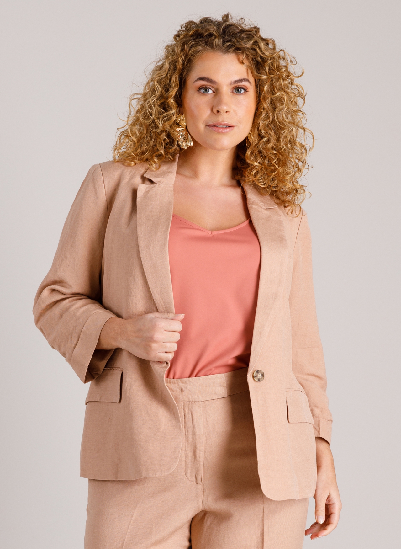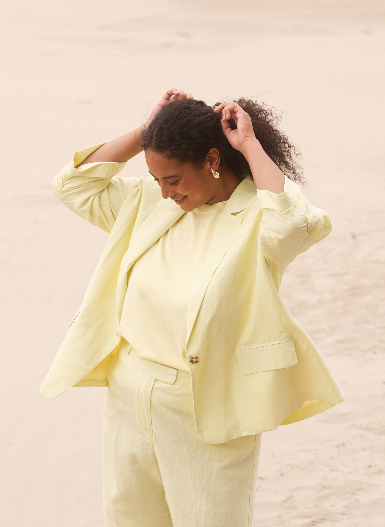 Een fris colbert van Yest Curve dat je meteen zin geeft in zonnige dagen. De linnen-viscose mix draagt heerlijk luchtig en de driekwart mouwen zorgen voor een relaxte vibe. Dankzij het ene knoopje blijft de Liselot lekker open vallen. Extra fijn: er is een bijpassende broek én een gilet, dus je stelt heel makkelijk je eigen set samen.