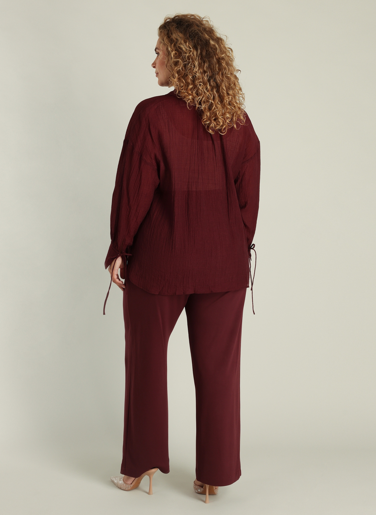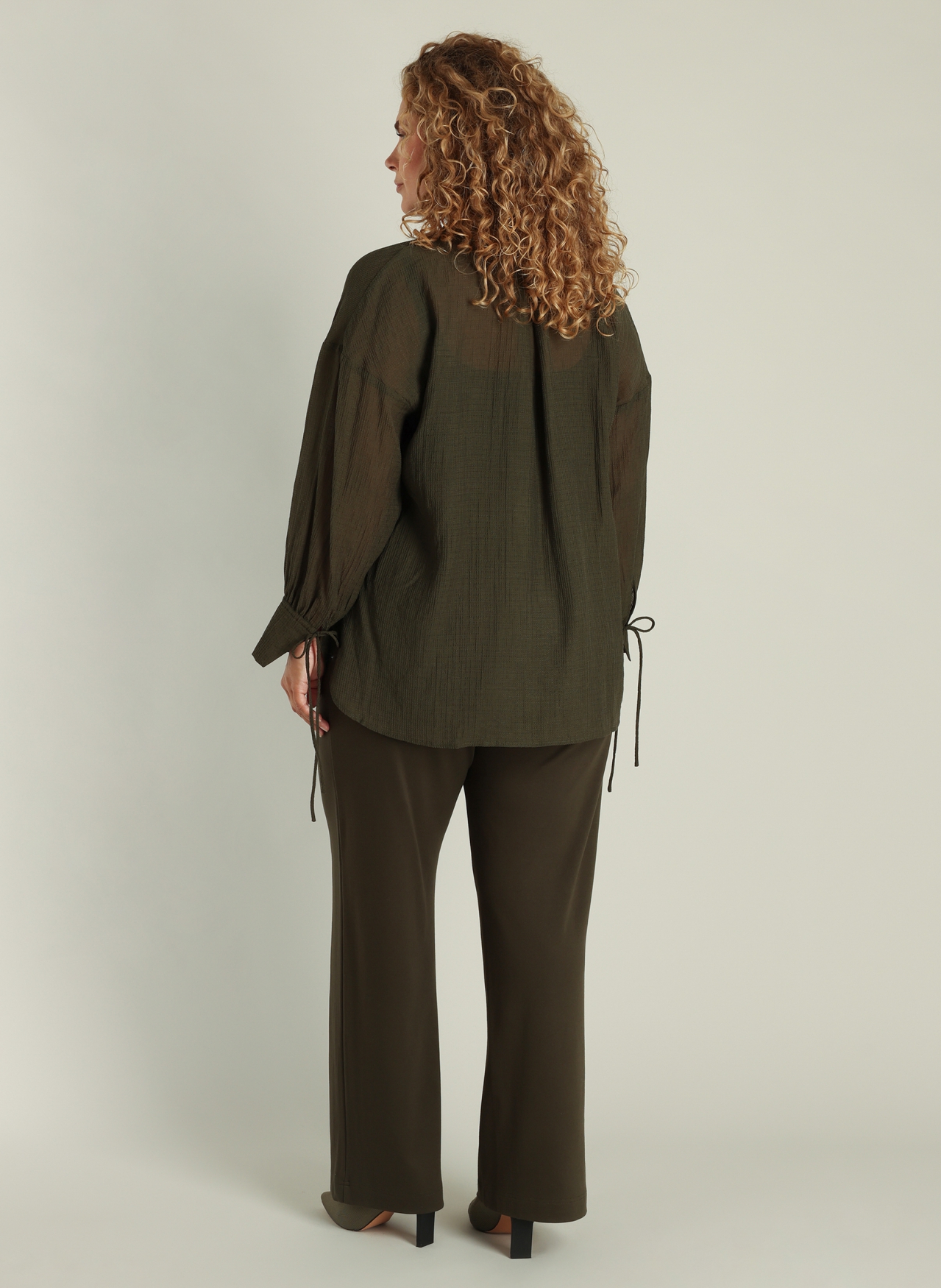 De structuurstof geeft het model subtiele diepte, terwijl de loose fit zorgt voor extra bewegingsvrijheid. Perfect te combineren met een jeans of rok voor een easy-going, moeiteloze outfit.