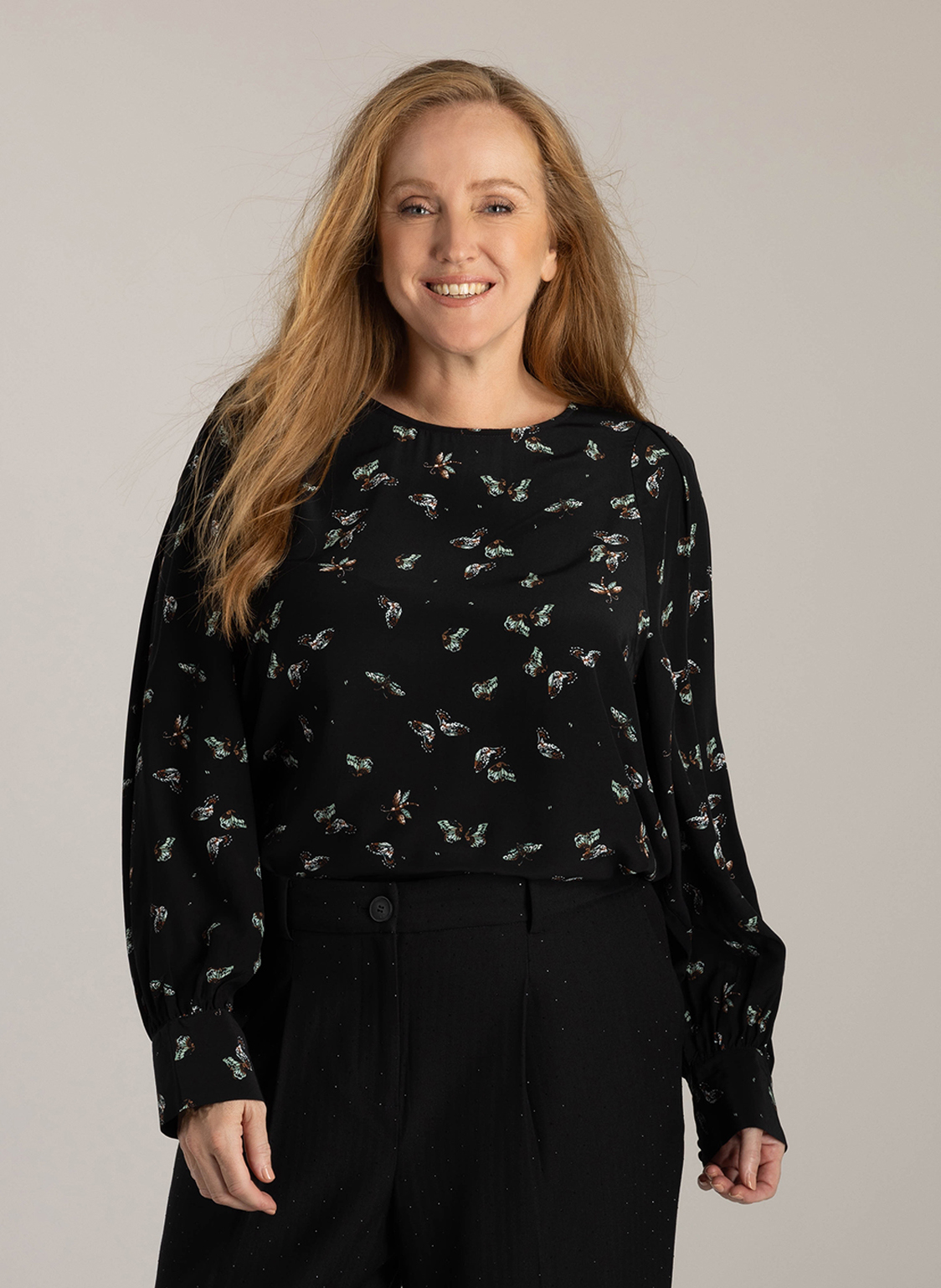 De blouse heeft elegante ballonmouwen en een klein knoopje achter in de hals, wat zorgt voor een subtiel en stijlvol detail. Dankzij de comfort fit pasvorm voelt de blouse luchtig aan en beweegt deze soepel met je mee. Verkrijgbaar in twee speelse dessins, waardoor je eenvoudig kunt kiezen welke print het beste bij jouw stijl past.
