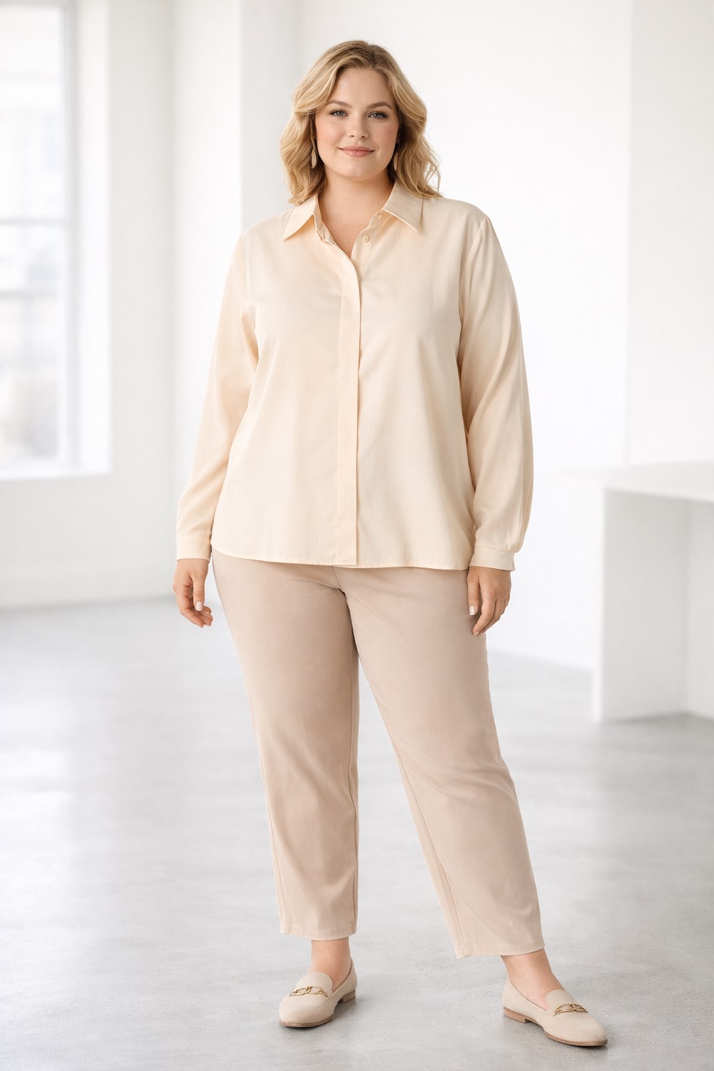 De Judit blouse is gemaakt van een zachte, licht glanzende stof die soepel valt en prettig aanvoelt op de huid. De blinde knoopsluiting zorgt voor een strakke, verzorgde uitstraling, terwijl de klassieke kraag een tijdloos detail toevoegt. De lange mouwen eindigen in smalle manchetten met een klein knoopje, wat subtiel elegantie toevoegt. De regular fit valt comfortabel en losjes, waardoor de blouse geschikt is voor zowel werk als vrije tijd. Verkrijgbaar in twee kleuren, waardoor hij makkelijk te combineren is en bij verschillende stijlen past.