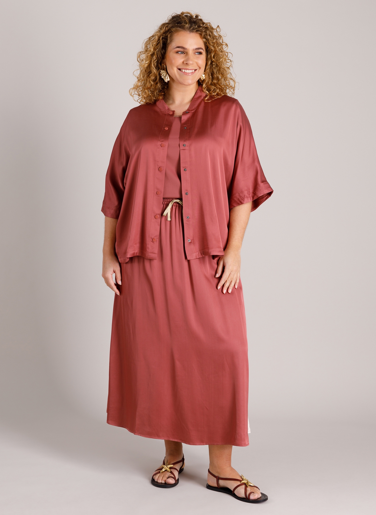 Zó’n fijne blouse van Yest Curve! De glans van de viscose geeft de Laura meteen een chique, zachte vibe, terwijl de comfort fit heerlijk relaxed zit. De drukknoopjes houden ’t mooi clean. En met de bijpassende rok erbij heb je in één klap een superleuke outfit—echt een aanrader.