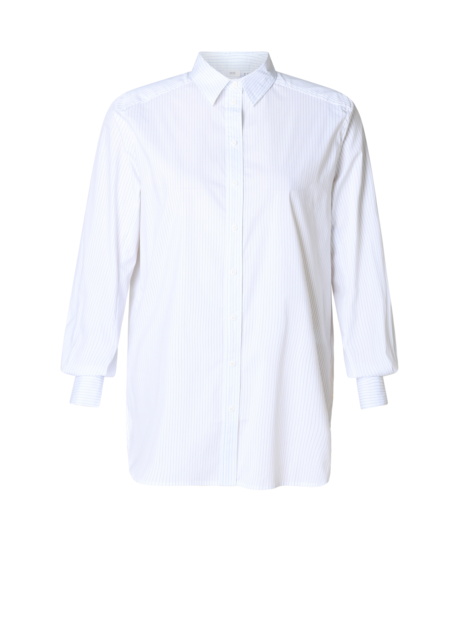 De lange blouse Vaishnavi Essential heeft een comfortabele pasvorm en is gemaakt van een lichtgewicht katoen-nylonblend die soepel valt en prettig draagt. Het fijne zwarte streepje op de witte ondergrond geeft een rustige, tijdloze uitstraling. De blouse heeft een klassieke kraag en een knoopsluiting over de voorkant, waardoor je de hals naar wens kunt dragen. De lange mouwen zijn afgewerkt met smalle manchetten. Door de extra lengte kan de blouse zowel los gedragen worden als deels ingestopt, waardoor je verschillende stijlen kunt creëren. Het model valt mooi over de heupen en is makkelijk te combineren met broeken, rokken of leggings voor zowel casual als nettere looks.