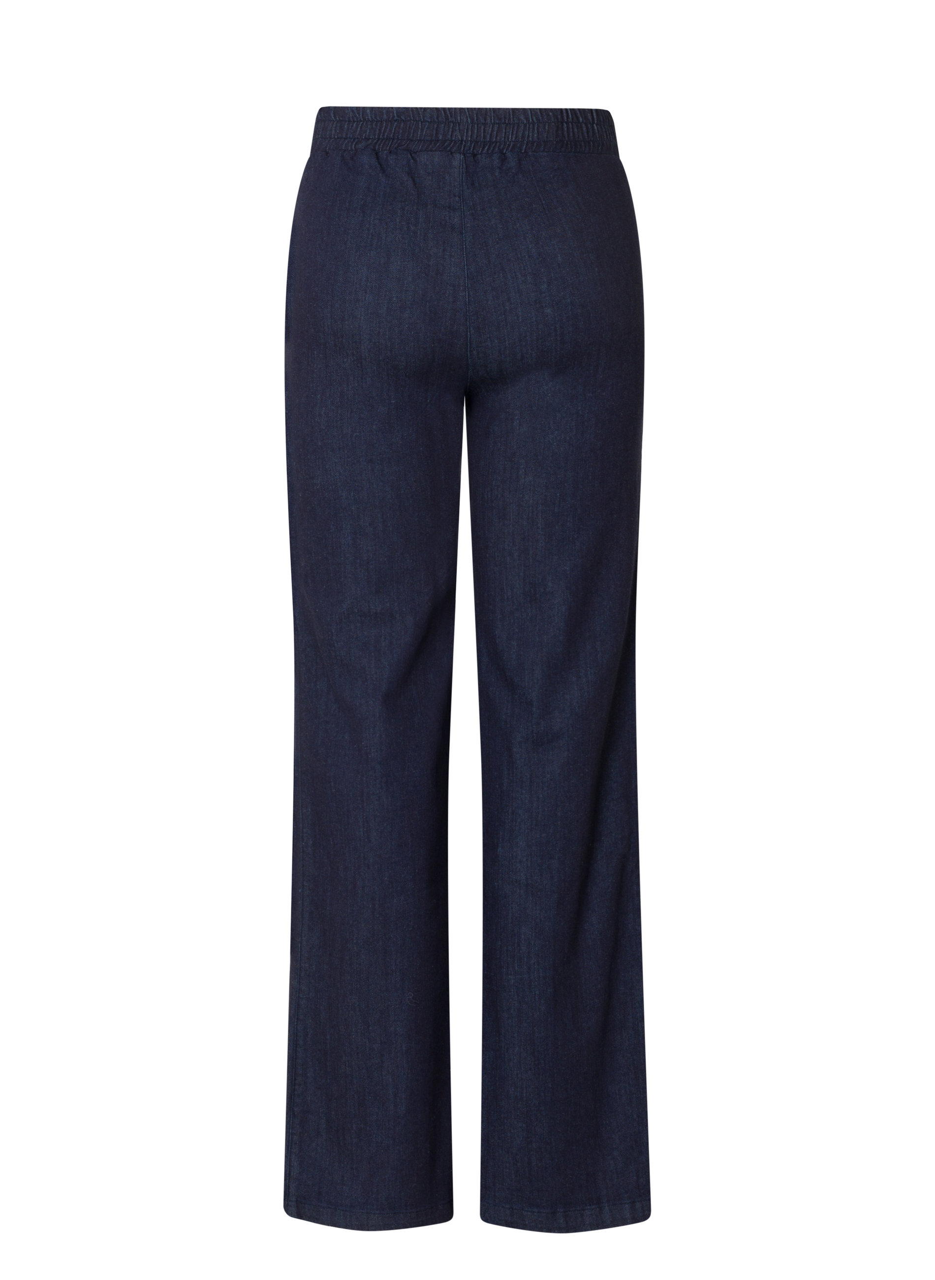 Comfort ontmoet stijl in deze wijde denim broek van YEST Curve, uitgevoerd in een diepe dark rinse wassing. De broek heeft een wide fit die mooi losjes om het been valt – ideaal voor curvy vrouwen die houden van een modieuze én flatterende pasvorm.