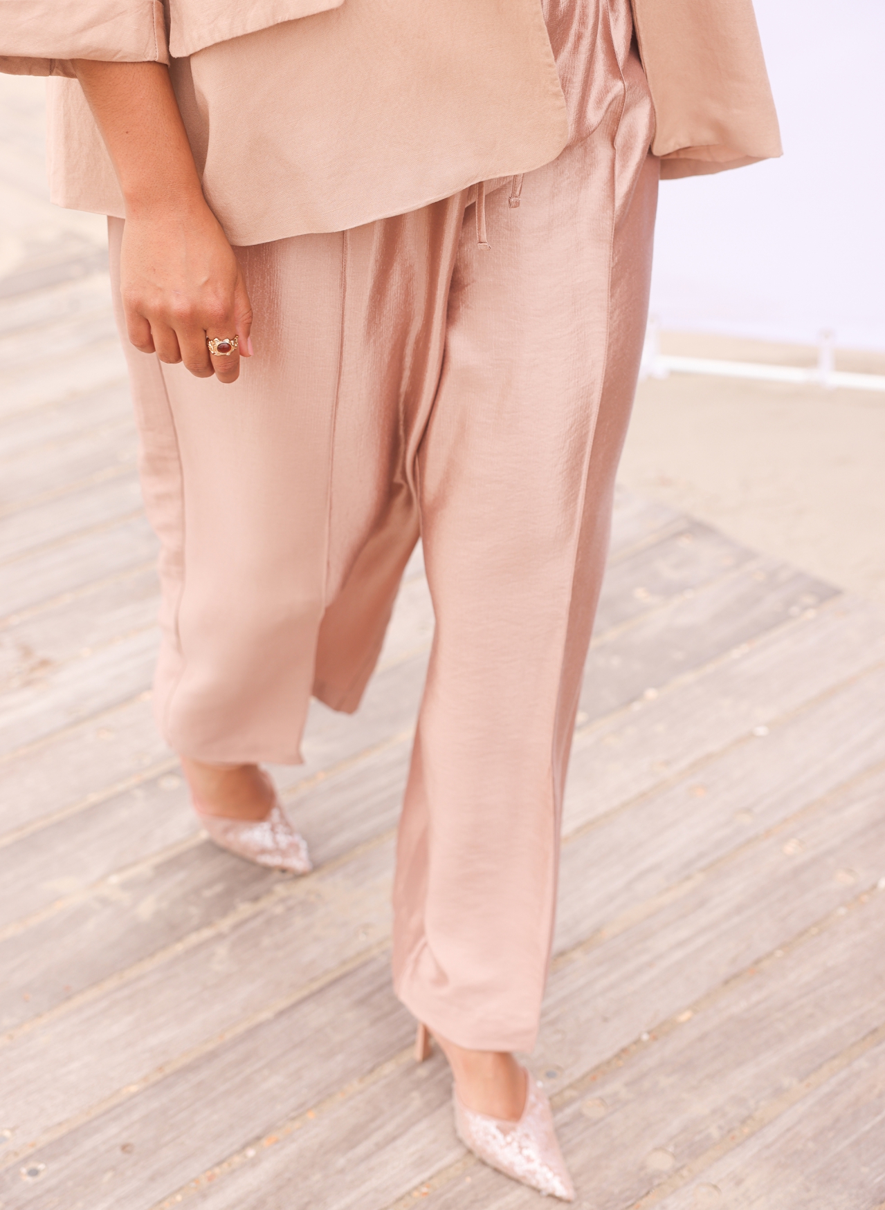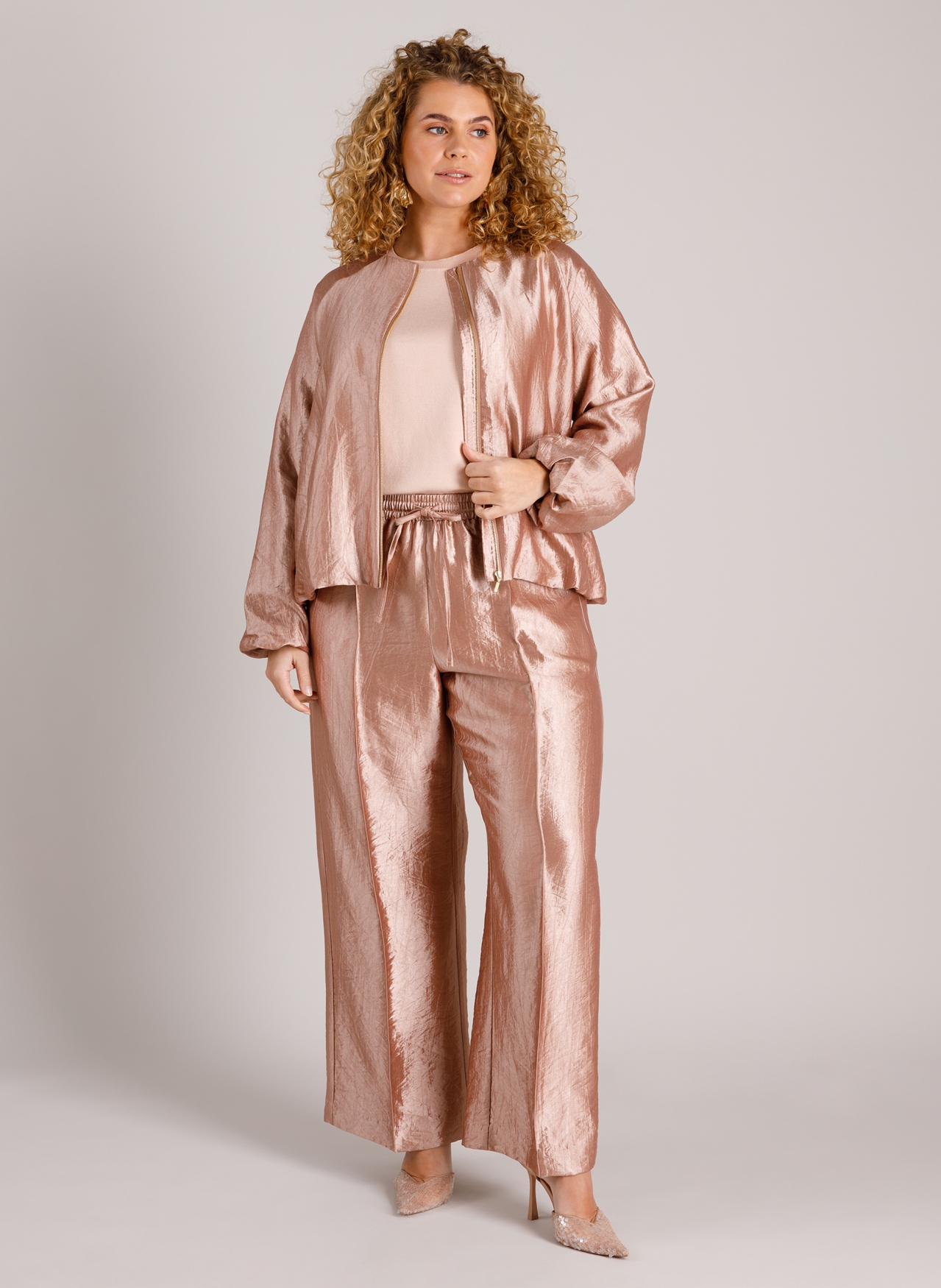 Deze glanzende pantalon van Yest Curve geeft elke outfit direct wat extra flair. De Liv zit heerlijk dankzij de elastische taille en valt luchtig recht naar beneden. De voorbeennaad zorgt voor een mooie shape, terwijl de steekzakken het lekker praktisch houden. Combineer ’m met het bijpassende jasje voor een opvallend stijlvolle set.