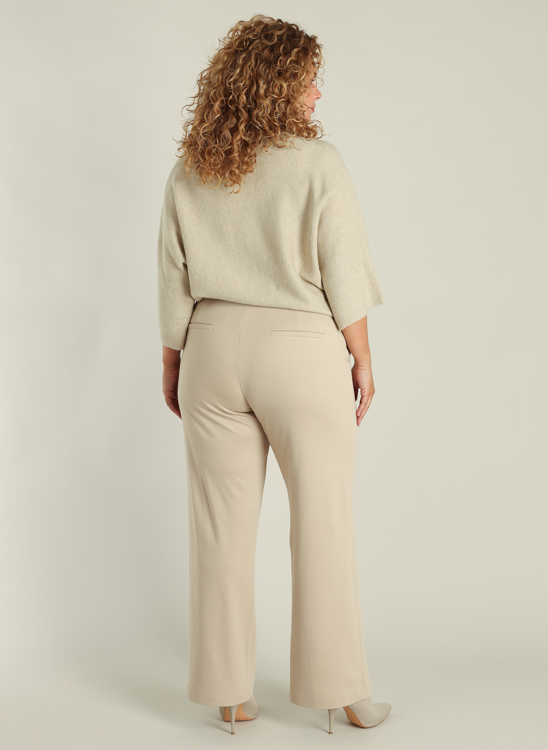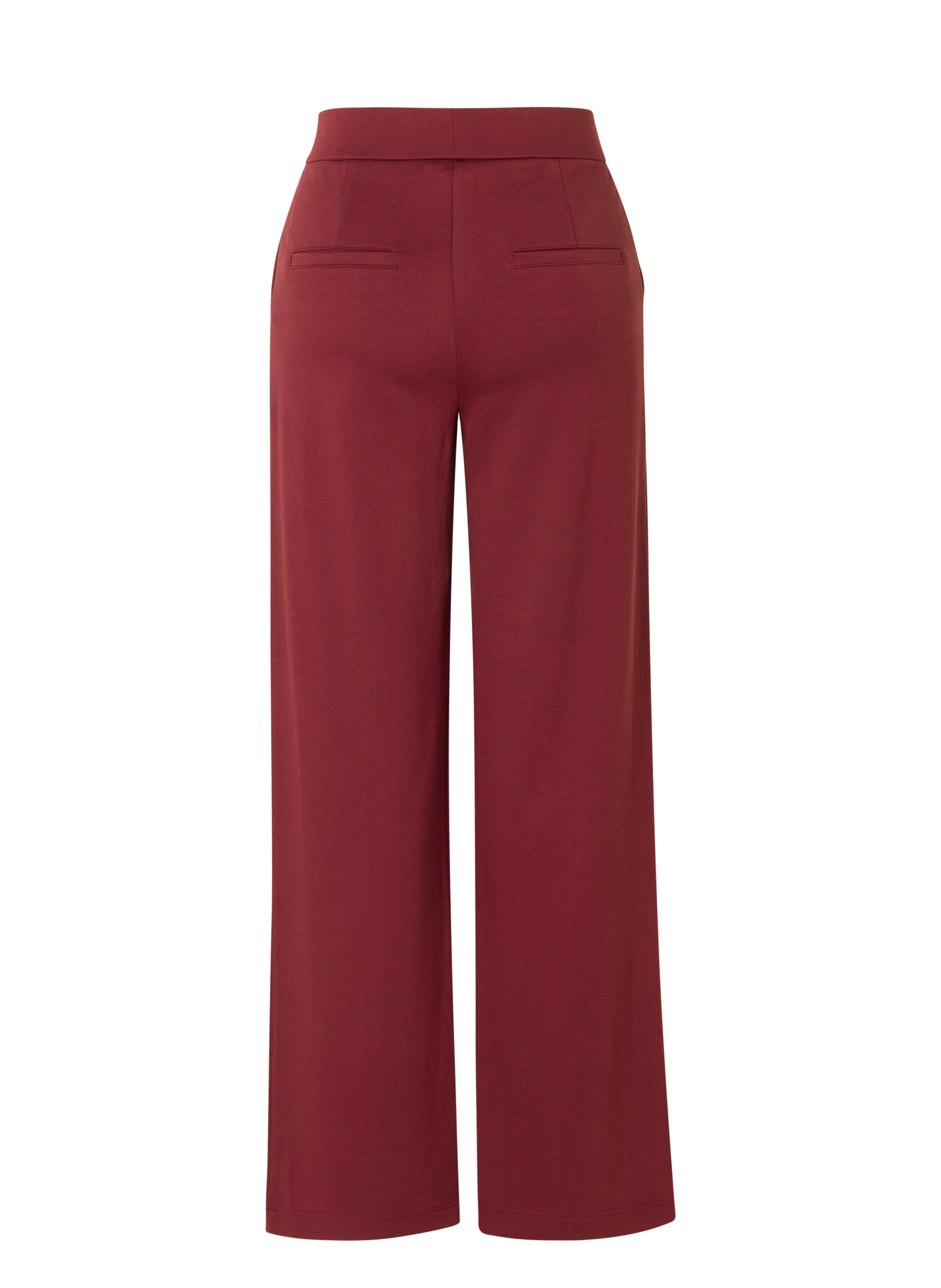 De pantalon is voorzien van steekzakken en kleine paspelzakjes achter, wat zorgt voor een nette en veelzijdige uitstraling. De wijde, rechte pijpen geven de broek een elegante look die zowel casual als zakelijk te dragen is.