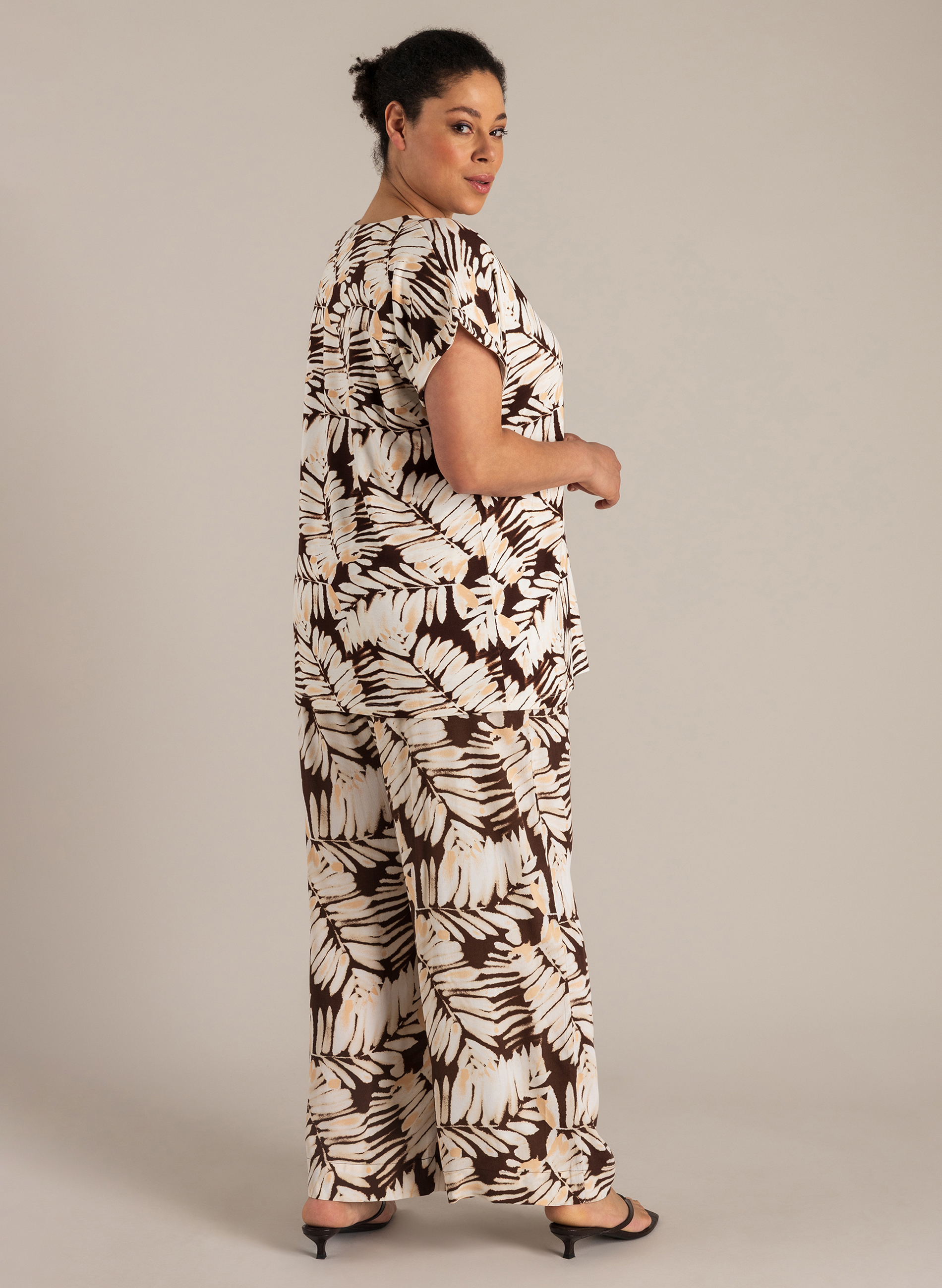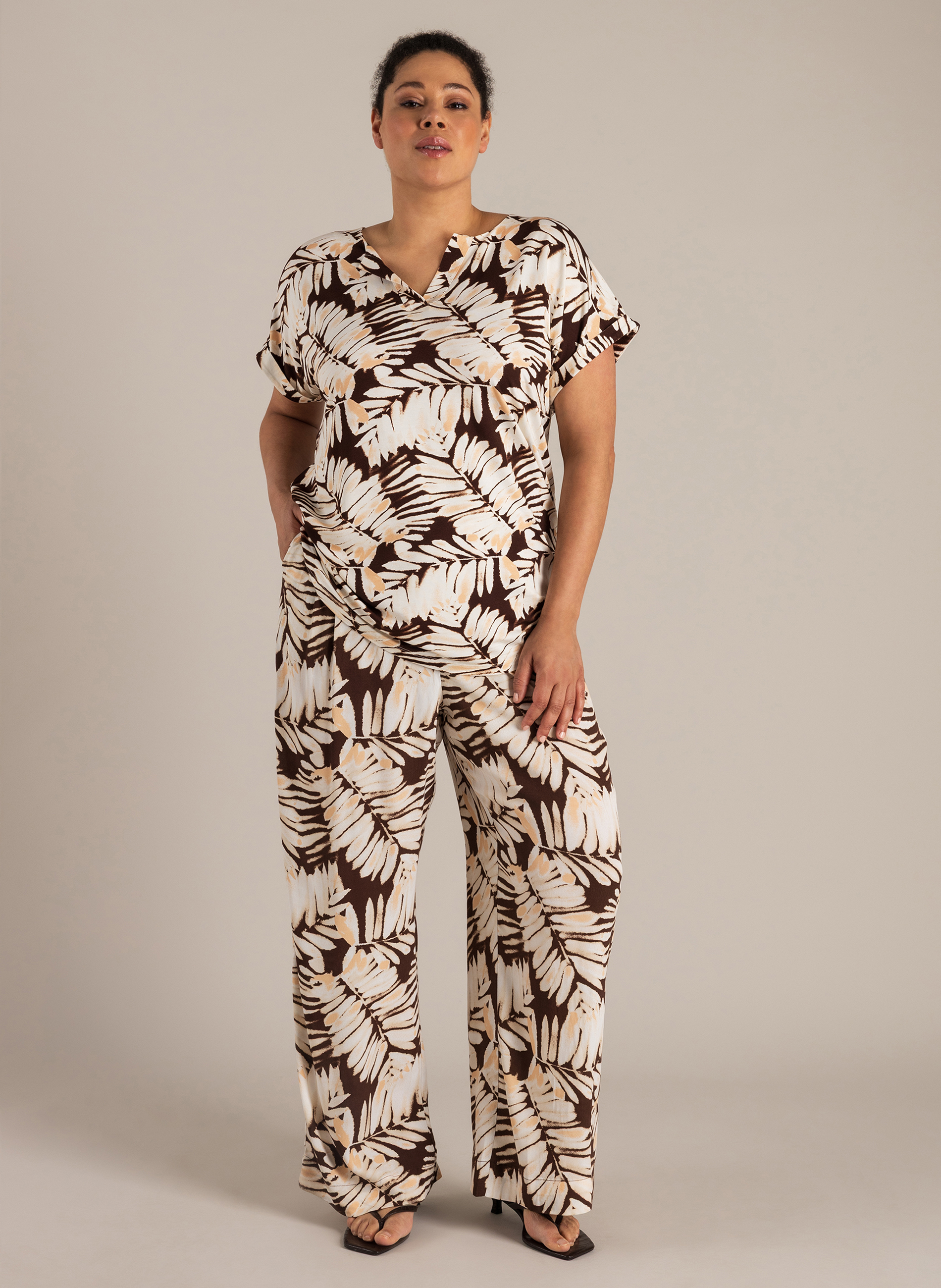 Deze broek is gemaakt van een dunne viscose kwaliteit die licht aanvoelt en soepel valt langs het lichaam. De stof draagt comfortabel, vooral op warmere dagen. Leuk te combineren met bijpassende top als set.