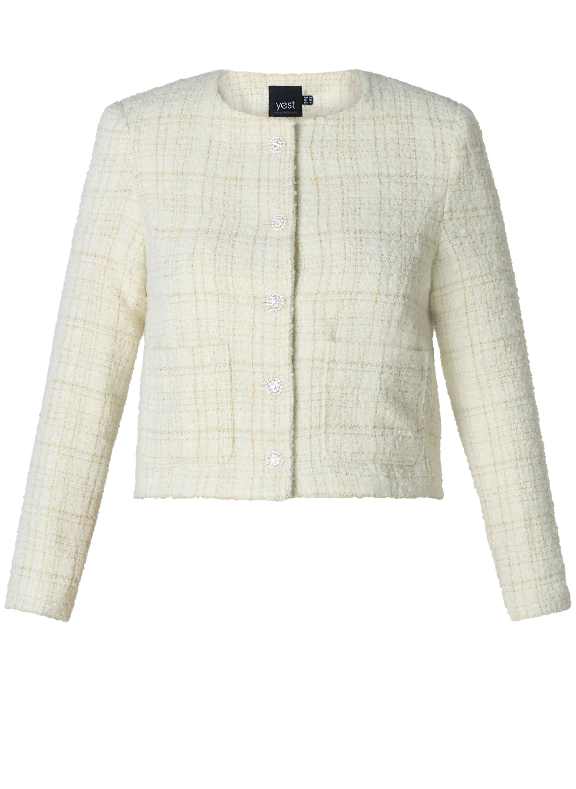 Het YEST CURVE korte jasje is een stijlvolle toevoeging aan je collectie grote maten kleding. Het jasje is uitgevoerd in een jacquard geweven stof die stevig aanvoelt, maar toch zacht draagt. De combinatie van polyester en wol zorgt ervoor dat de pasvorm mooi behouden blijft, terwijl de gladde binnenvoering het draagcomfort verhoogt.