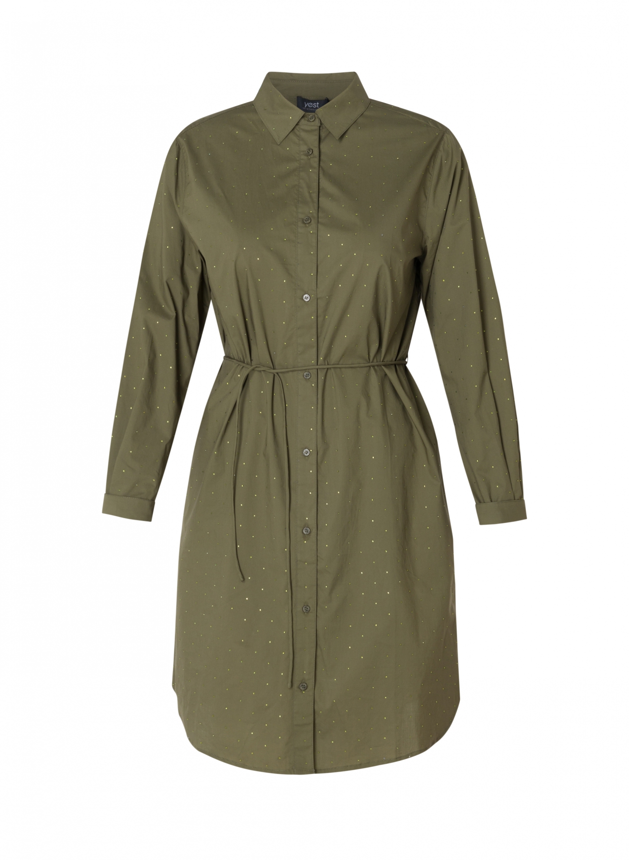 Voeg een subtiel sprankje glamour toe met deze blousejurk van Yest Curve, speciaal voor dames in grote maten. De glittersteentjes geven een elegante, subtiele shine, terwijl het koordje in de taille zorgt voor een verstelbare en flatterende pasvorm.