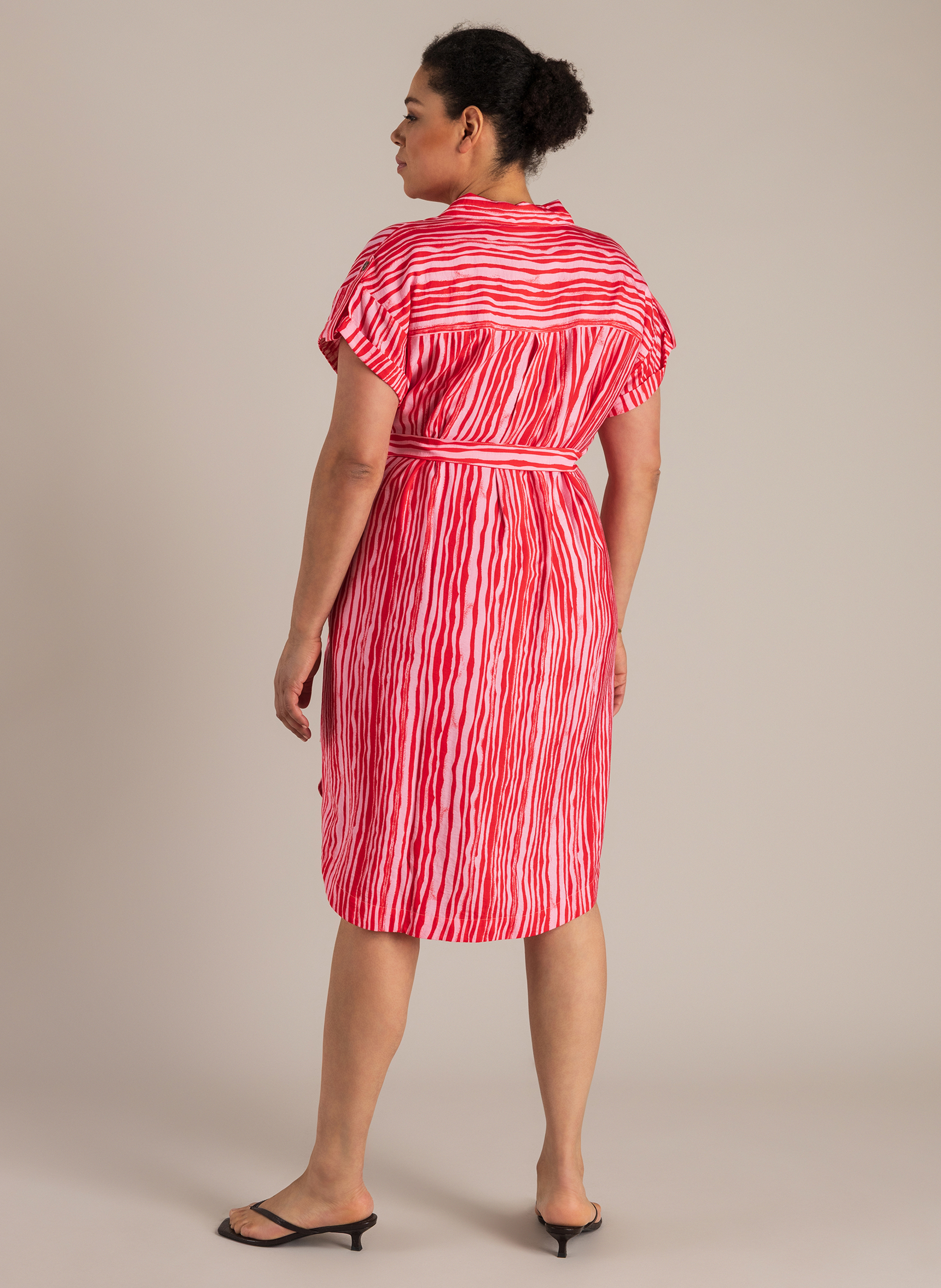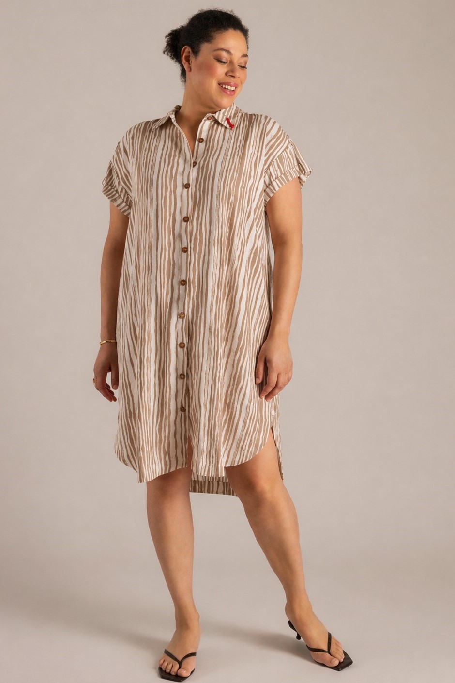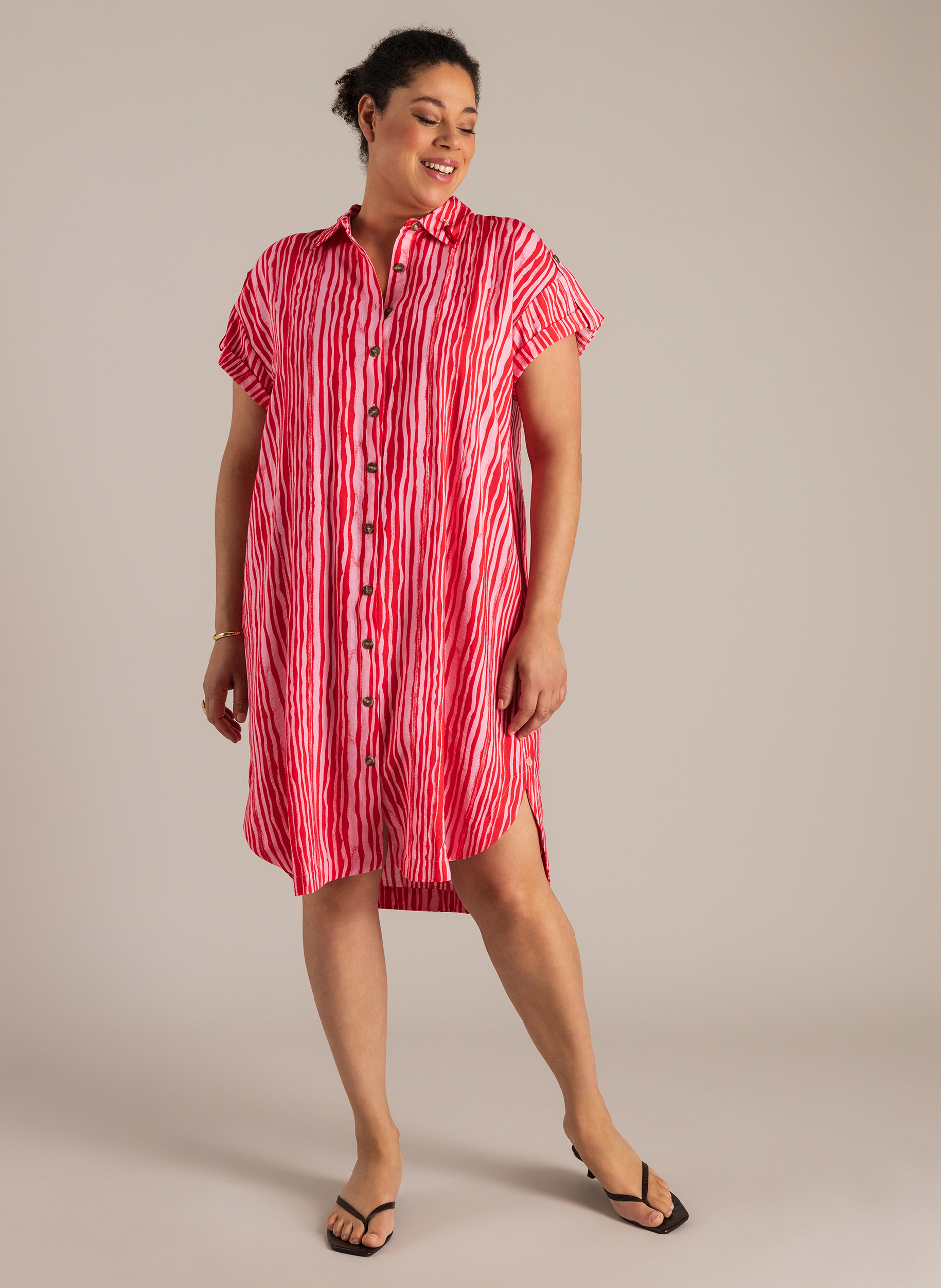 Dit is zo’n jurk die meteen zomers aanvoelt. De stof is licht en heeft een subtiele, gekreukte textuur die zorgt voor een relaxte look. De jurk heeft een ruime 'Loose Fit' pasvorm en dankzij de knoopjes kun je de jurk dragen op de manier die jij prettig vindt. Als leuk extraatje is het model voorzien van een 'red pepper' broche, wat zorgt voor een speelse toevoeging aan je outfit.