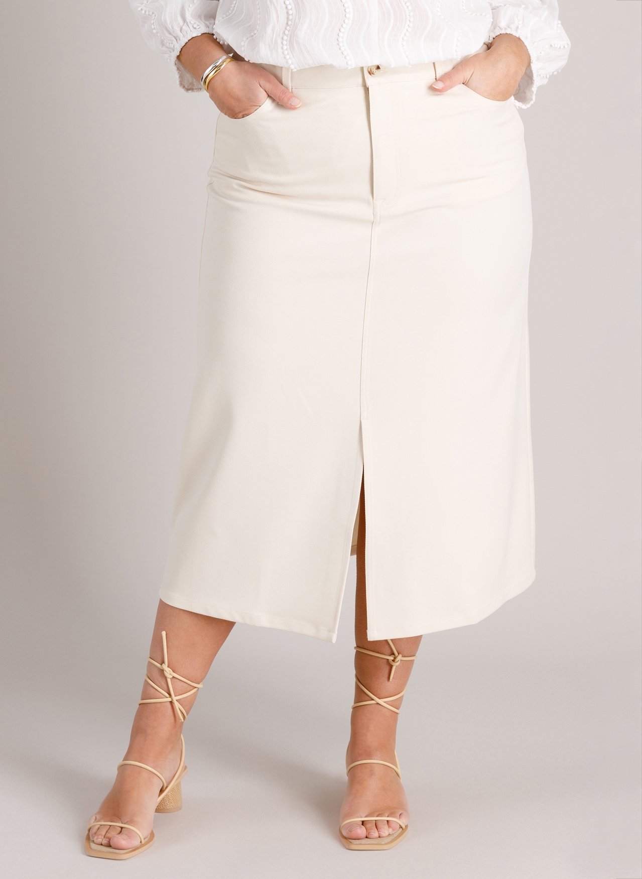 Een Yest Curve rok die meteen lekker draagt: stevig, recht, licht stretchy en met een split voor precies genoeg ruimte. De naturel kleur maakt de Lotte supermakkelijk in je garderobe, terwijl het stoere model zorgt voor een no-nonsense look waar je zo mee wegloopt.