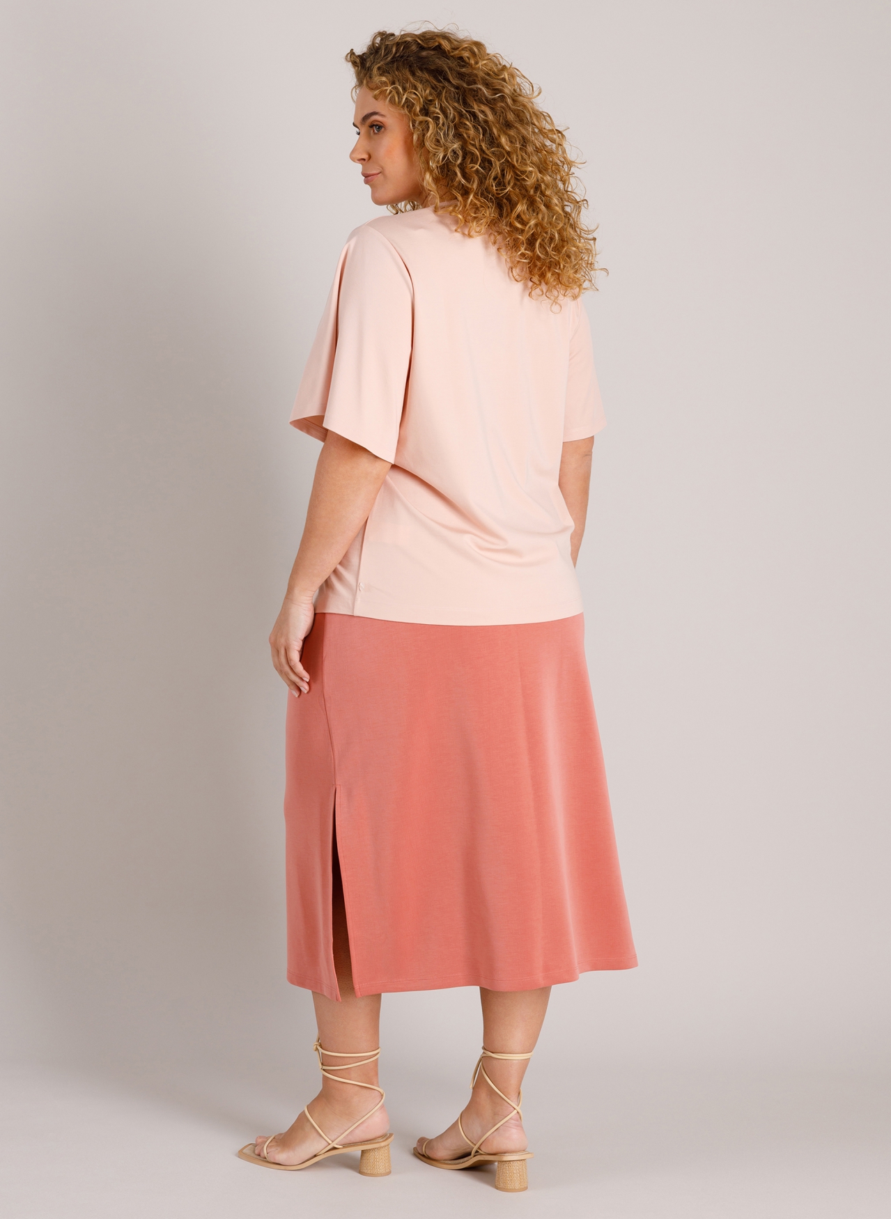 Met zijn soepele viscosemix voelt dit T-shirt van Yest Curve prettig zacht aan op de huid. De A-lijn fit biedt wat extra bewegingsvrijheid en volgt het lichaam zonder strak te zitten. De V-hals en de middenplooi maken de Fawn Essential tot een makkelijk te combineren top voor zowel werk als vrije tijd.