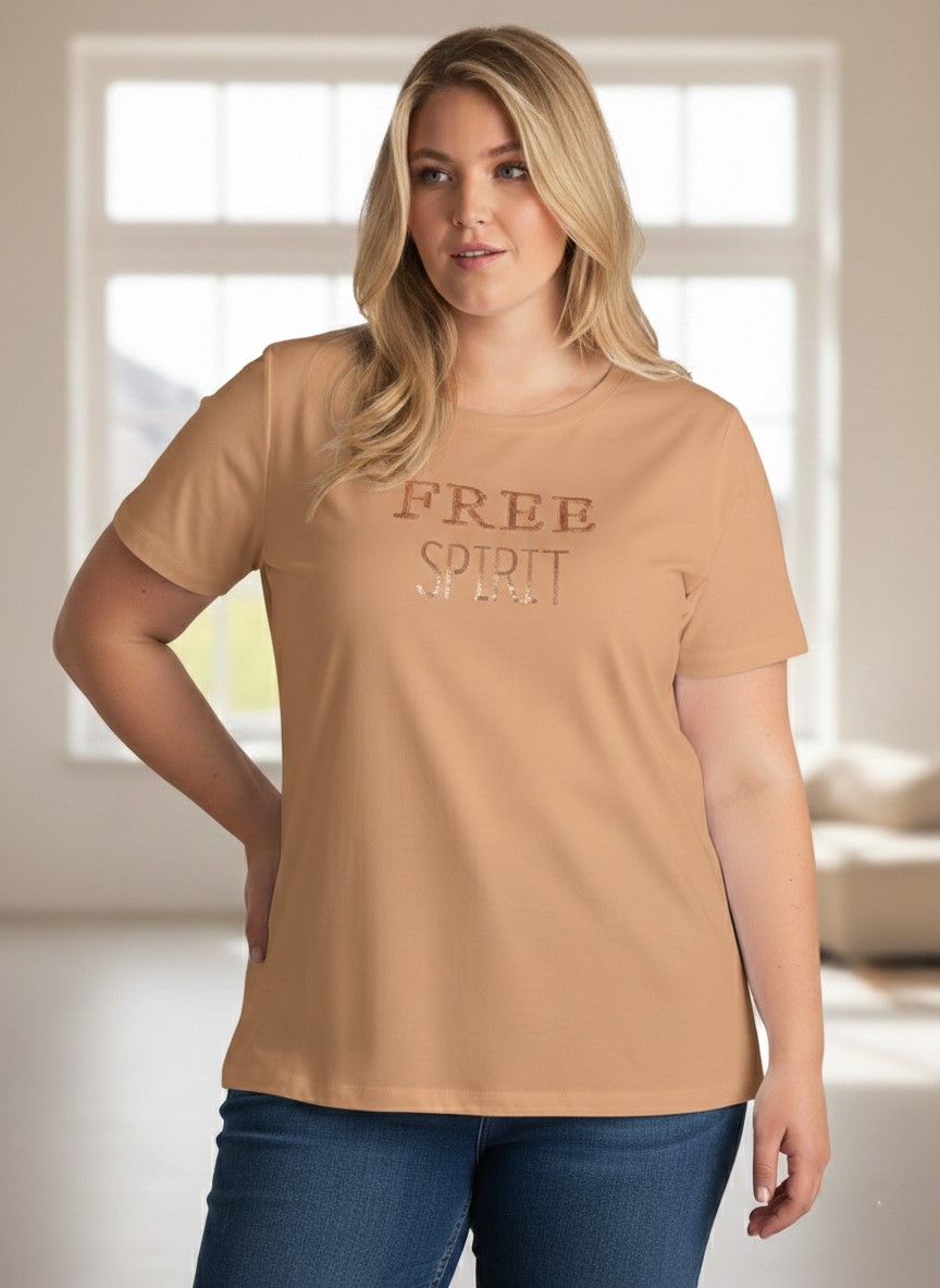 De ‘Free Spirit’-print geeft een luchtige twist en maakt dit T-shirt een veelzijdig kledingstuk. Verkrijgbaar in drie kleuren, zodat je altijd een match vindt voor je look. Dankzij de soepele kwaliteit draag je het T-shirt met gemak, zowel casual als gecombineerd met andere tops of vesten.