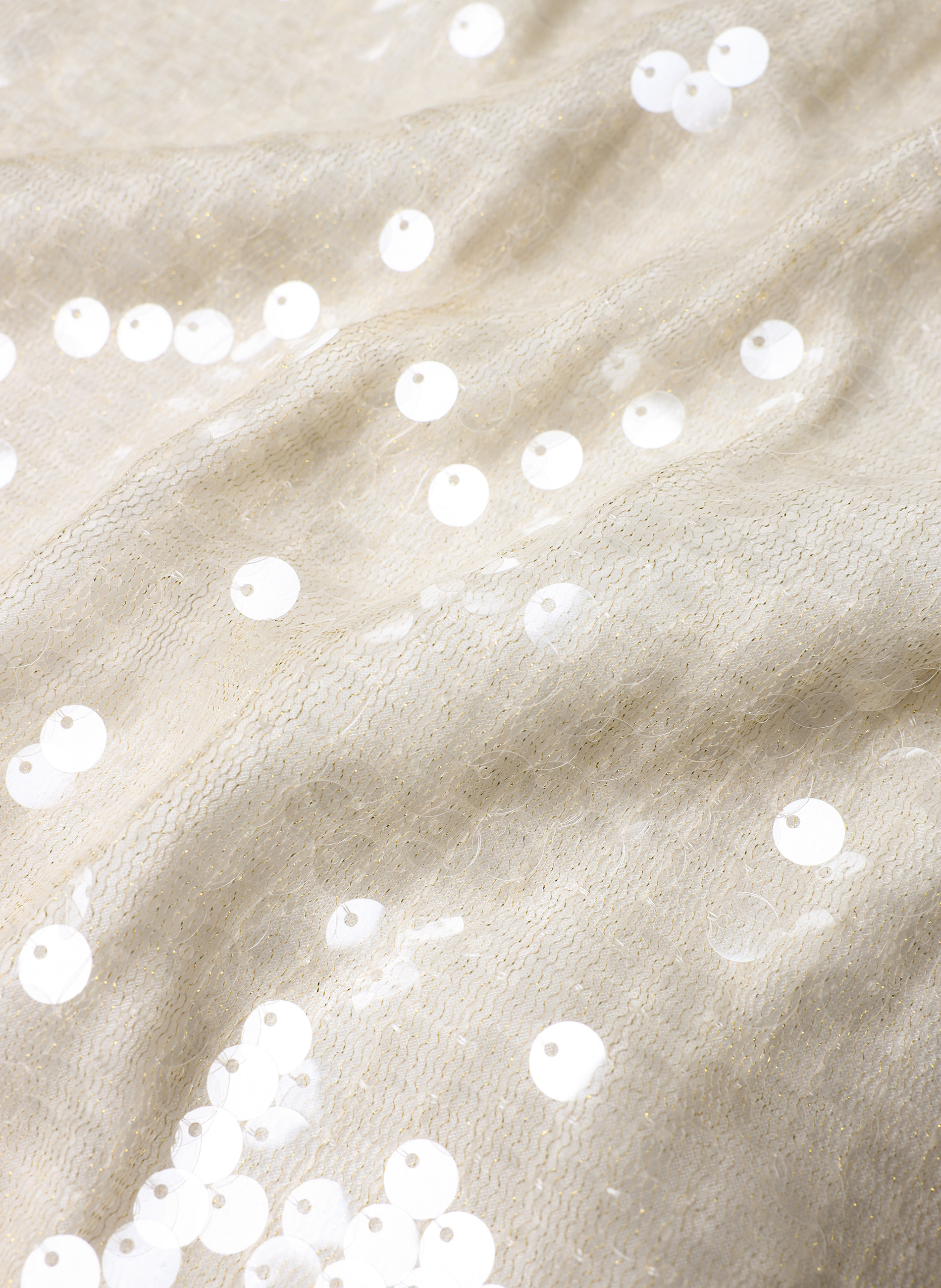 De YEST CURVE top met pailletten is een elegante keuze voor vrouwen die houden van grote maten kleding met een feestelijke touch. De top is uitgevoerd in een zachte winterwhite kleur en voorzien van een glanzende paillettenlaag die bij elke beweging subtiel schittert. De transparante stof is gevoerd met een topje eronder, zodat de top zowel stijlvol als comfortabel draagt.