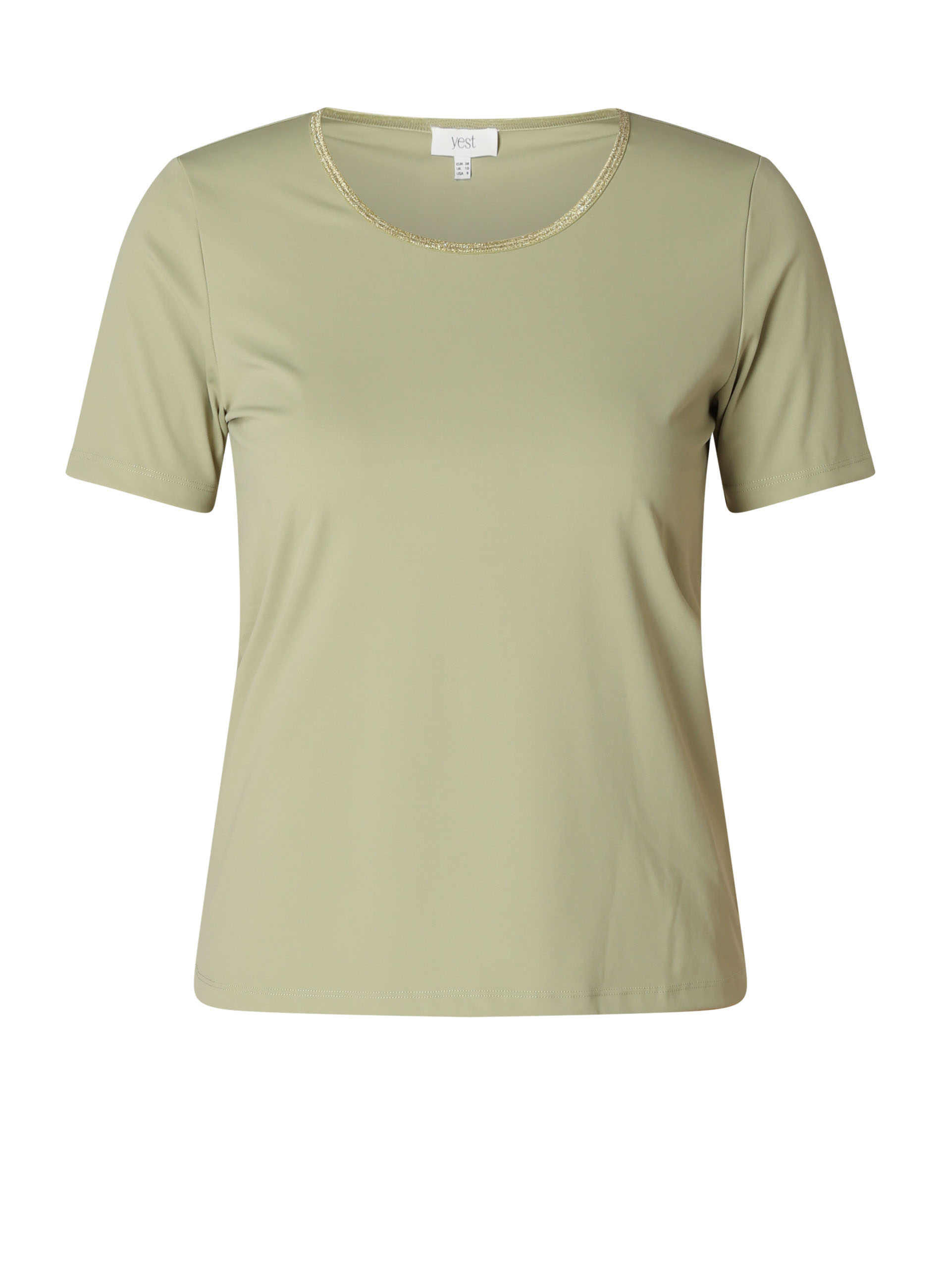 Dit travel T-shirt van Yest Curve heeft een ronde halslijn die subtiel is afgewerkt met een glitterrand. De gladde, stretchy kwaliteit (75% polyamide, 25% elastane) draagt comfortabel en volgt mooi het lichaam dankzij de slim fit. De Liora is verkrijgbaar in plum en botanic green.