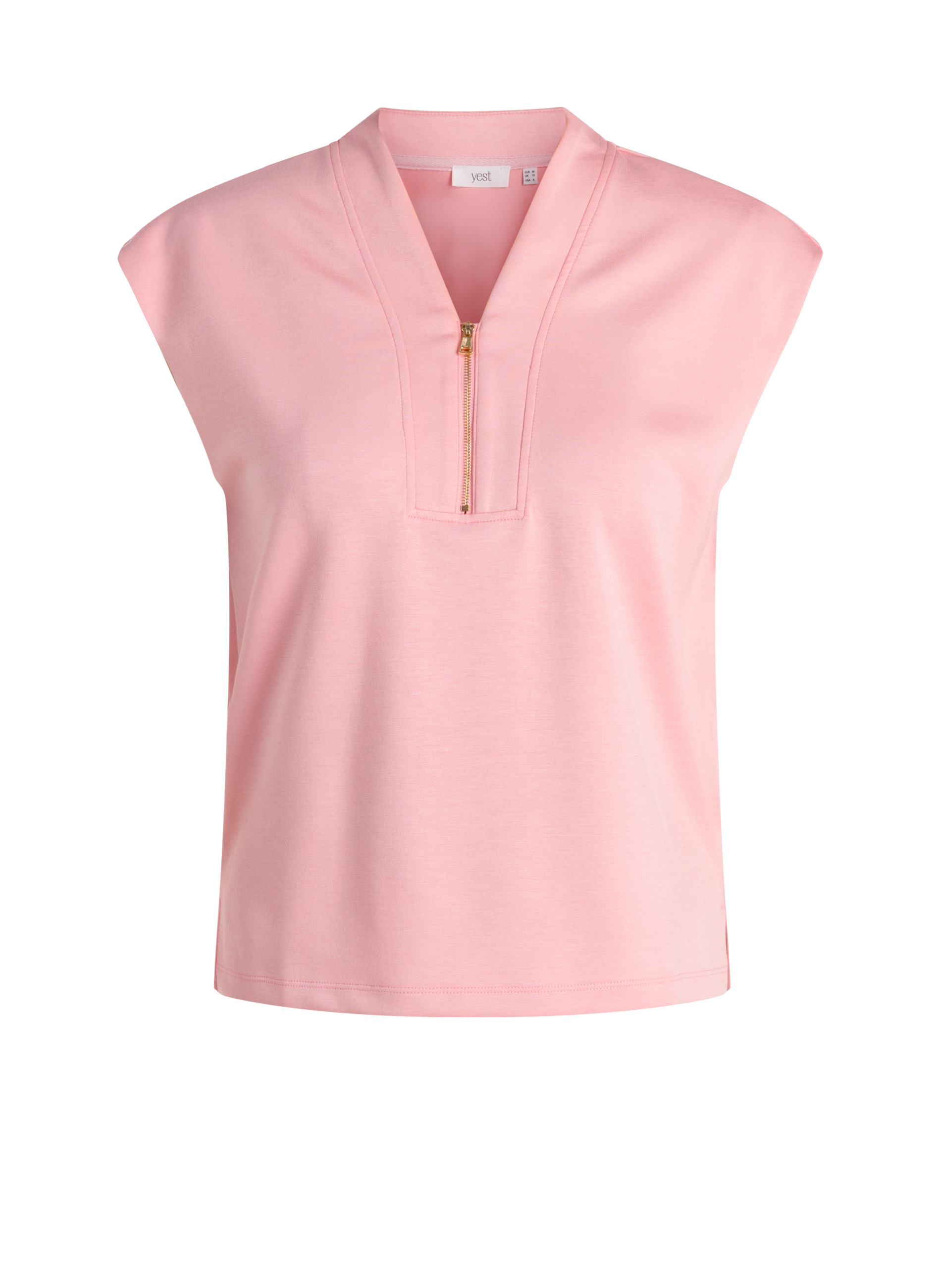 Ben je op zoek naar een item dat comfort en een stijlvolle uitstraling moeiteloos combineert? De mouwloze sweater Nisa van YEST CURVE is een uitstekende keuze. Dit fijne truitje is uitgevoerd in een zachte, licht stretchy stof die heerlijk zit en fijn met je mee beweegt. De V-hals is voorzien van een rits, wat zorgt voor een sportieve twist. In de kleur 'bright pink' zorgt dit item voor een frisse en energieke uitstraling. Het is perfect te combineren als set met de bijpassende shorts, maar staat ook prachtig op een andere broek.